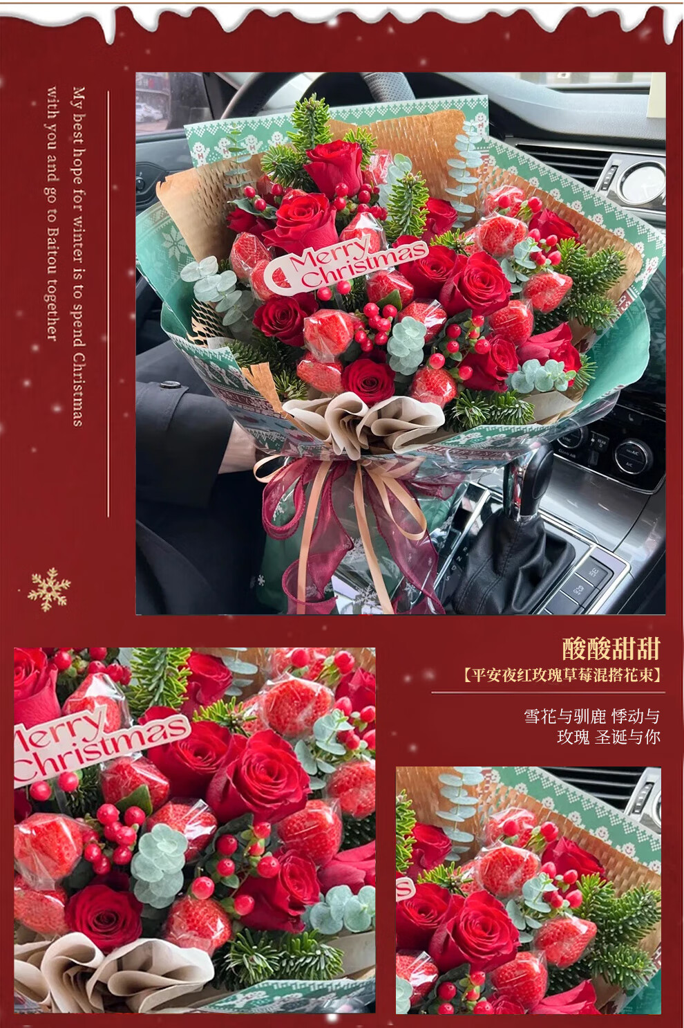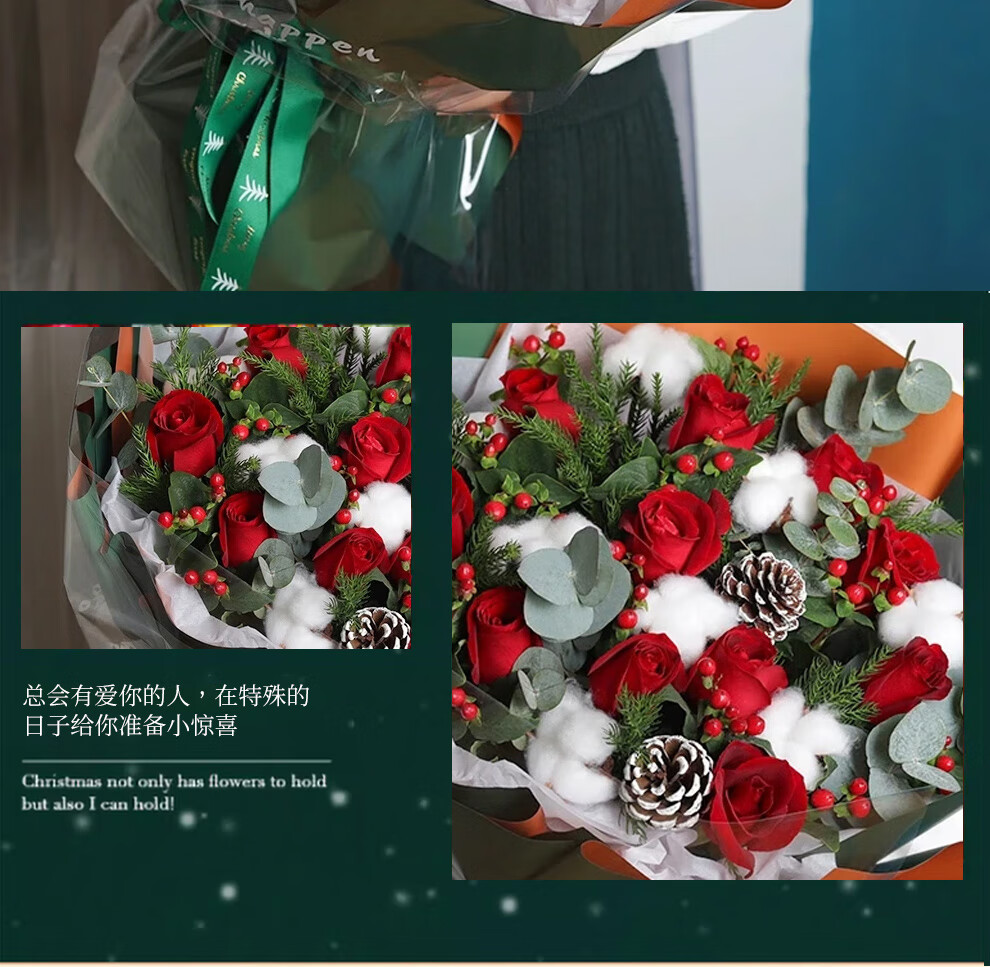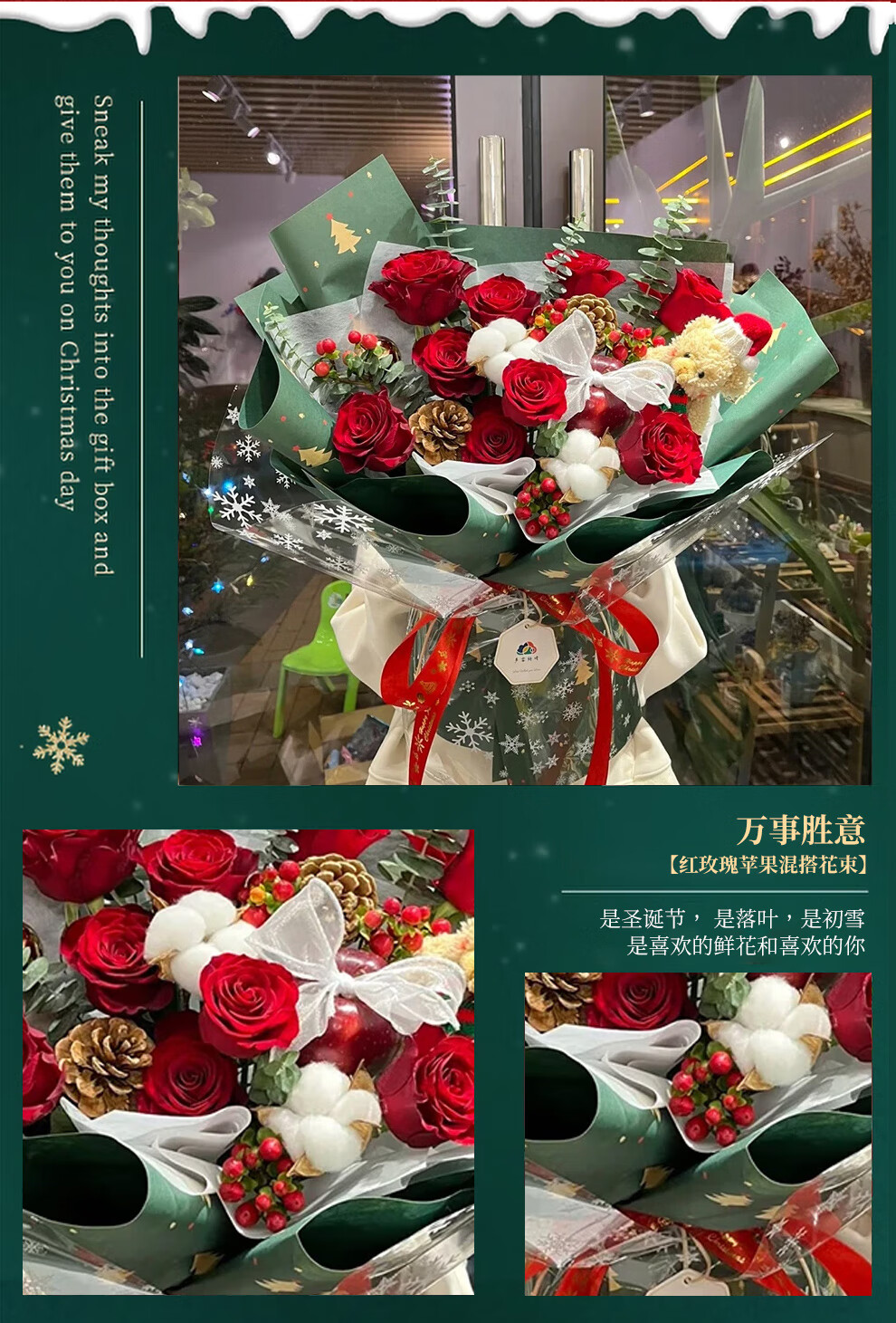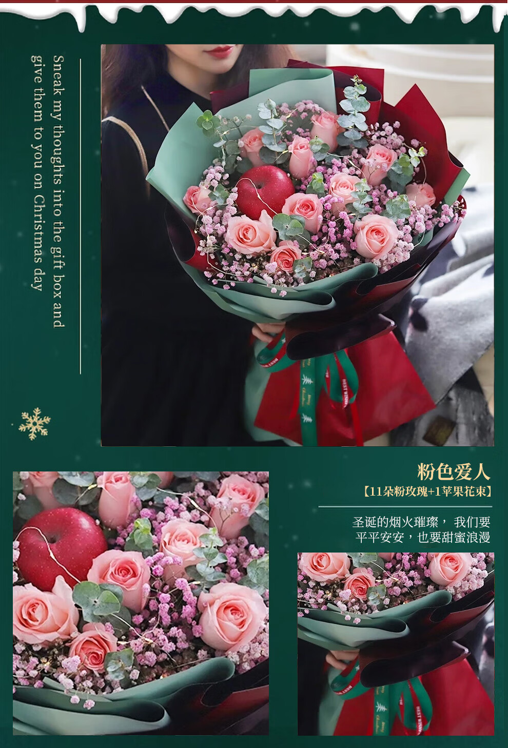 Youke Jade Christmas Eve Flower Express Red Rose Bouquet Apple Gift Box for Girlfriend Gift Nationwide Delivery Red Rose Apple Mixed Bouquet Christmas Surprise