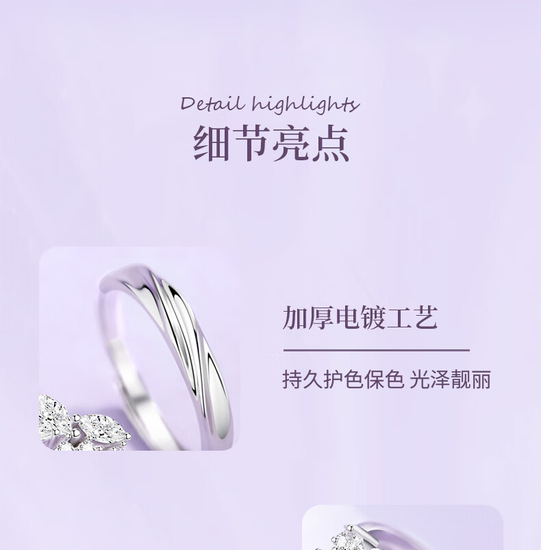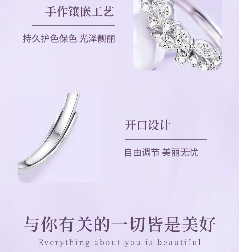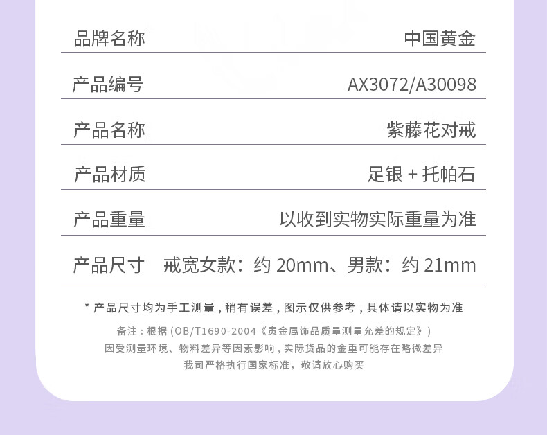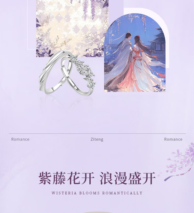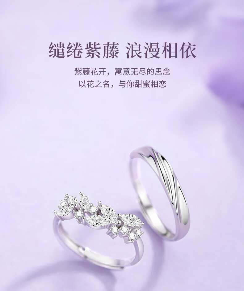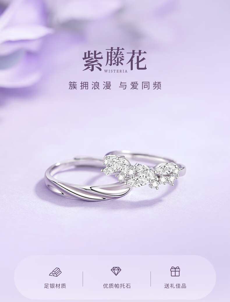 Chinese gold wisteria couple ring girl topaz pure silver ring girl birthday gift girlfriend wife wedding anniversary pure silver wisteria ring Jingsuda