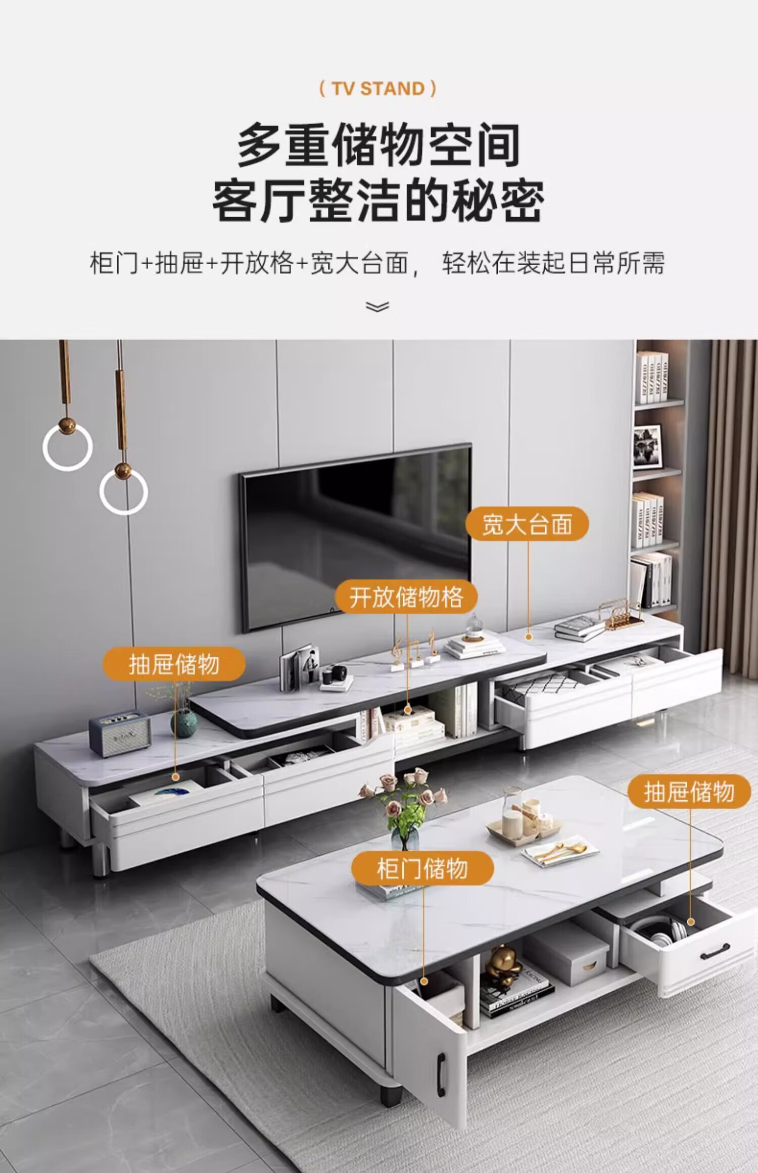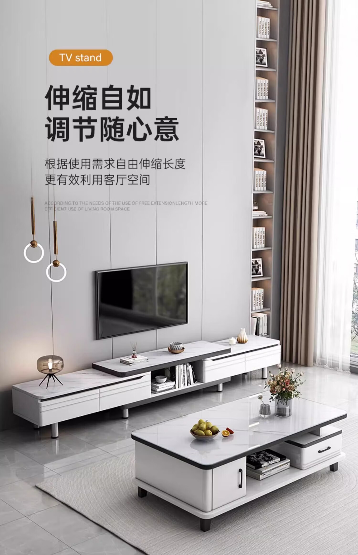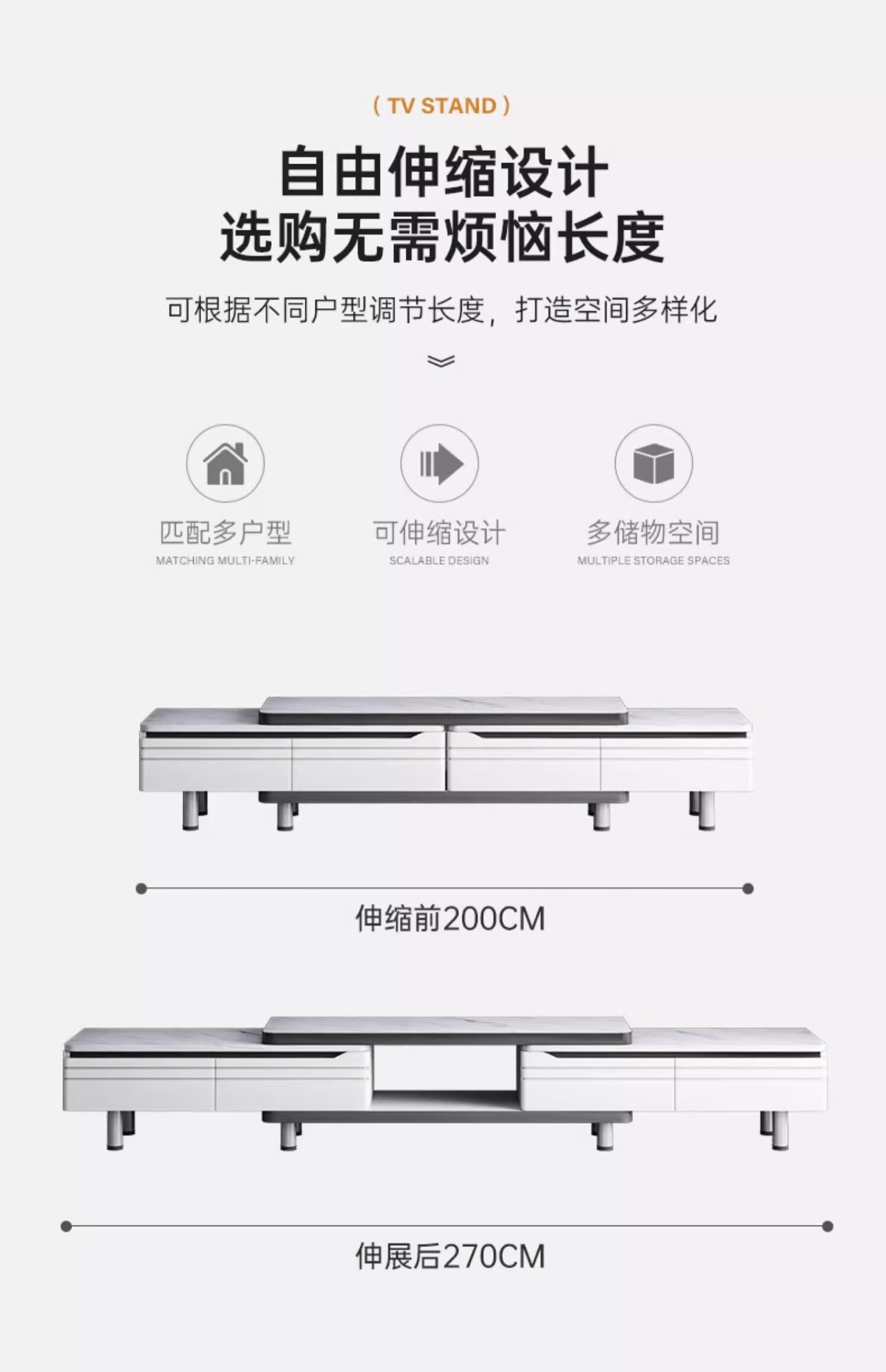 Mijia TV cabinet modern minimalist living room household small apartment floor-standing telescopic 2024 new coffee table TV cabinet combination slate style 200-270cm TV cabinet + 1.2m coffee table assembly (self-installation)