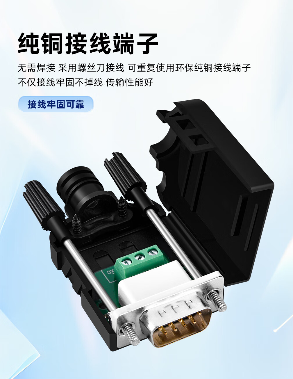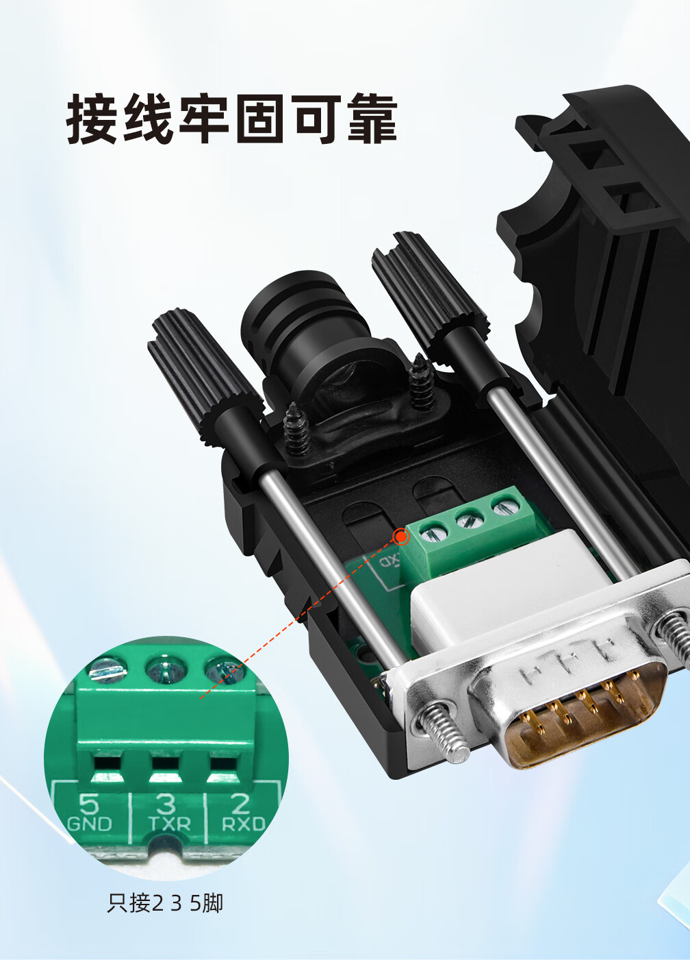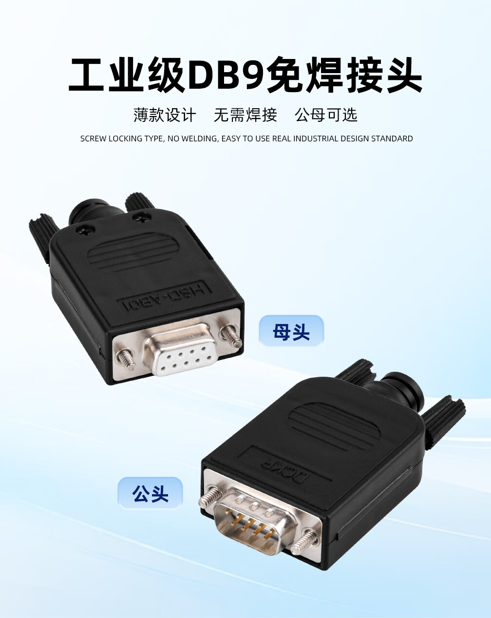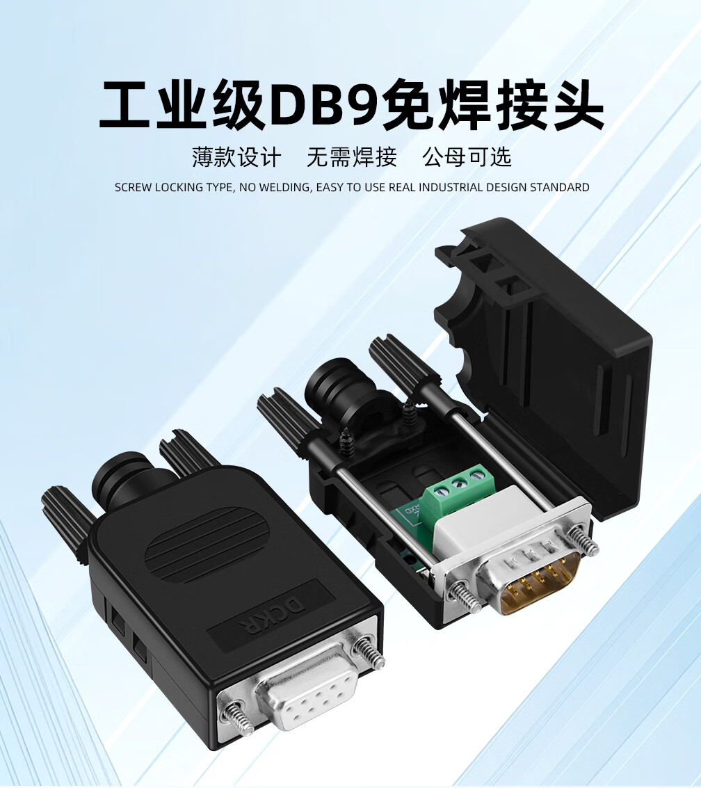 Thin DB9 solderless COM serial port adapter terminal block RS232 plug-in nine-pin hole DR9 board male and female connector leads to 235 feet 235 white glue gold-plated male connector with screw HSD-AB01-GS3M