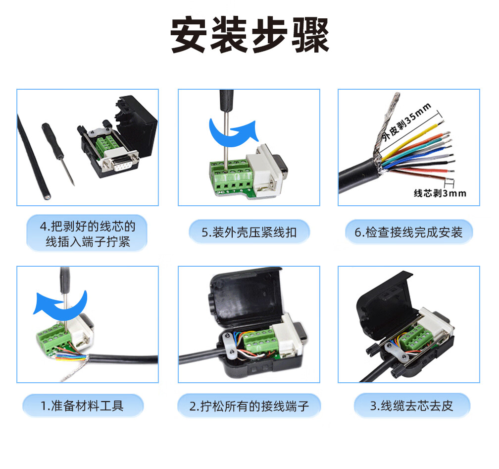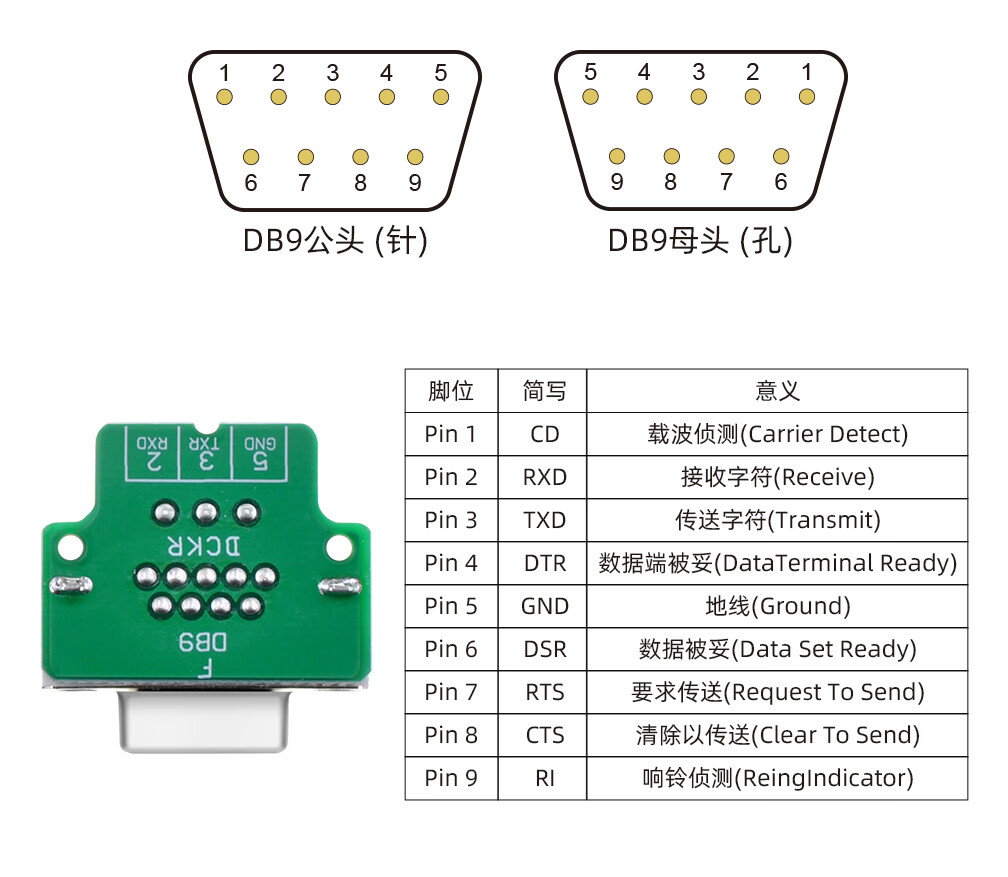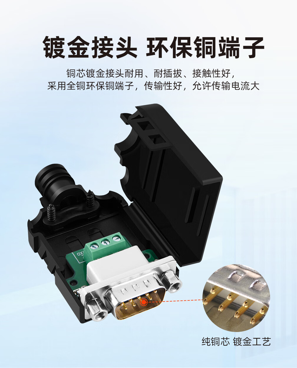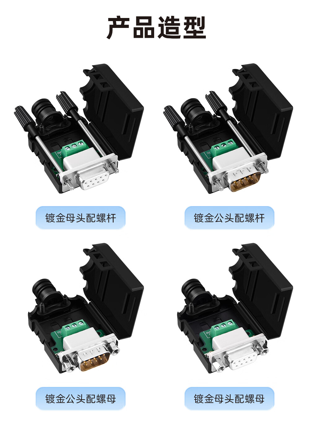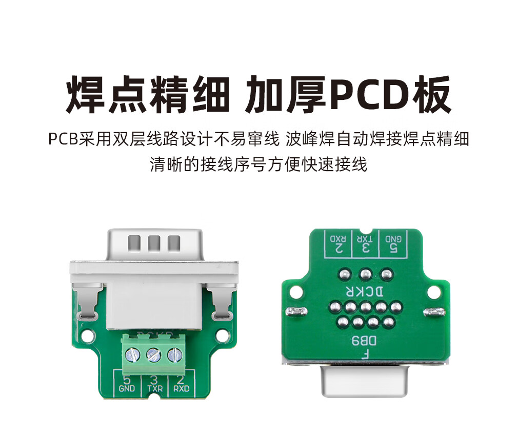 Thin DB9 solderless COM serial port adapter terminal block RS232 plug-in nine-pin hole DR9 board male and female connector leads to 235 feet 235 white glue gold-plated male connector with screw HSD-AB01-GS3M