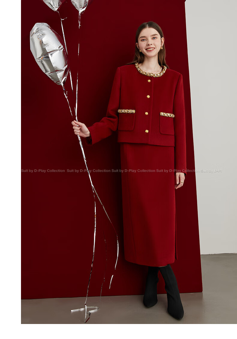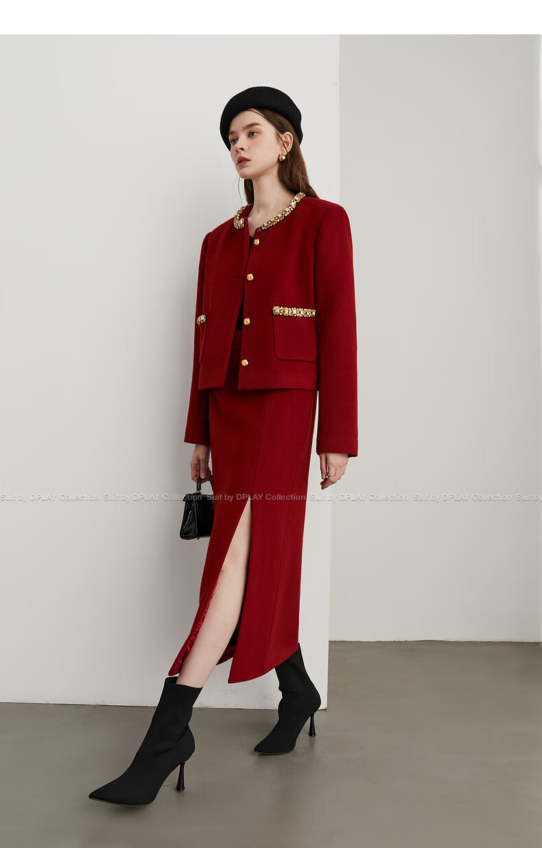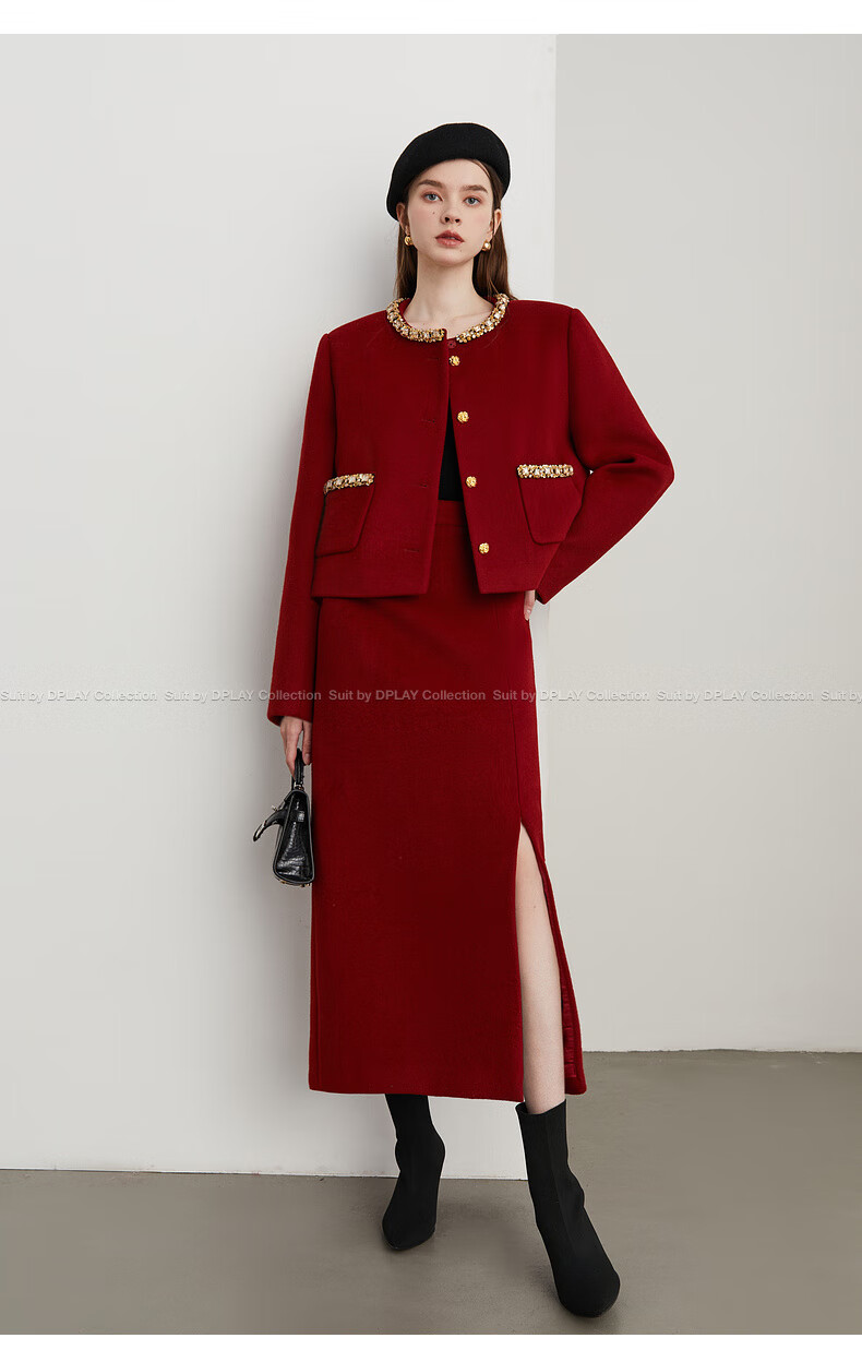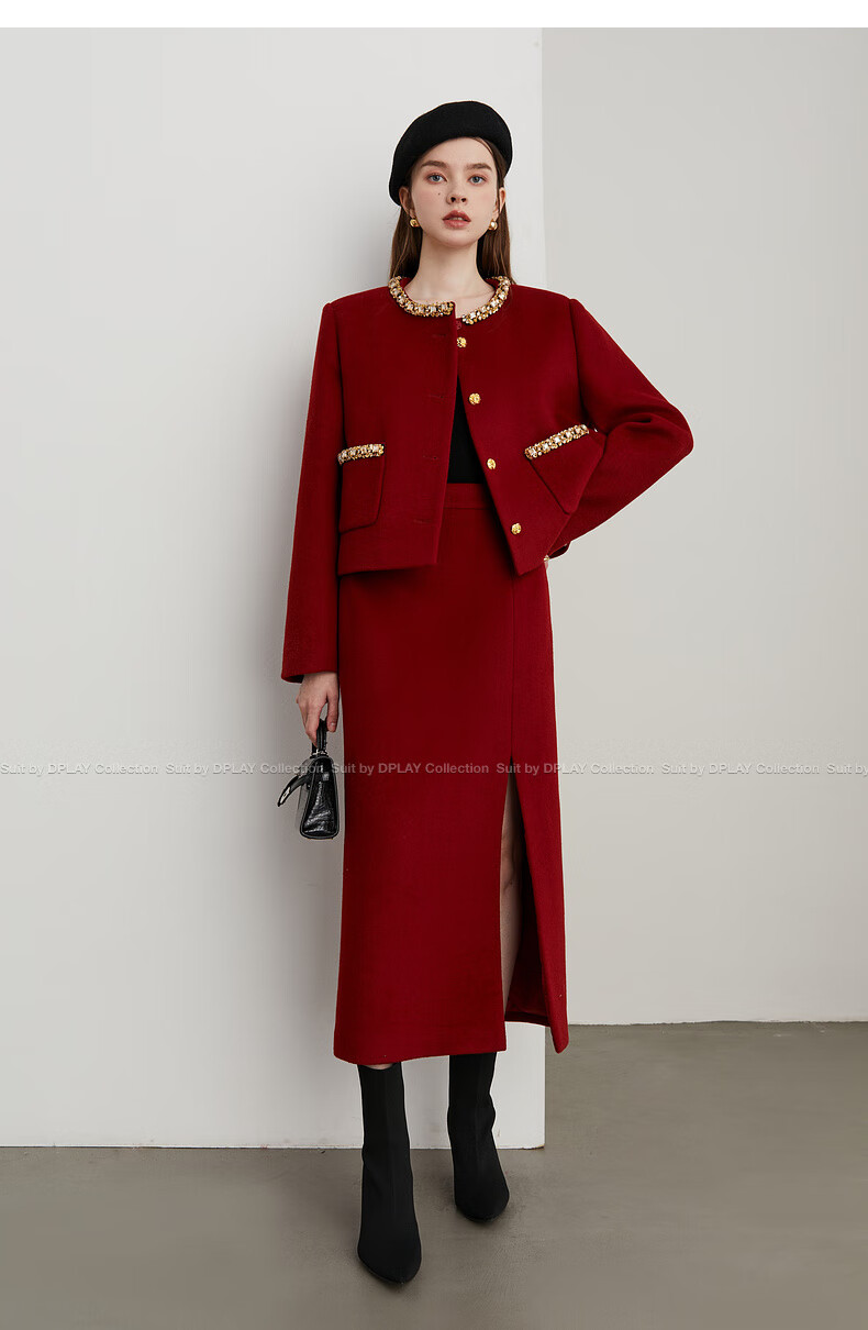 DPLAY Black Label 2025 Autumn New Red Small Fragrance Suit Women's Wool New Year Jacket Skirt Skirt-Anchor Red XL