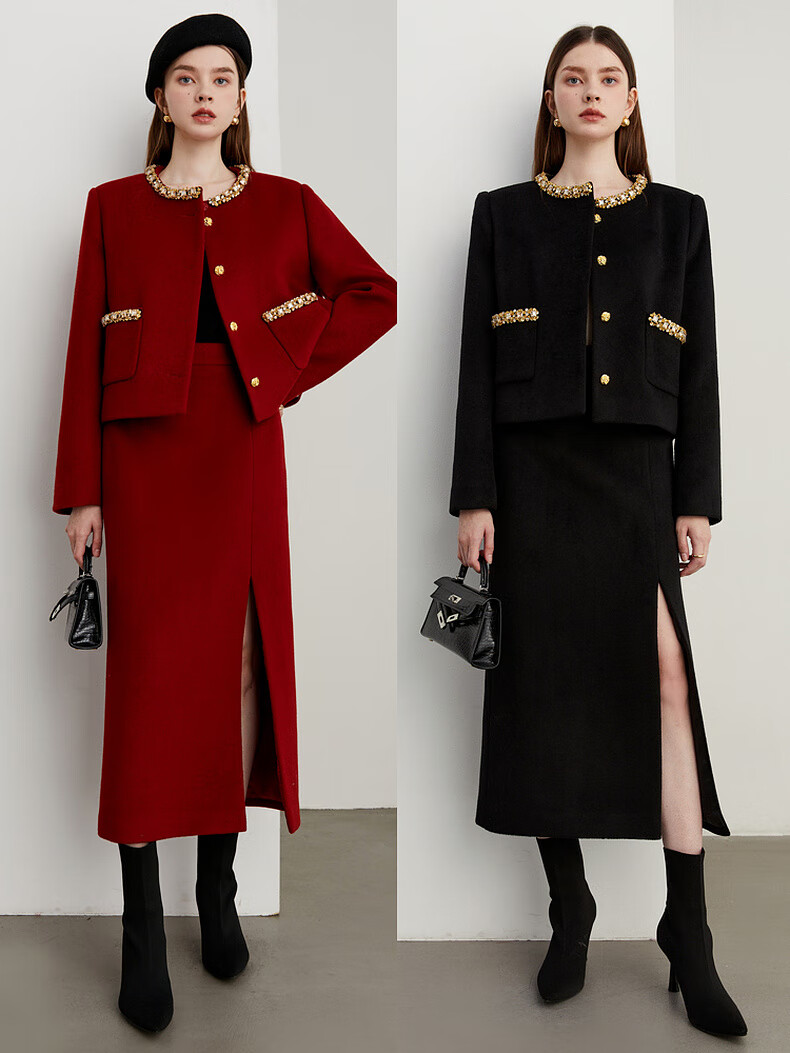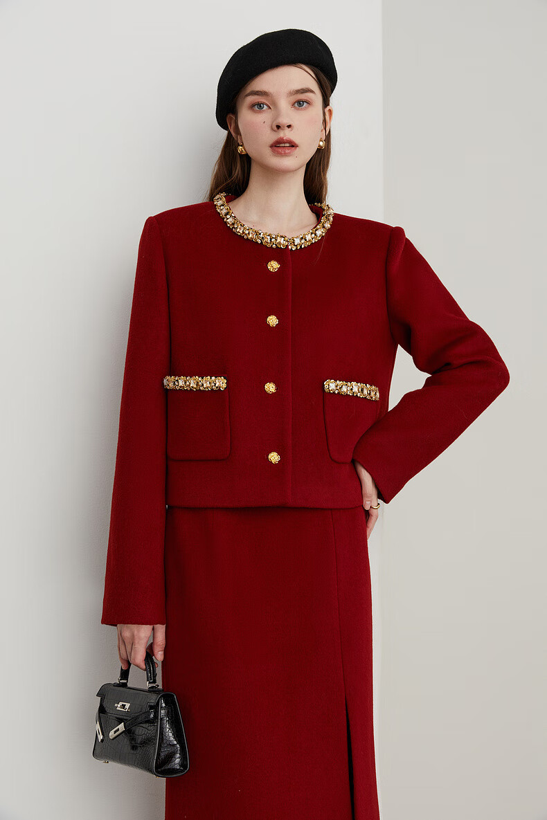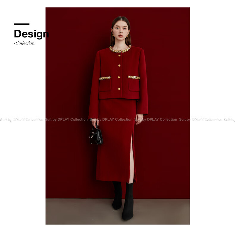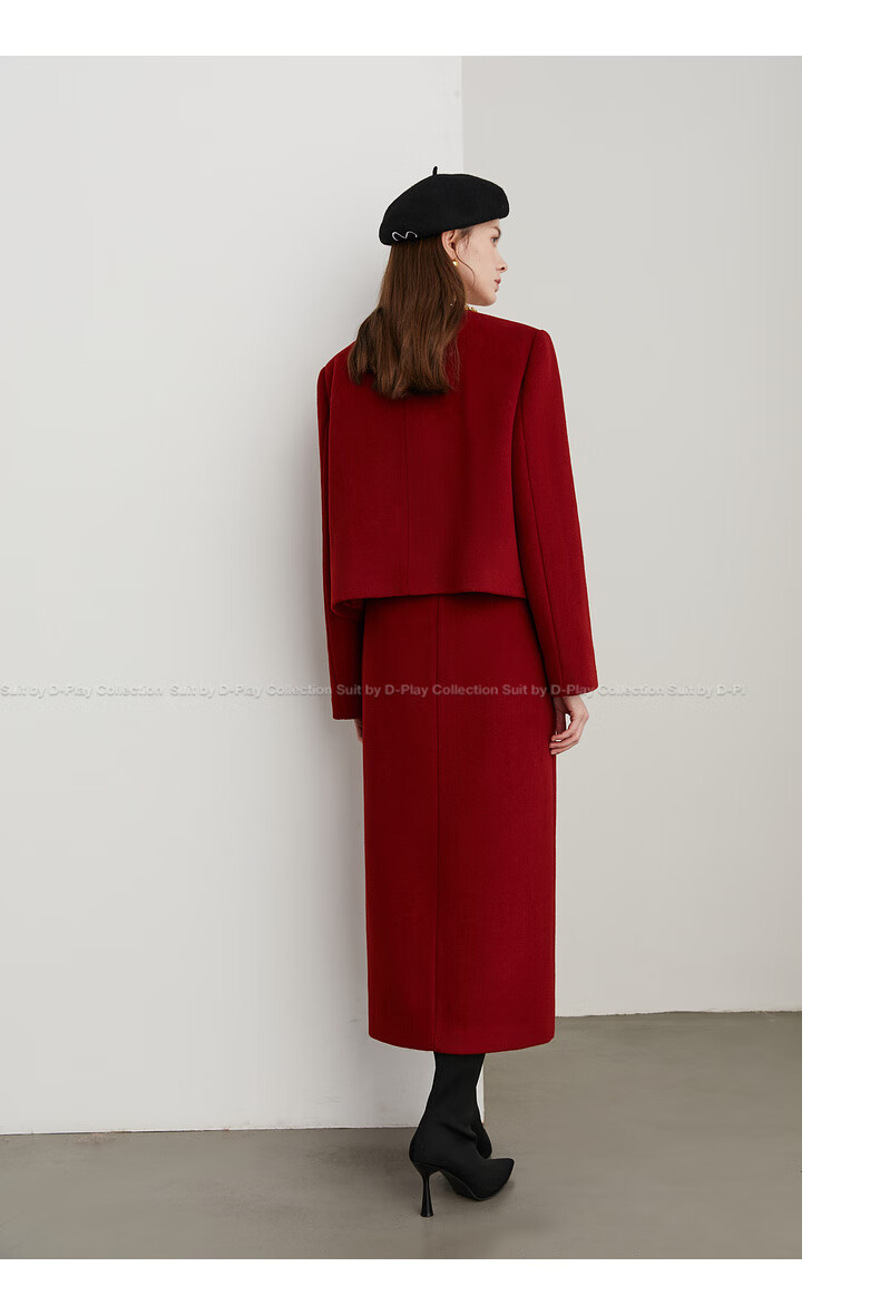 DPLAY Black Label 2025 Autumn New Red Small Fragrance Suit Women's Wool New Year Jacket Skirt Skirt-Anchor Red XL
