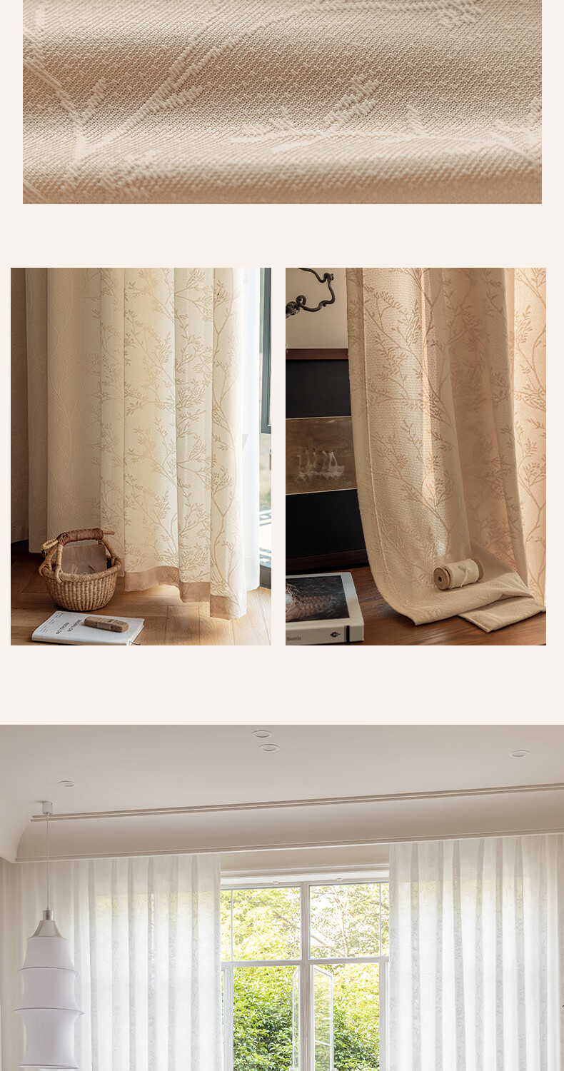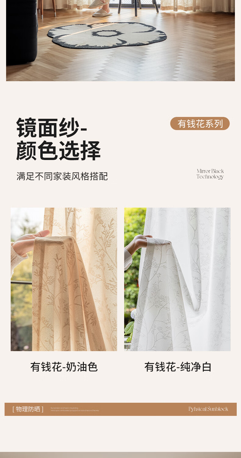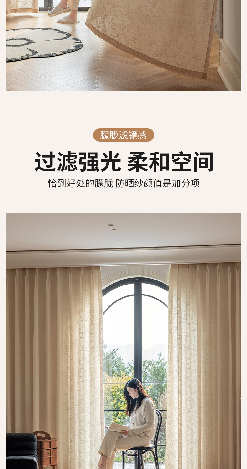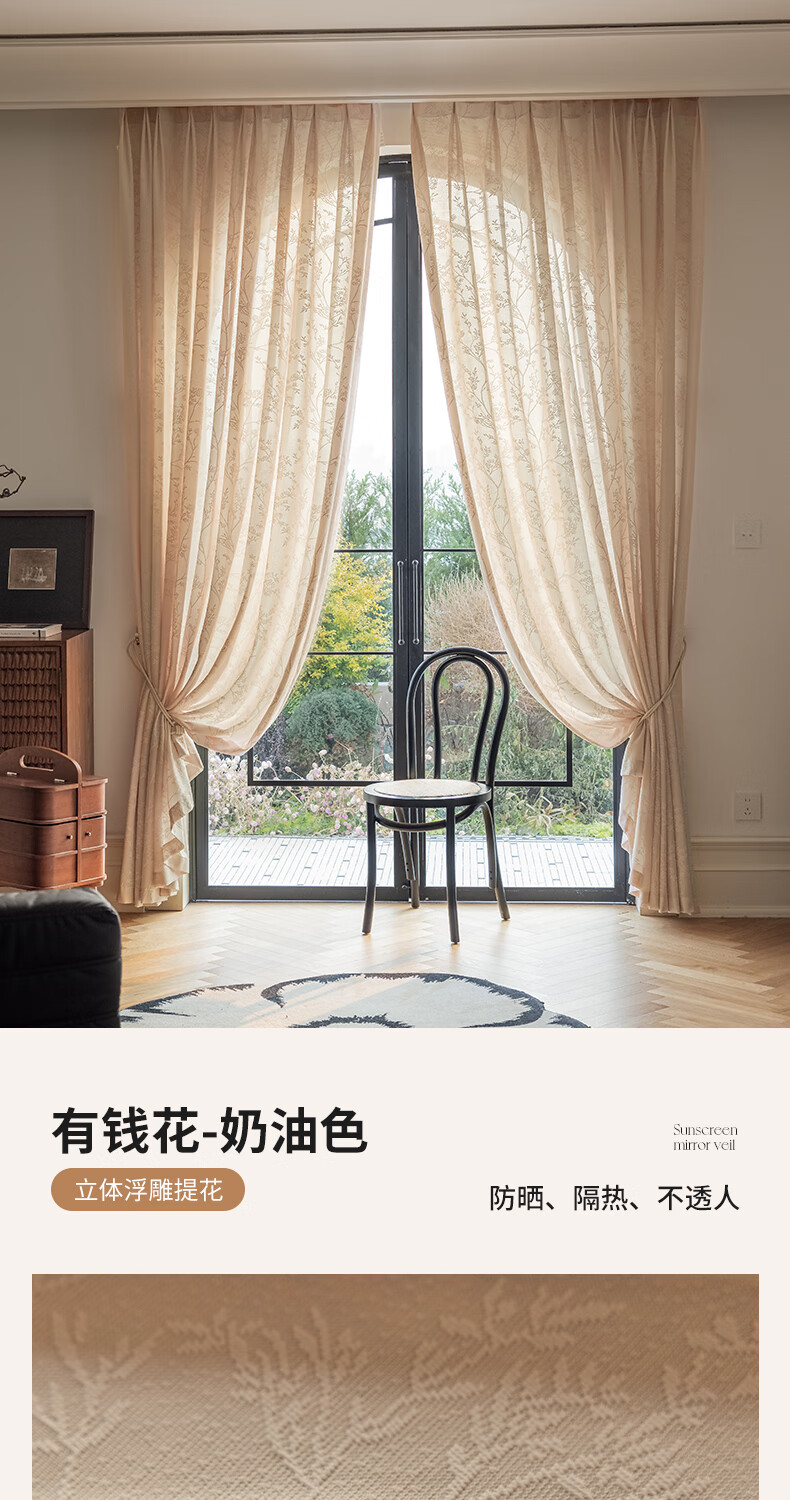 Jiafei balcony insulated sunscreen mirror veil is light-transmitting and opaque gauze curtains living room bay window screen curtains high-end cream color mirror rich-milk tea color 4 meters wide * 2.7 meters high - hook type 1 piece