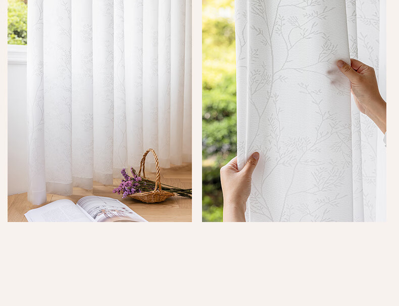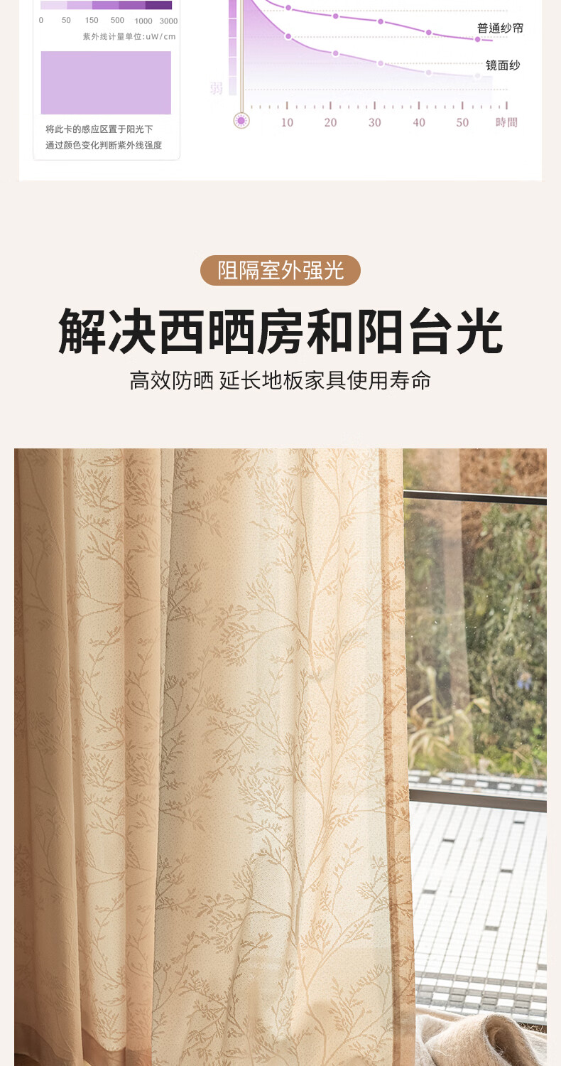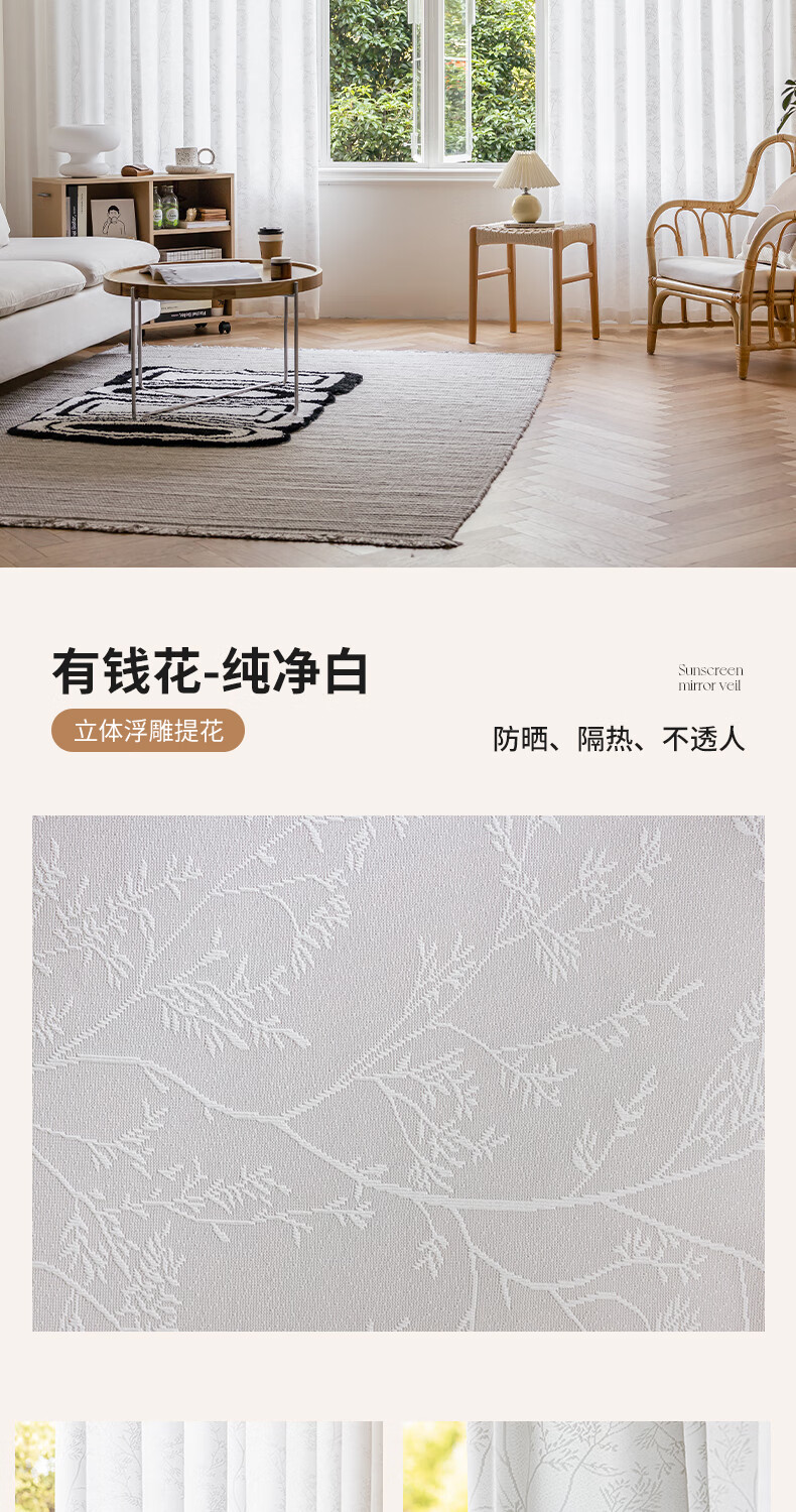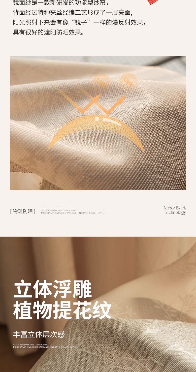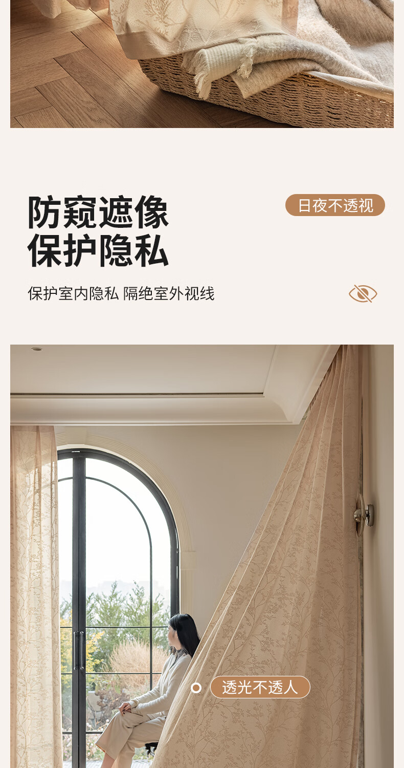 Jiafei balcony insulated sunscreen mirror veil is light-transmitting and opaque gauze curtains living room bay window screen curtains high-end cream color mirror rich-milk tea color 4 meters wide * 2.7 meters high - hook type 1 piece