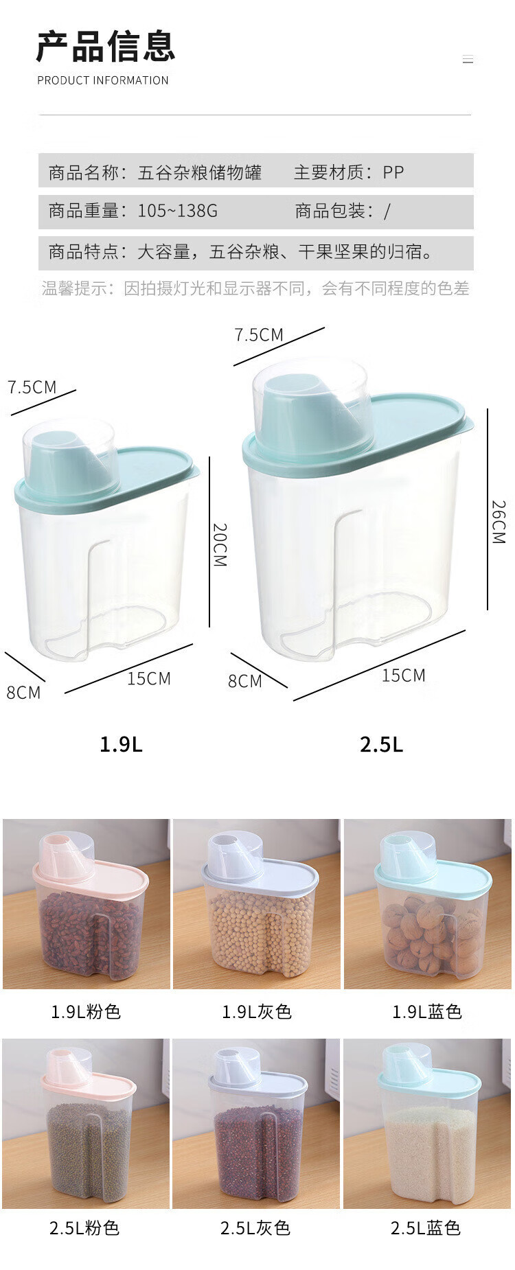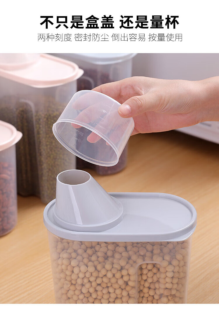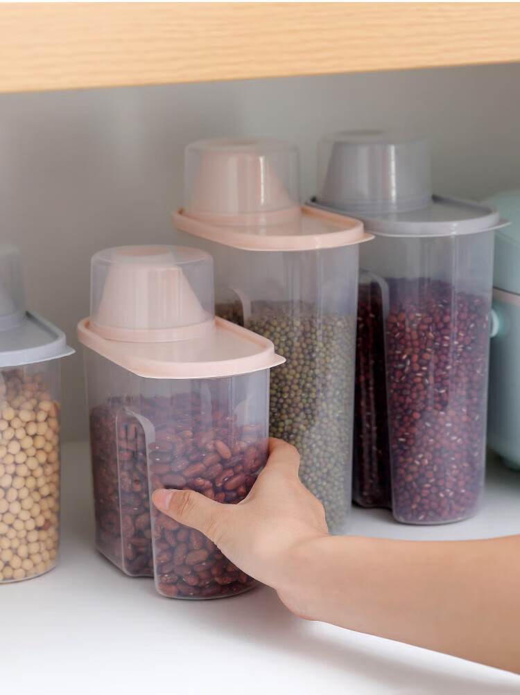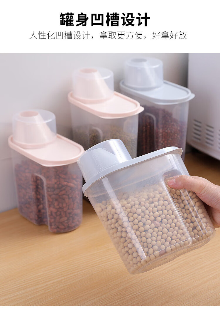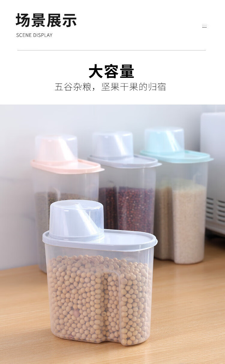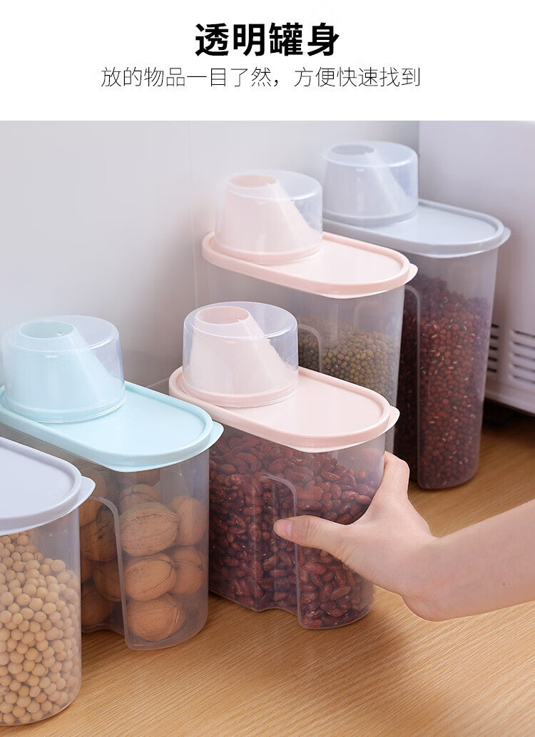 Jingdie grain storage jar with measuring cup storage box food storage storage box dry goods sealed jar rice bucket small size 1.9L random color