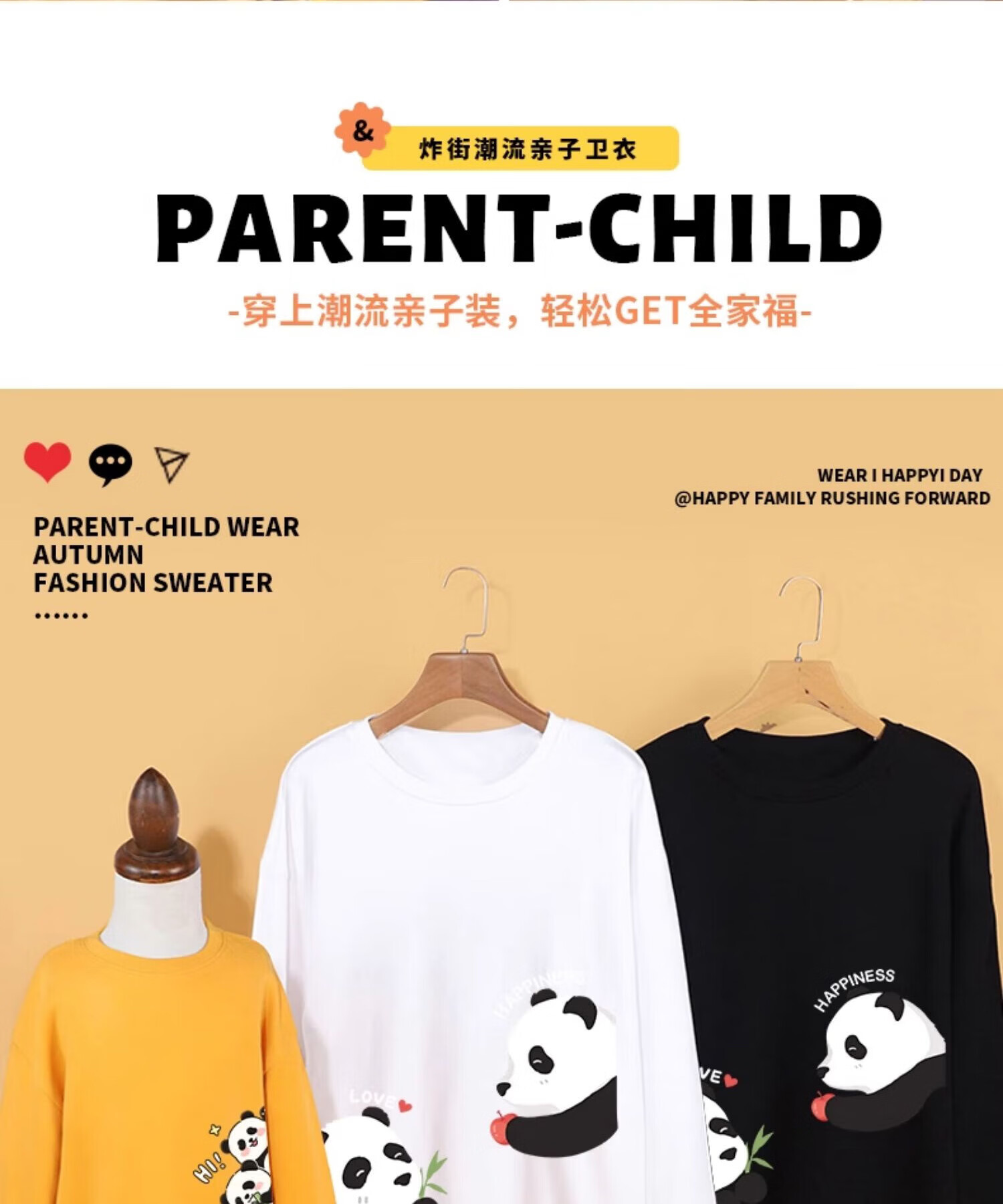 Jeanswest parent-child clothing for a family of three 2025 spring new sweatshirt family portrait panda top thin long-sleeved bottoming shirt soft and comfortable lemon yellow/national treasure panda 110
