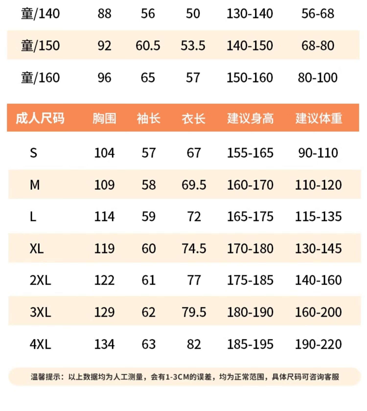 China (cm) 160-165/84-86 165-170 / 88-90 167-172 / 92-96 168-173 / 98-102 170-176 / 106-110