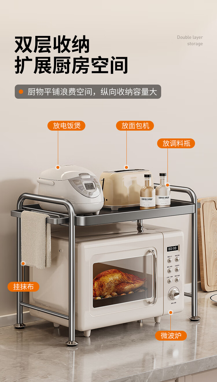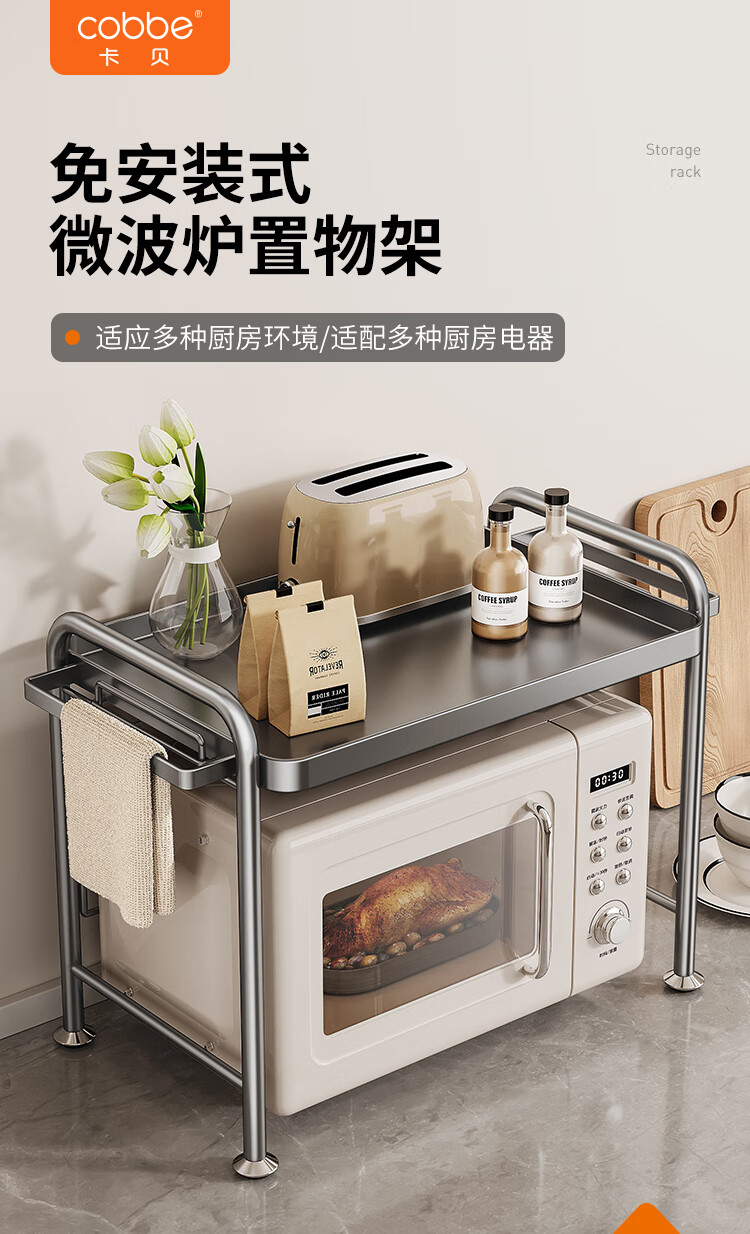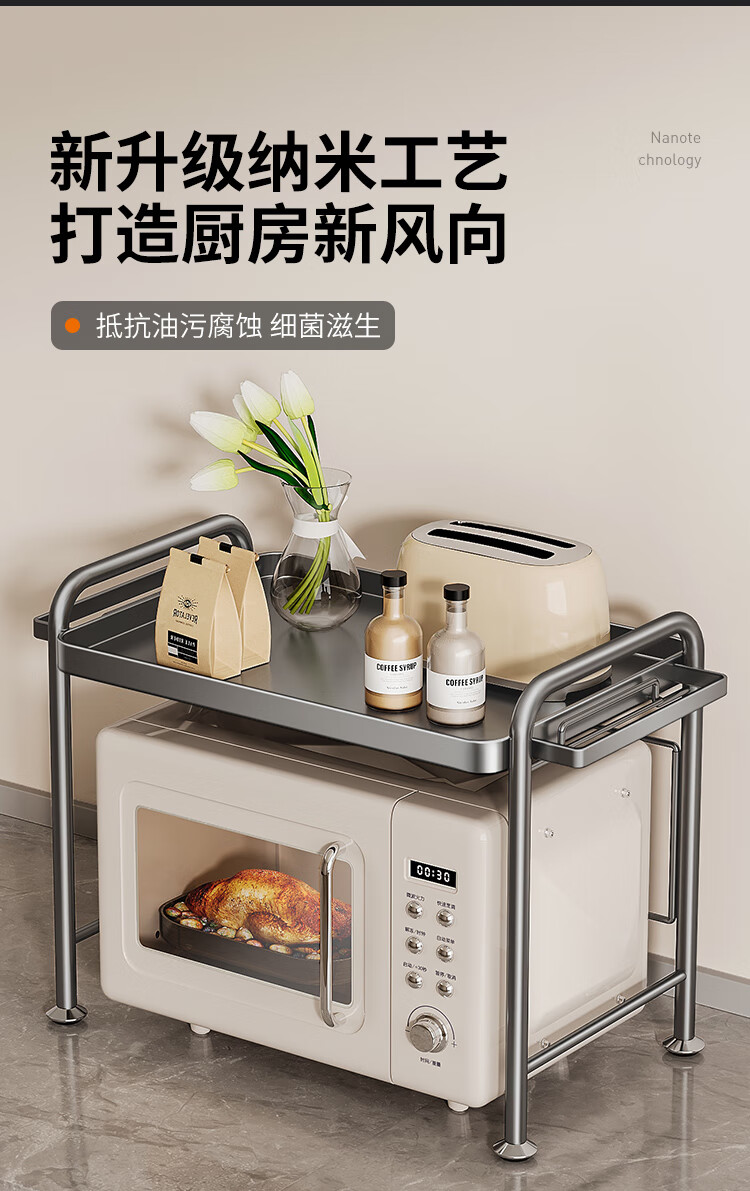 Cobbe kitchen microwave storage rack multi-layer household multi-functional rack stainless steel rice cooker oven countertop storage rack nano gray-antibacterial and anti-fouling-53cm