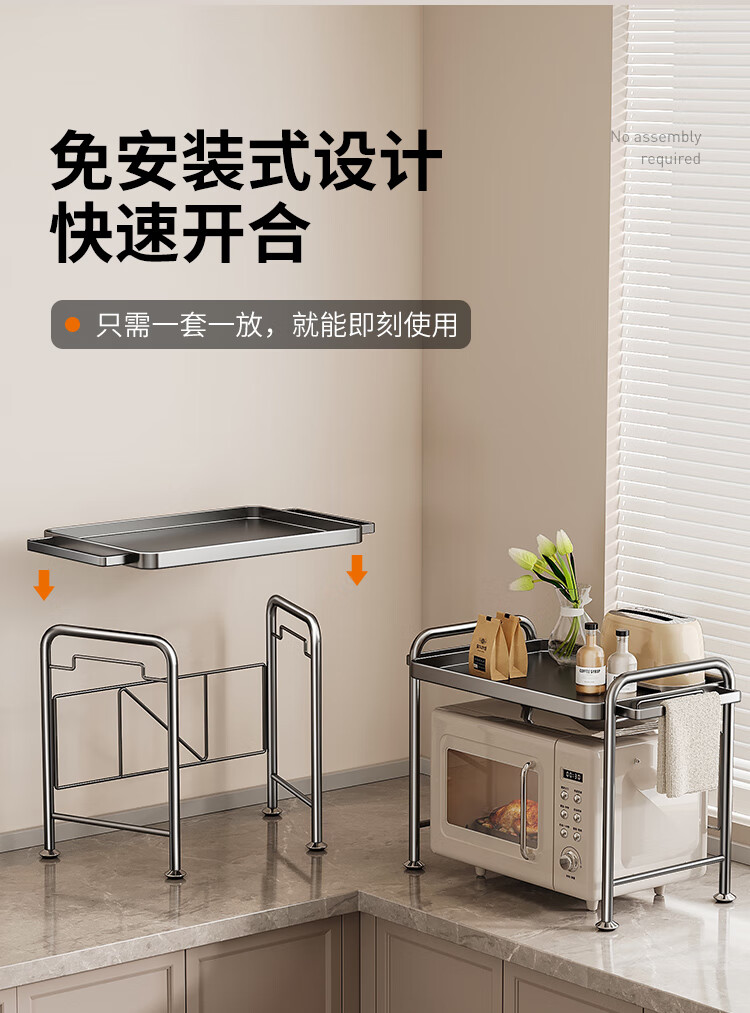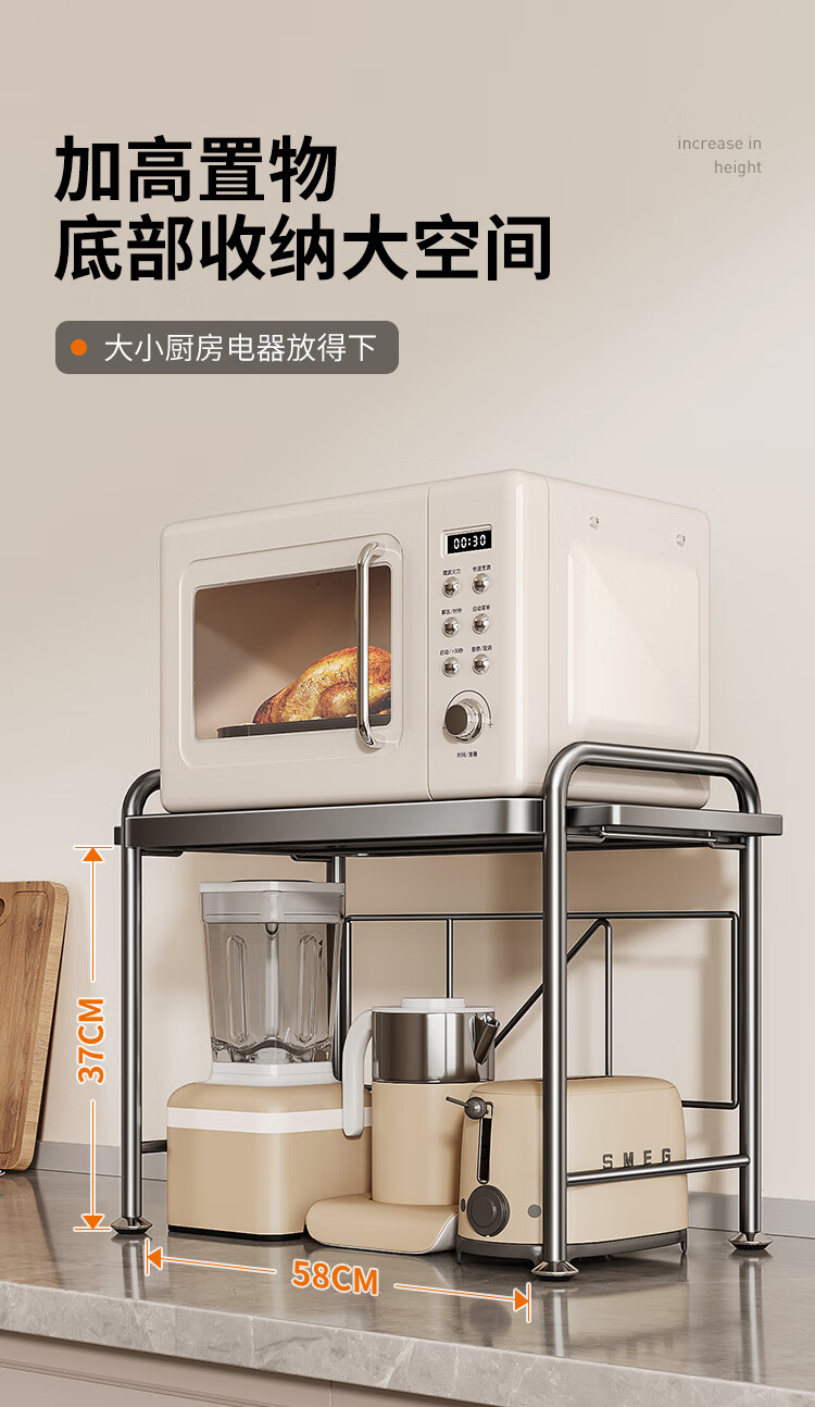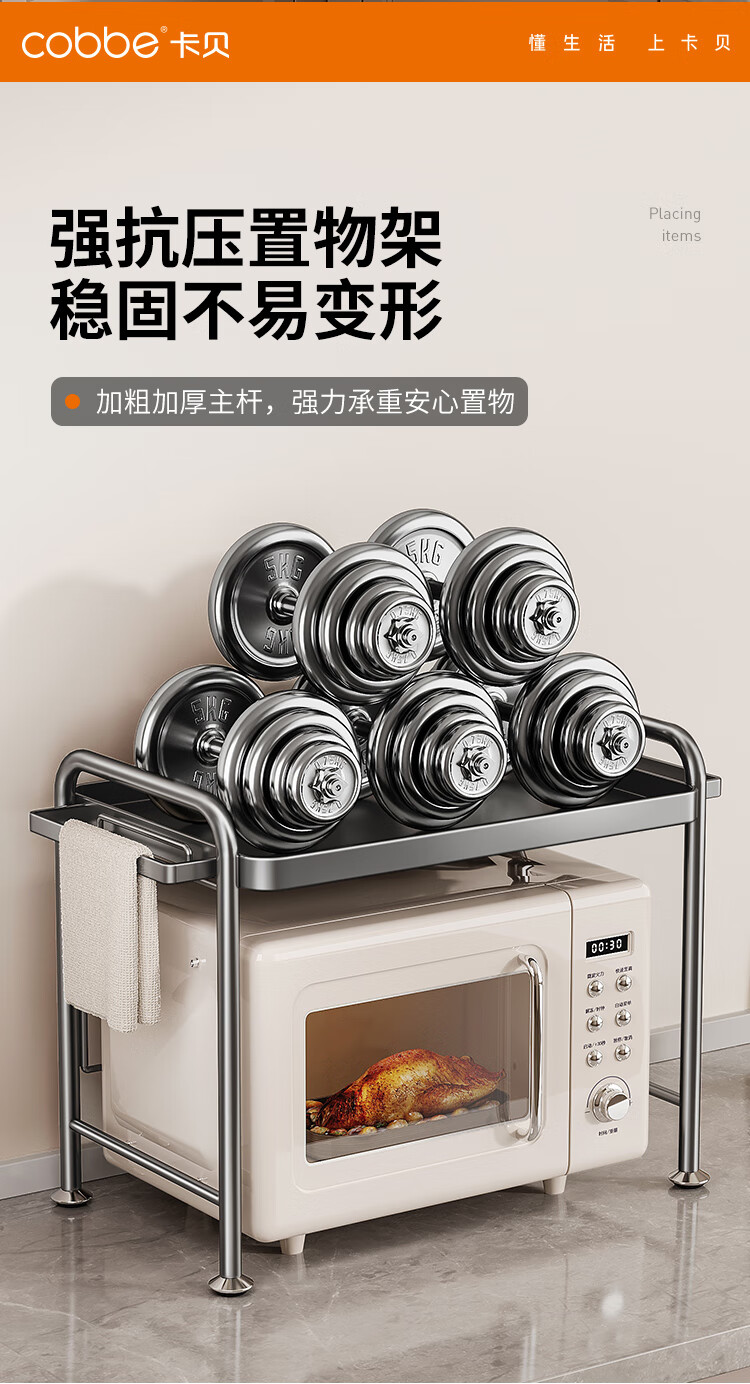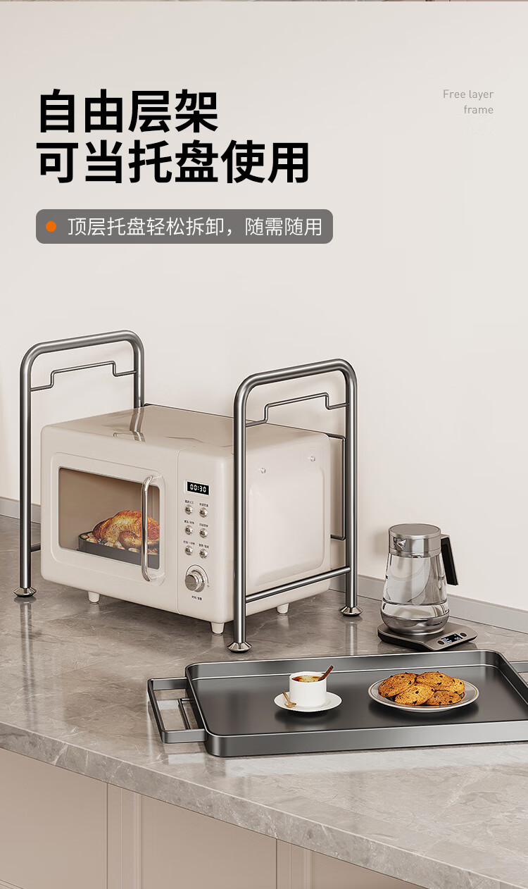 Cobbe kitchen microwave storage rack multi-layer household multi-functional rack stainless steel rice cooker oven countertop storage rack nano gray-antibacterial and anti-fouling-53cm