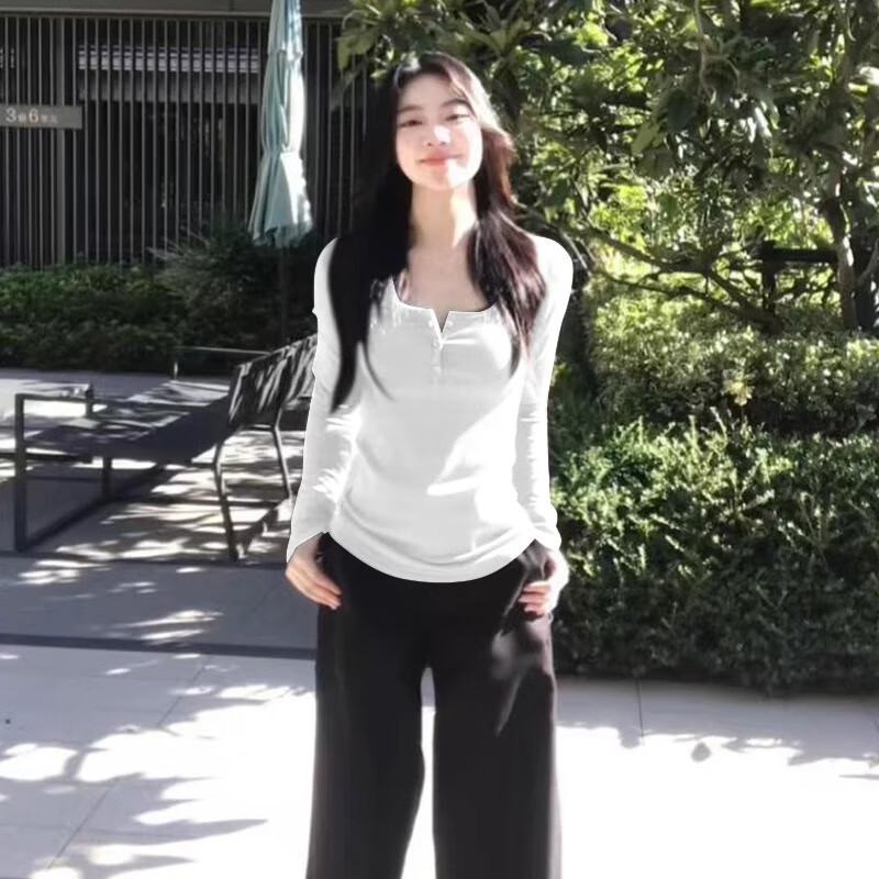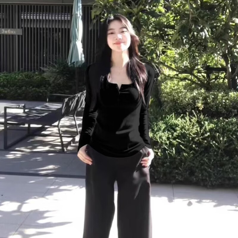 LDBE shoulder U-neck long-sleeved T-shirt women's autumn and winter new niche design bottoming shirt American hot girl slimming top Gray L