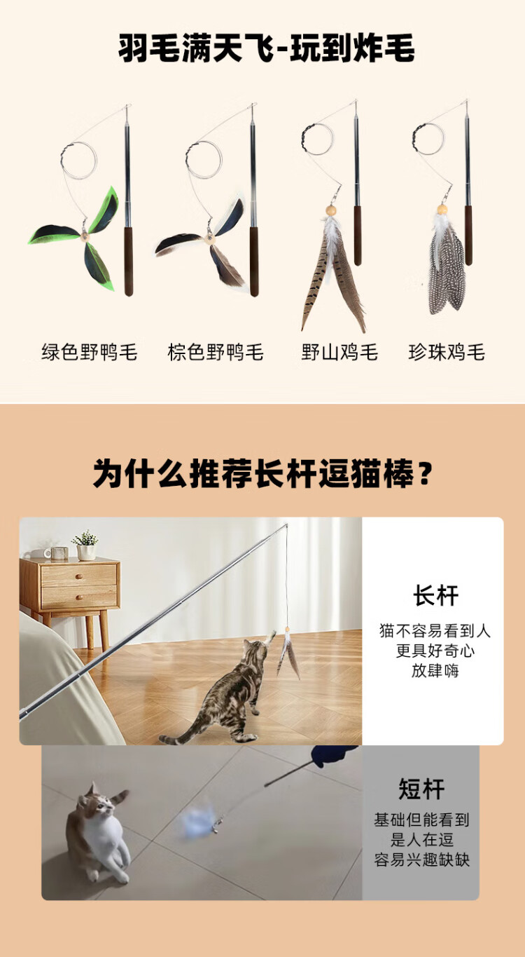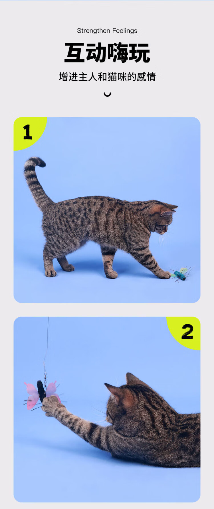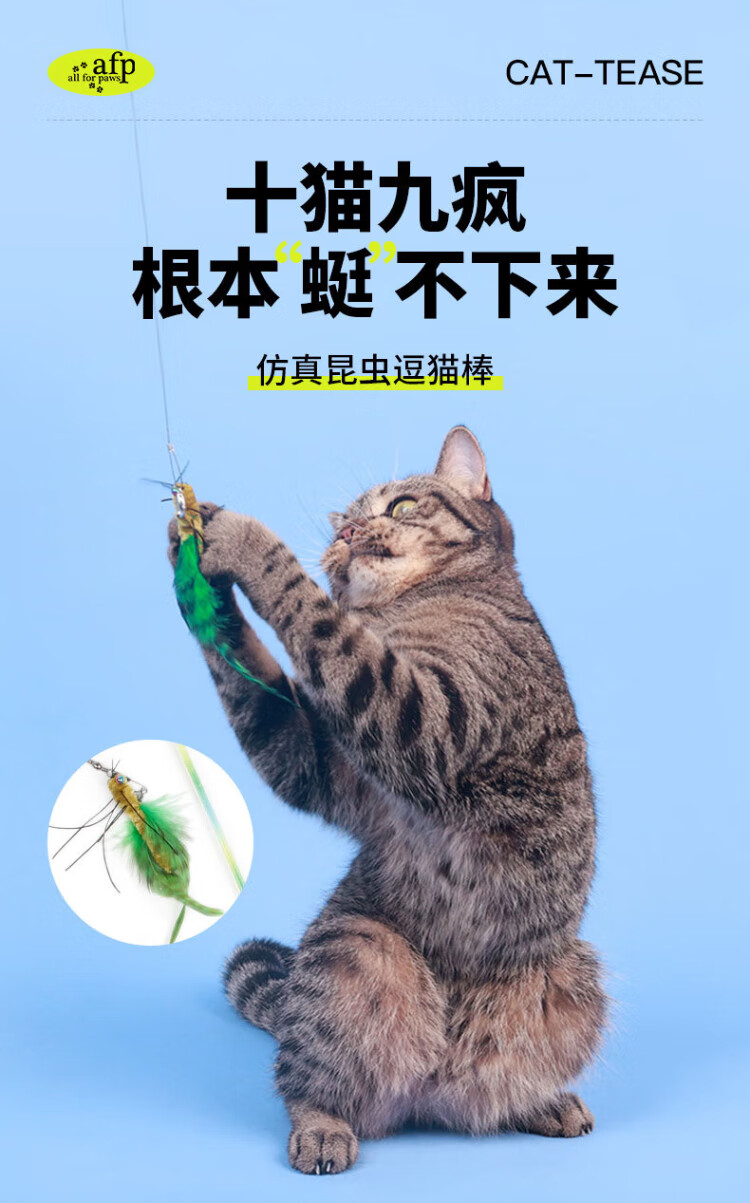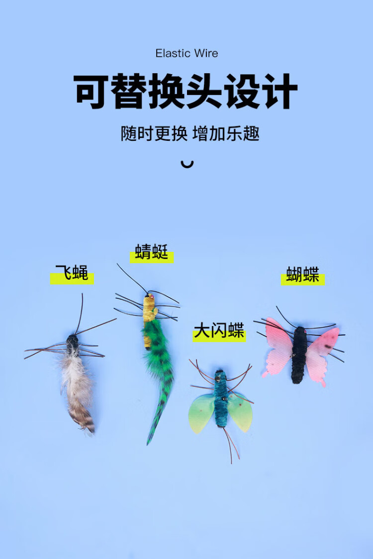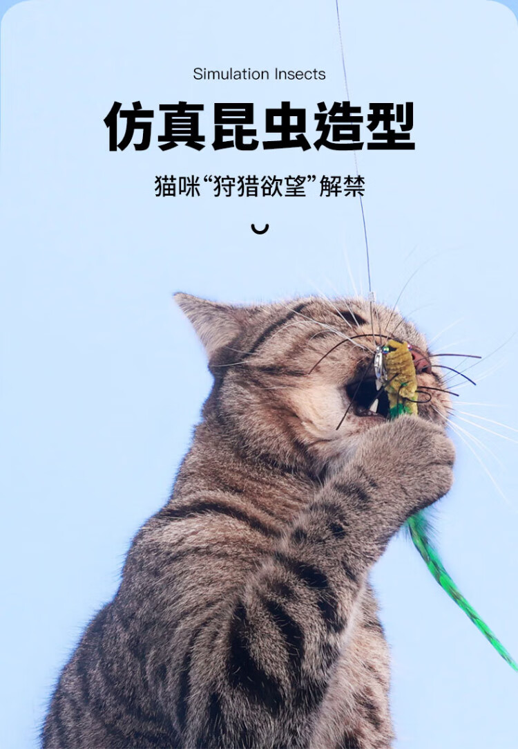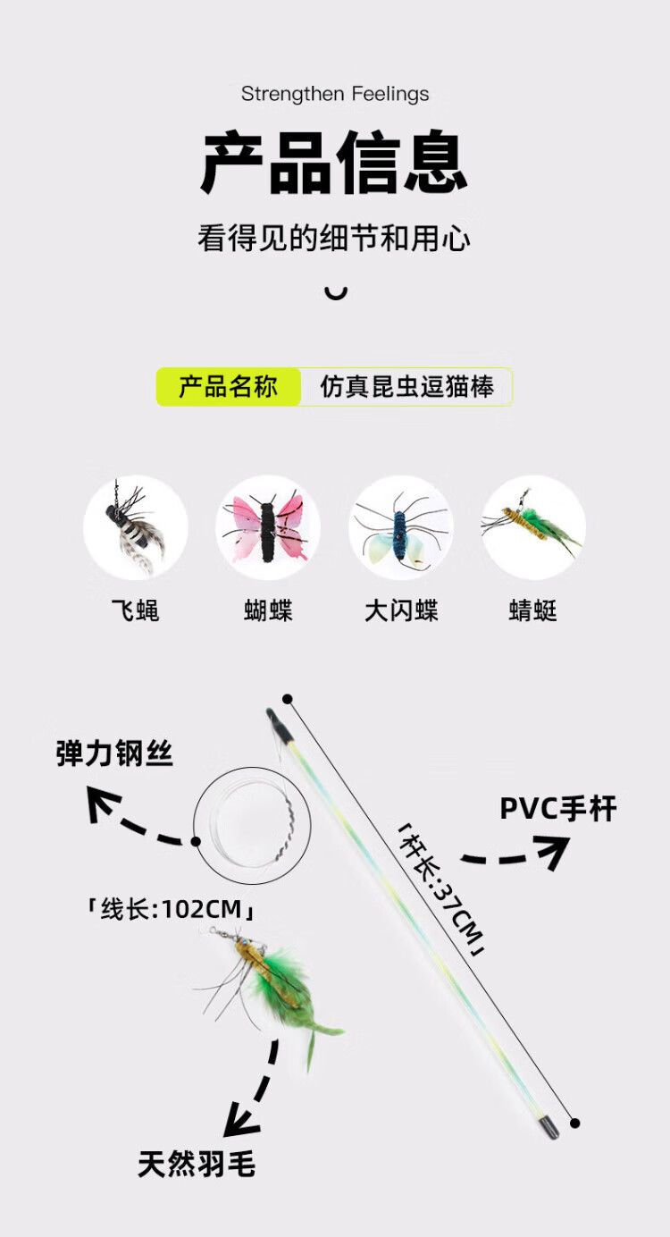 All for paws Simulated Insect Cat Flirting Sticks Cat Toy Resistant to Bite and Shake Cat Self-Happiness Replacement Head Resistant to Bite and Relieve Boredom New Product 5-Pack Bug Cat Flirting Stick