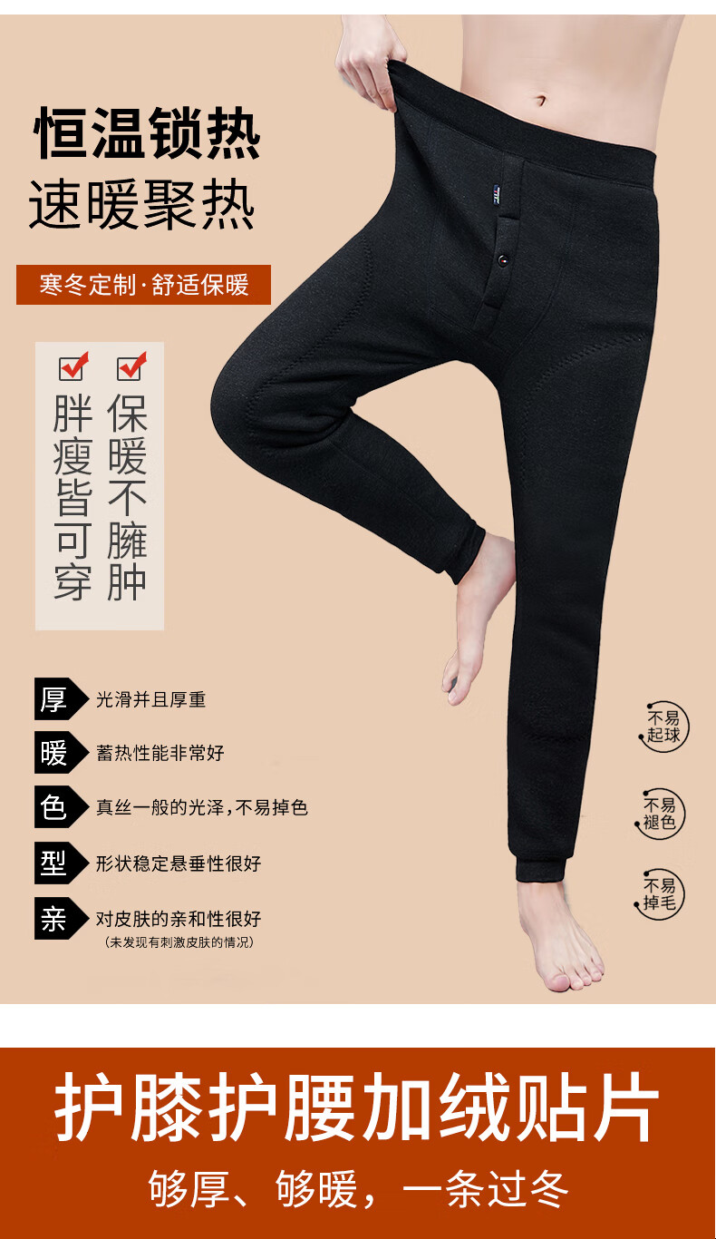 Men's thermal pants high waist inner wear winter plus velvet thickening cold-proof Northeast cotton pants sherpa waist protection knee pads leggings black gray plus velvet thickening inner wear for men 3XL Recommendation 135-150Jin Jin is equal to 0.5 kg