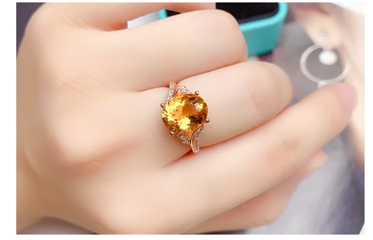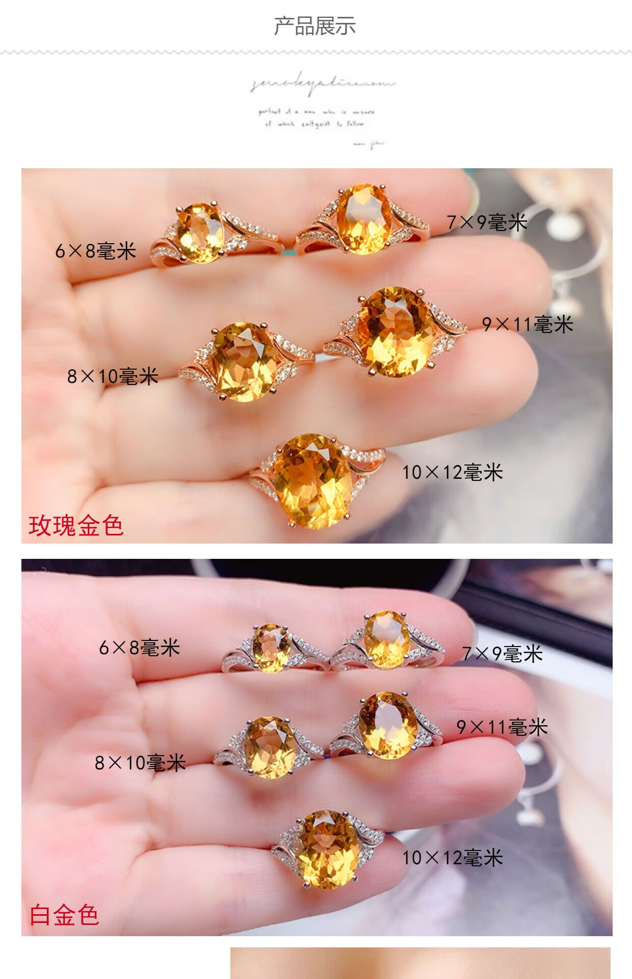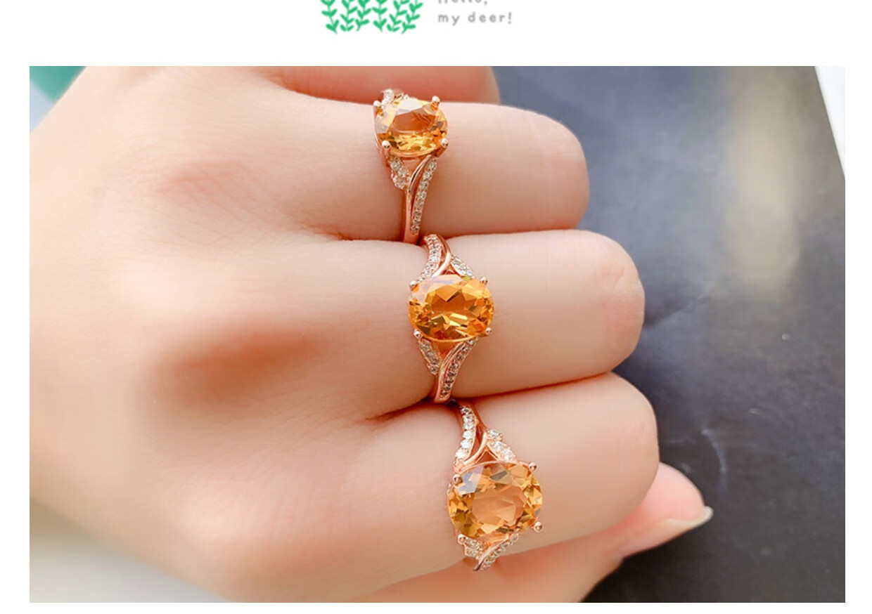 Yan's sterling silver inlaid natural citrine ring for women with adjustable buckle, fashionable, sweet, Japanese and Korean yellow gemstones with certificate 6 8 (rose gold)