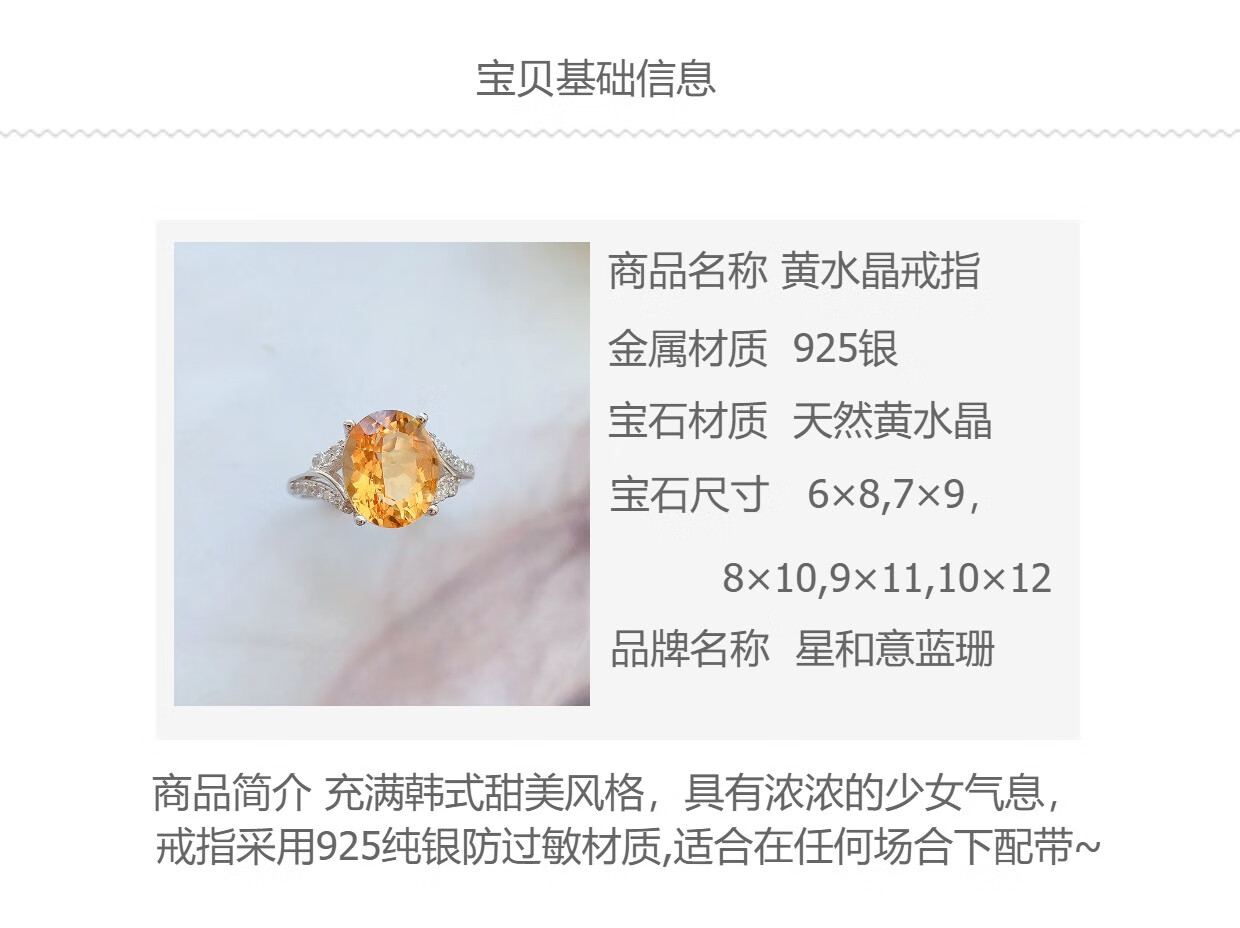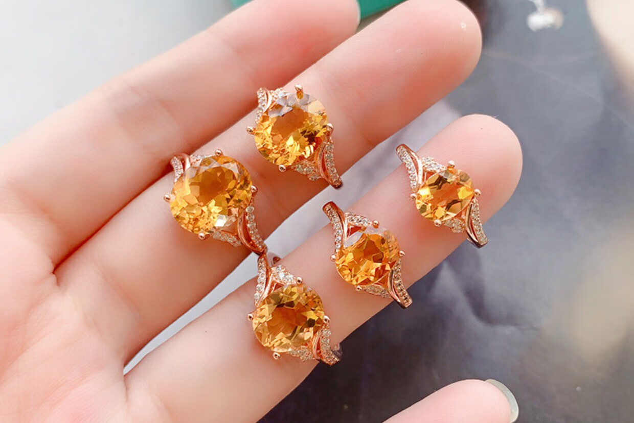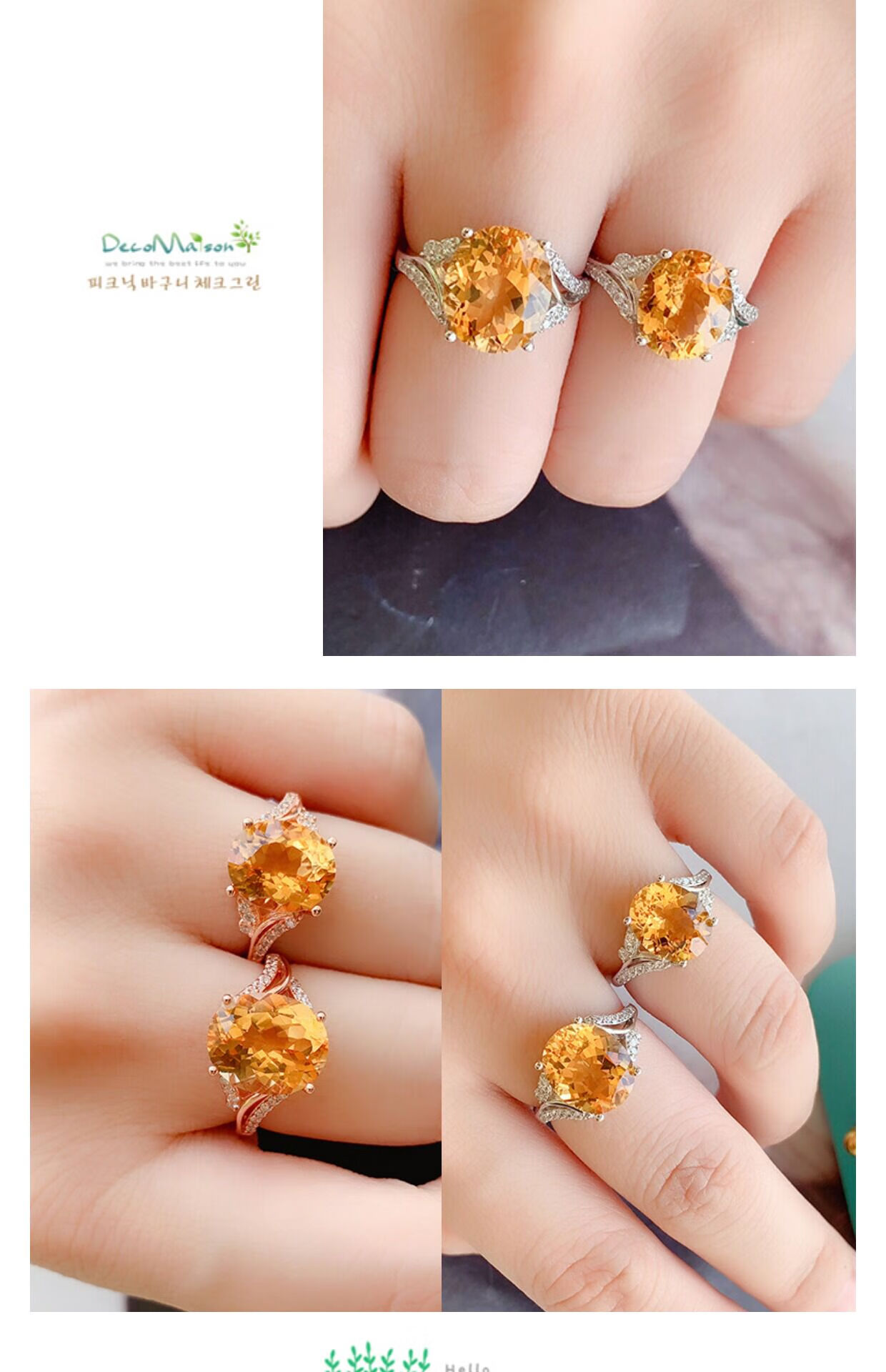 Yan's sterling silver inlaid natural citrine ring for women with adjustable buckle, fashionable, sweet, Japanese and Korean yellow gemstones with certificate 6 8 (rose gold)