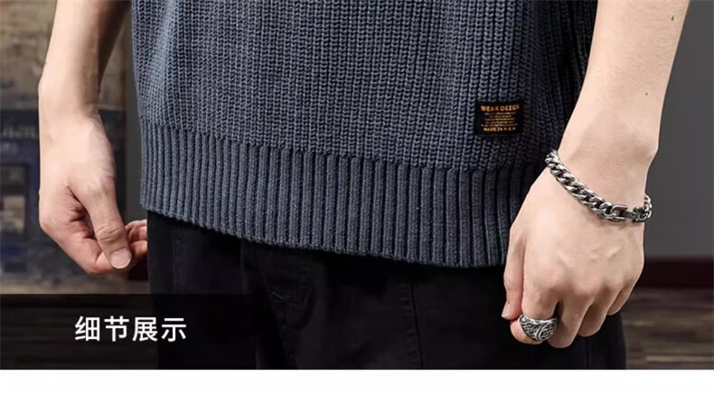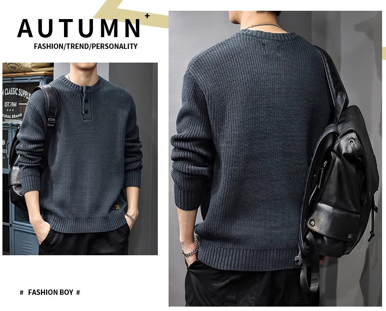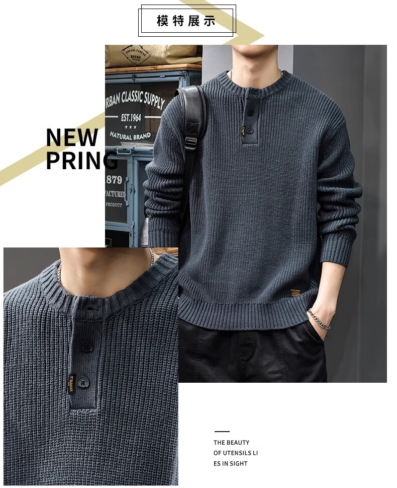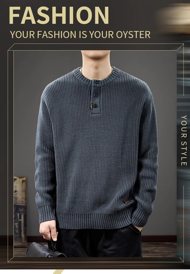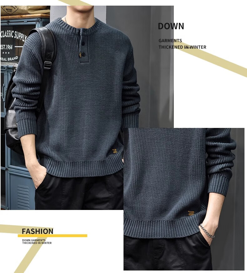 Gu Xiansen autumn and winter sweater men's American retro Henry collar heavyweight inner casual sweater autumn and winter coat sweater black L 115-130Jin Jin equals 0.5 kg