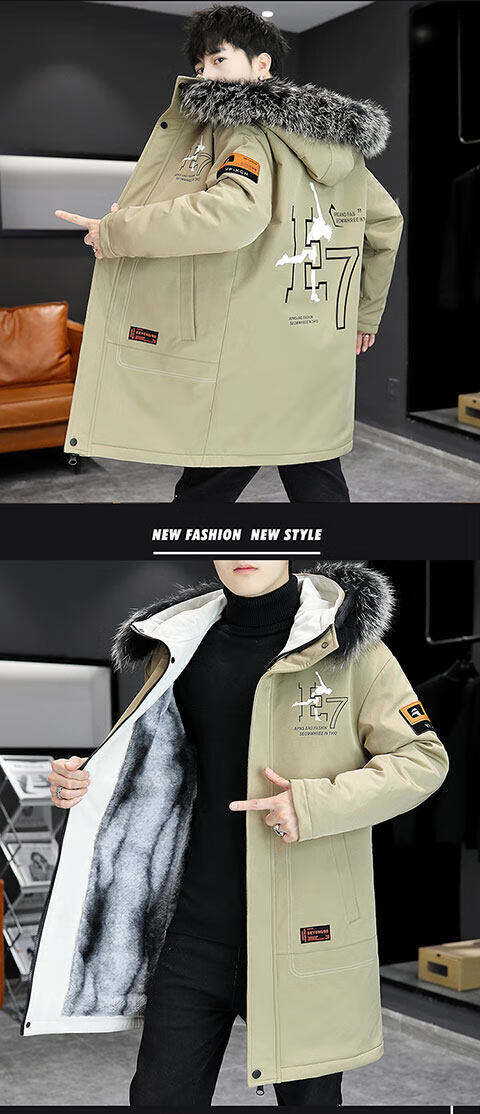 Woodpecker (TUCANO) cotton-padded jacket men's jacket winter plus velvet thickened jacket mid-length men's down casual down jacket men's cotton-padded jacket men's 21195 Khaki XL about 125-140Jin Jin is equal to 0.5 kg