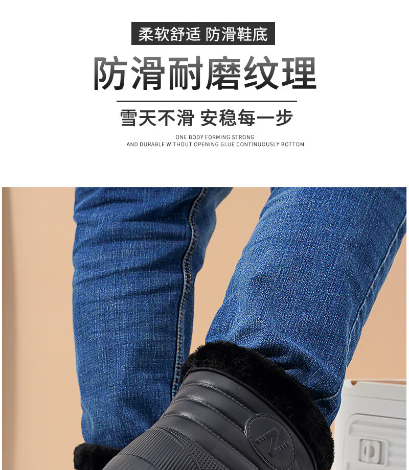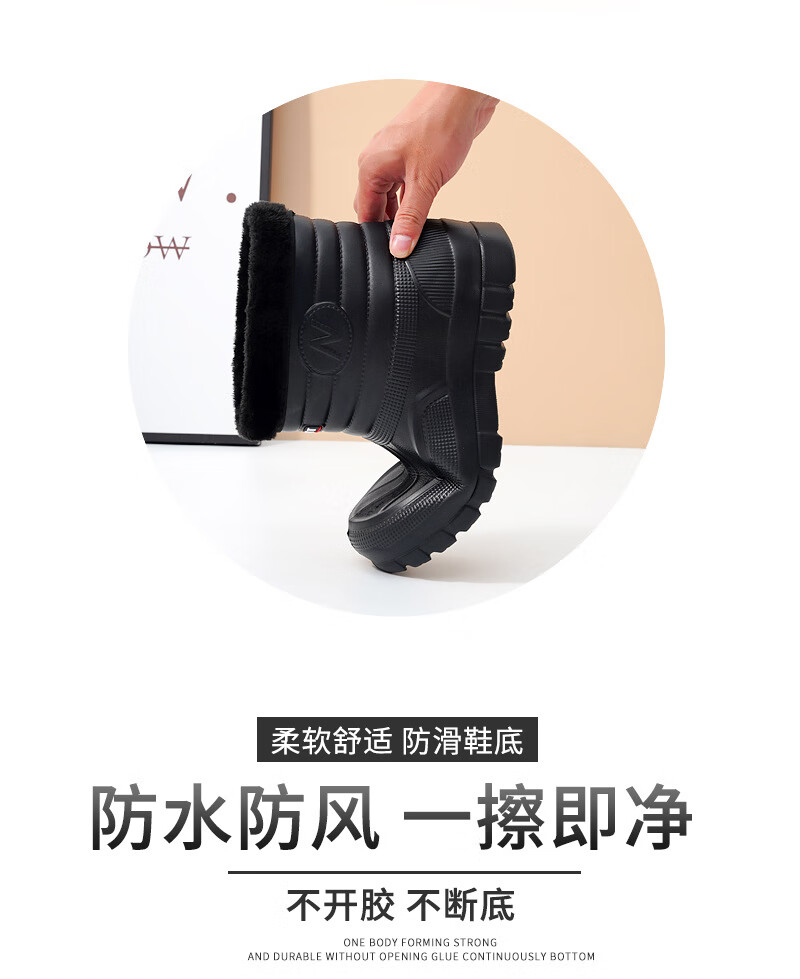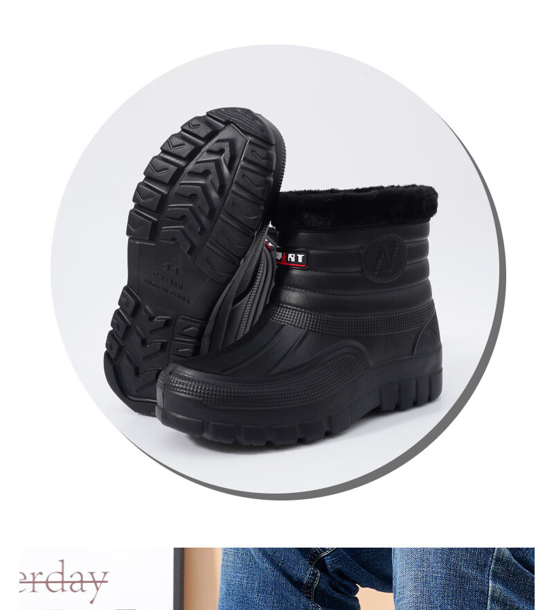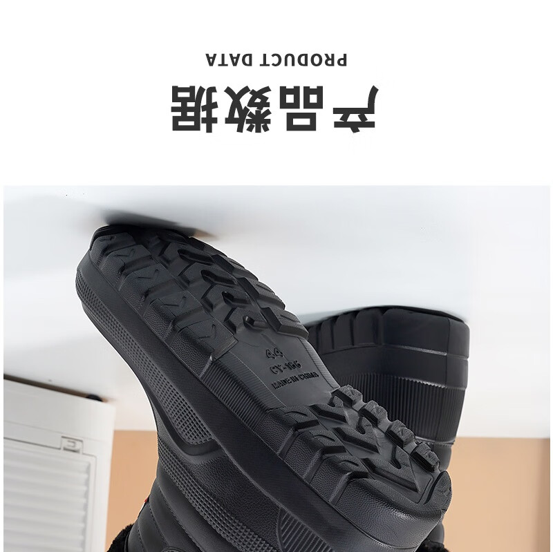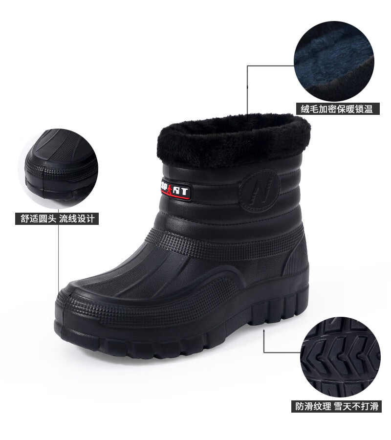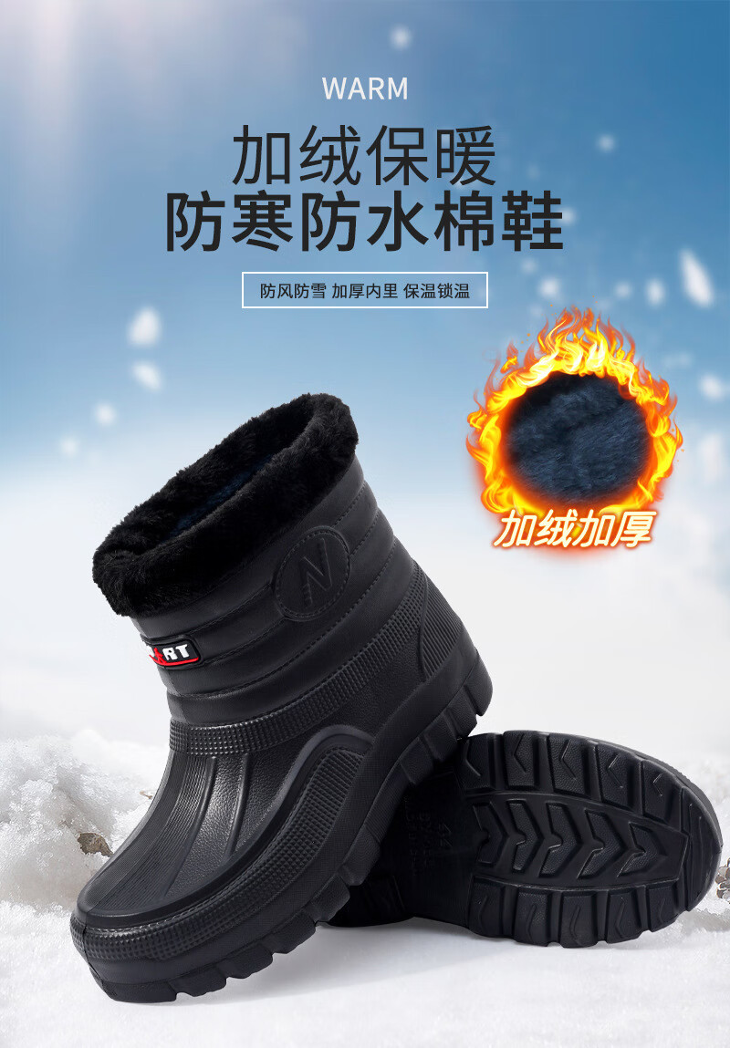 Plush velvet warm outdoor waterproof cotton shoes men's rain boots car wash room construction site labor protection wear-resistant mid-high water shoes snow boots 166 black 41