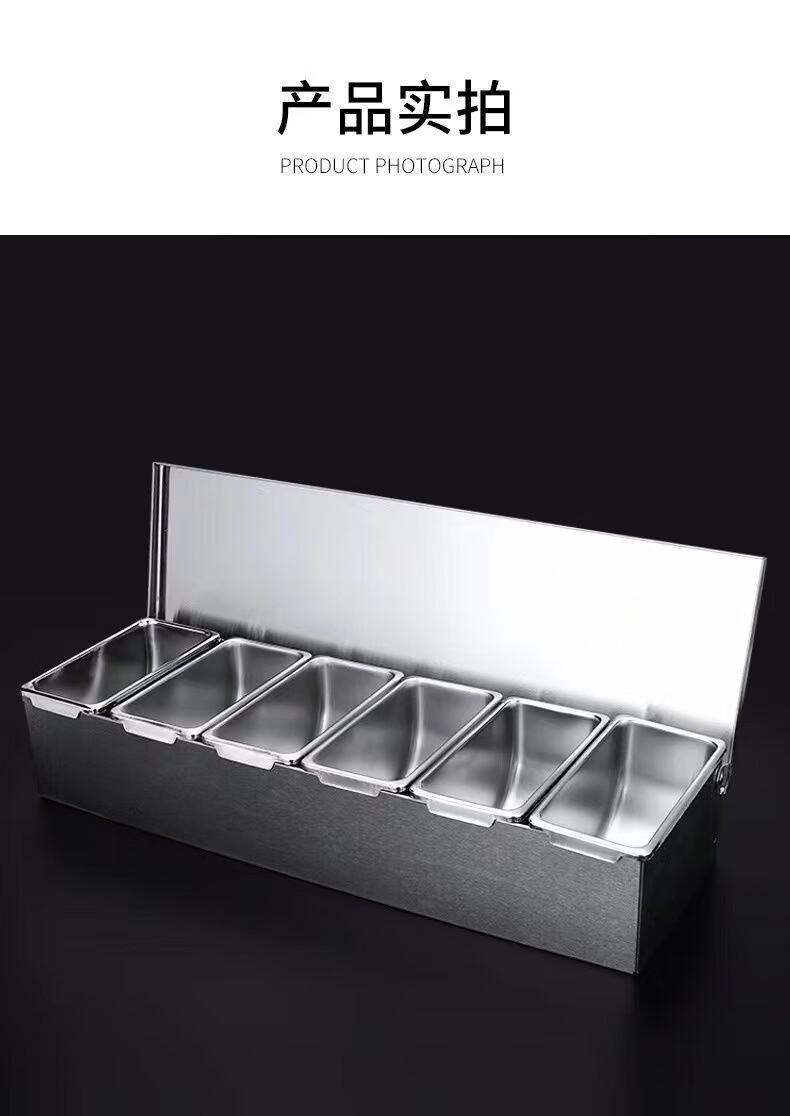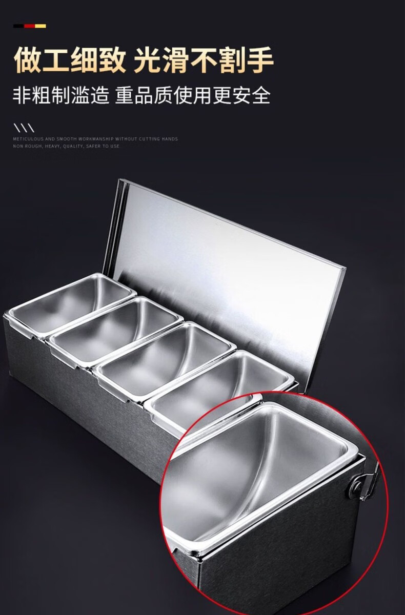 Berna stainless steel seasoning box commercial household kitchen and restaurant supplies large capacity multi-grid stainless steel seasoning box thickened western style seasoning box 6 grids 6 spoons 0ml