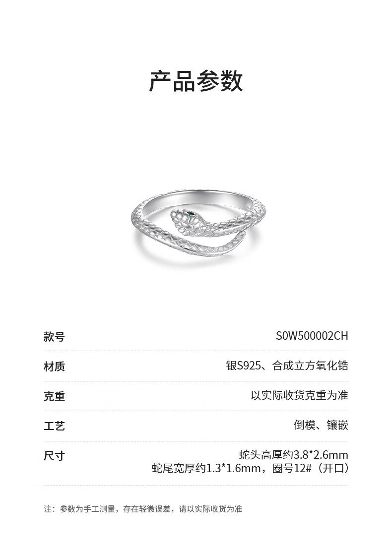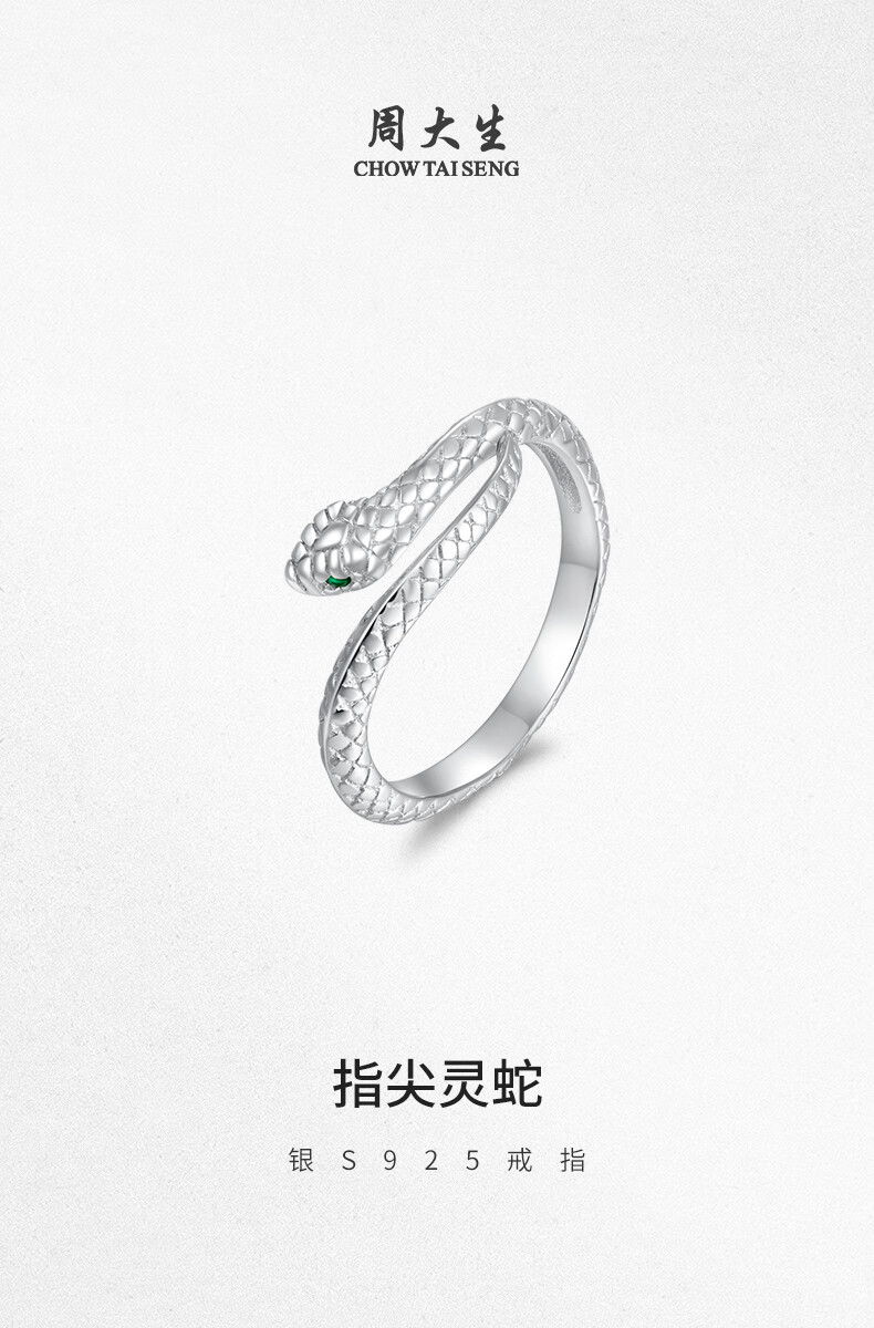 Chow Tai Sang S925 Silver Fingertip Spirit Snake Sterling Silver Ring Open Ring for Girlfriend, Birthday Gift for Best Friend, Holiday Gift Spirit Snake S925 Silver Ring