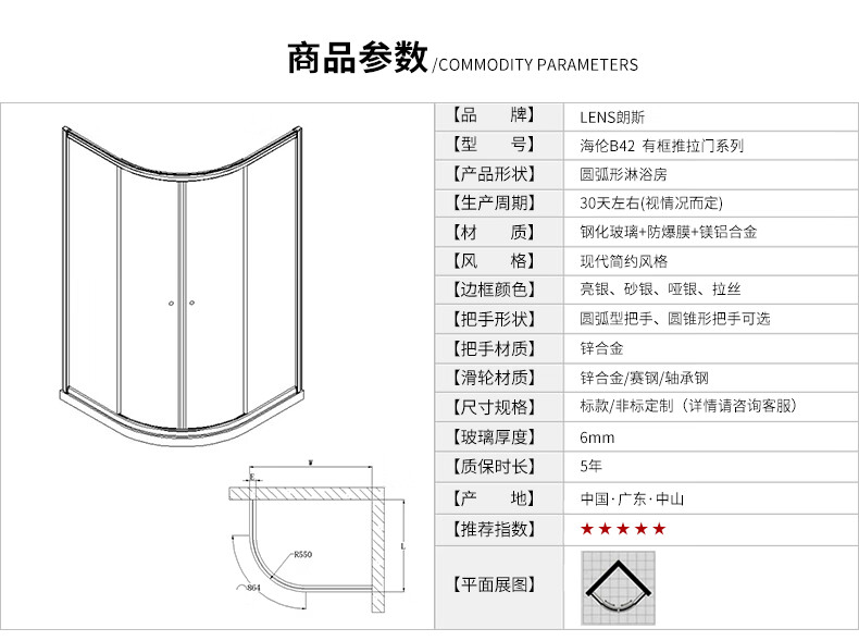LENS shower room arc-shaped bathroom dry and wet separation 6mm sand silver 1 square meter x does not include steam