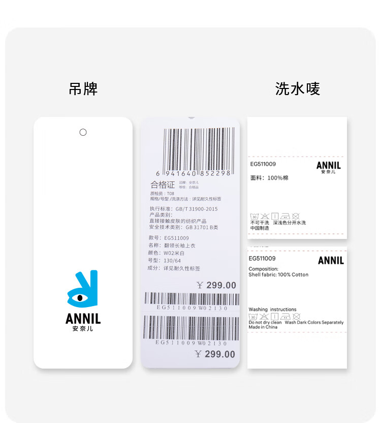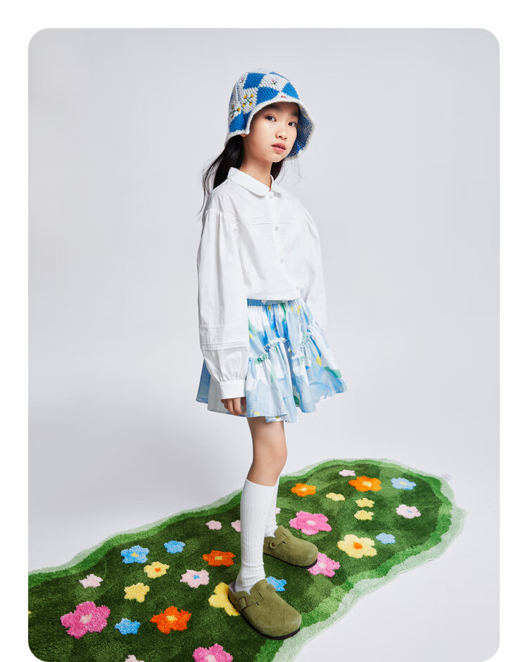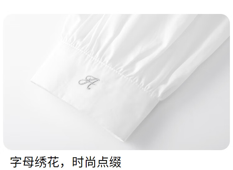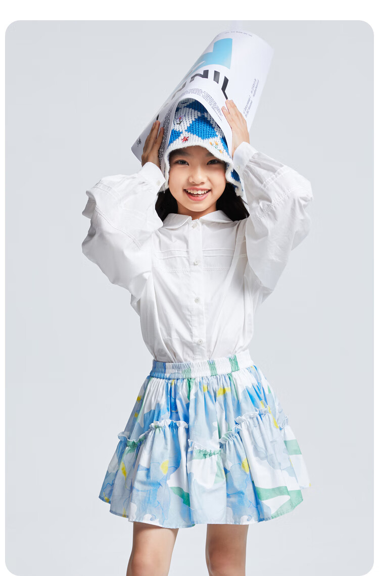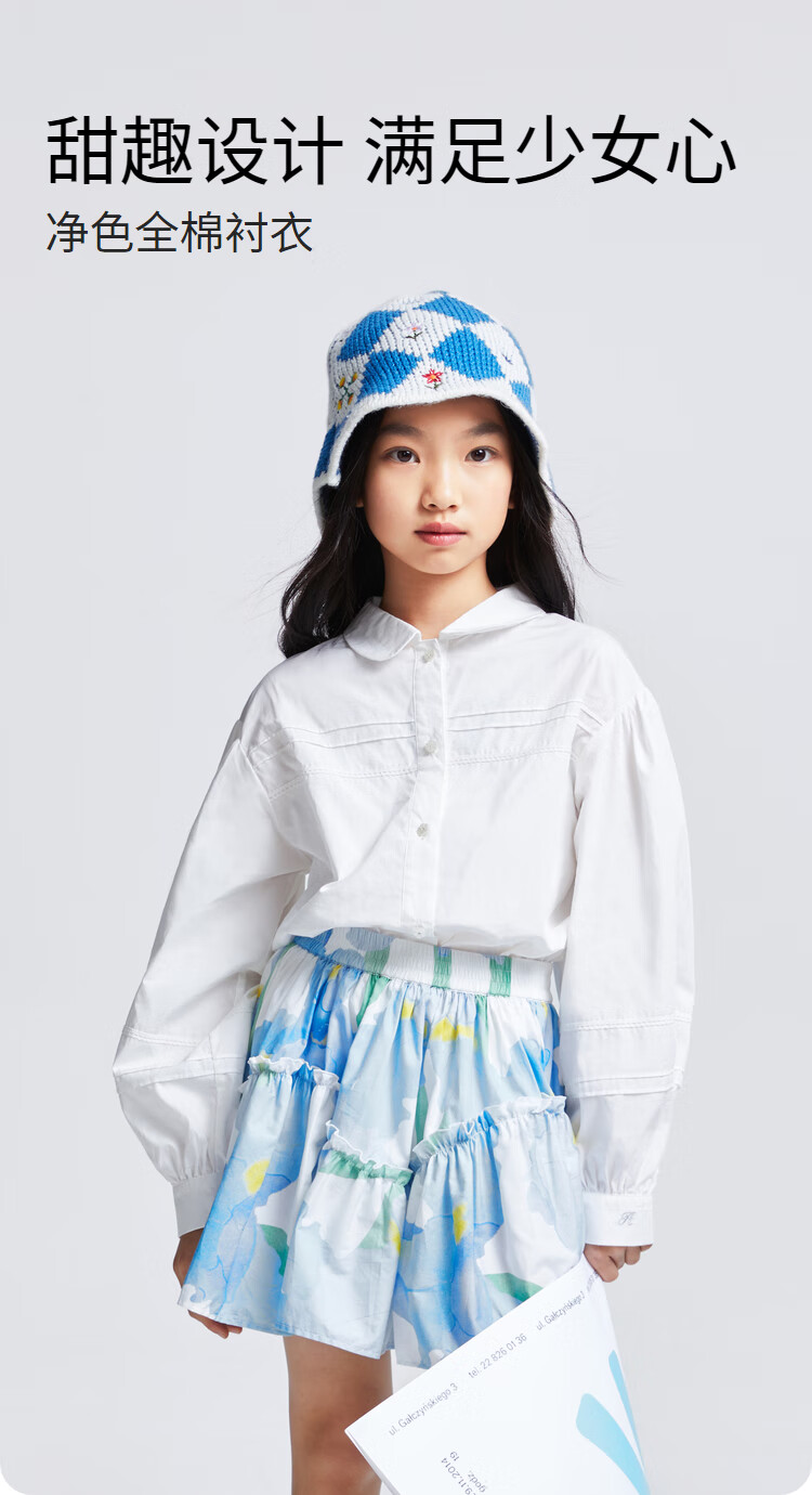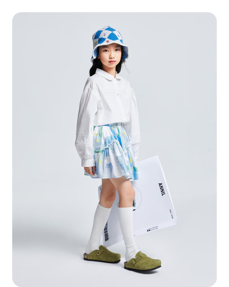 Anair girls' lapel long-sleeved cotton shirt 2025 spring new loose lantern sleeve white shirt off-white 120cm