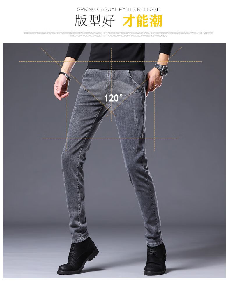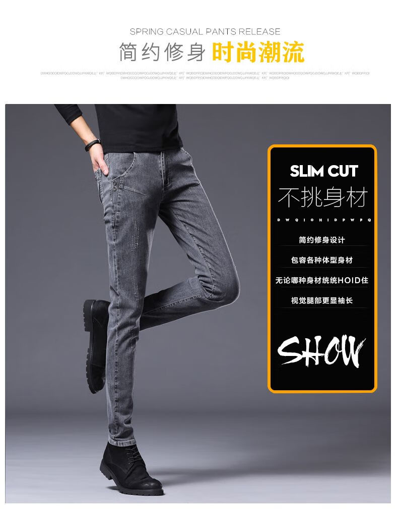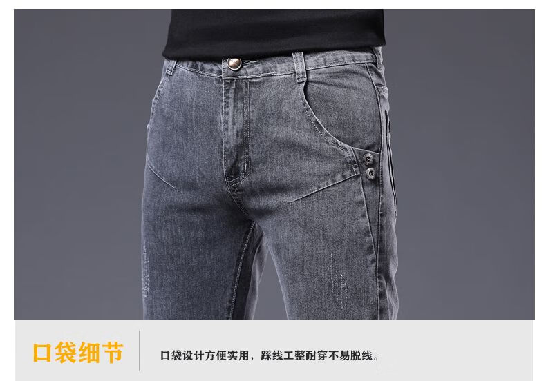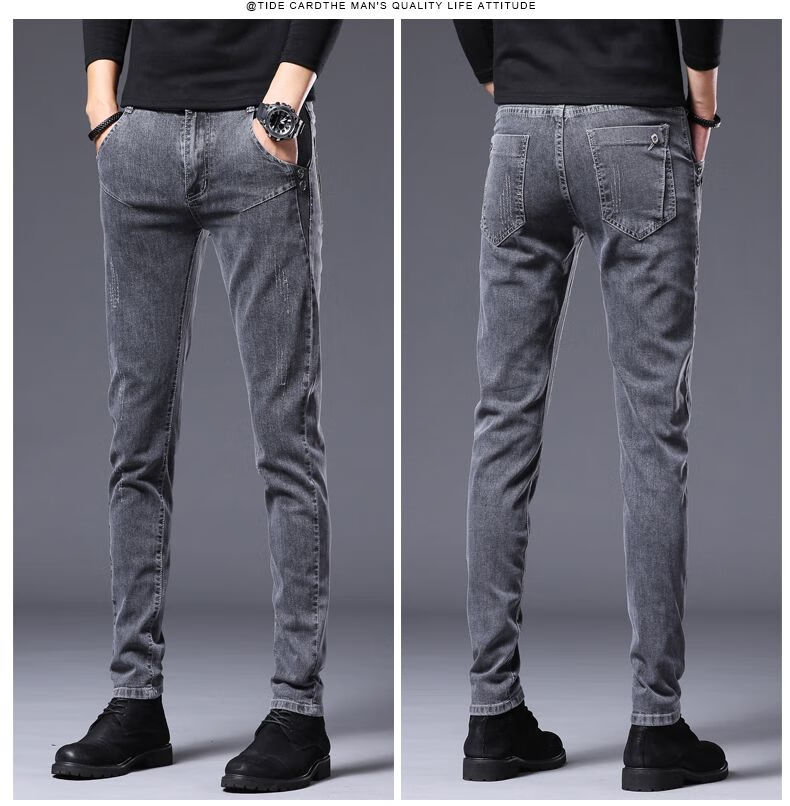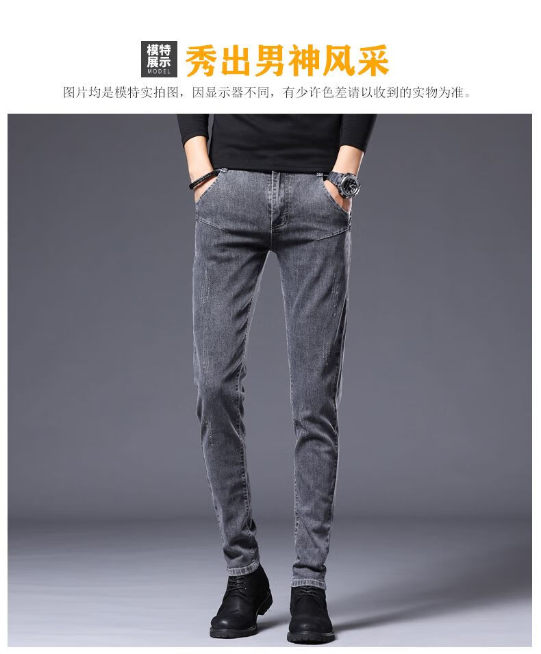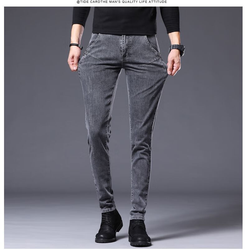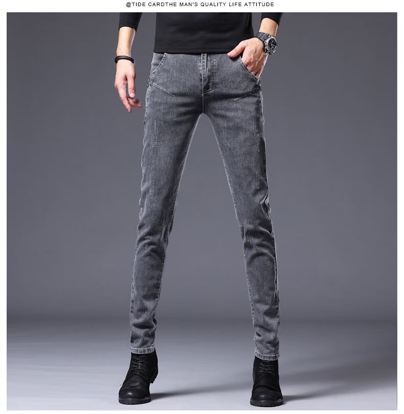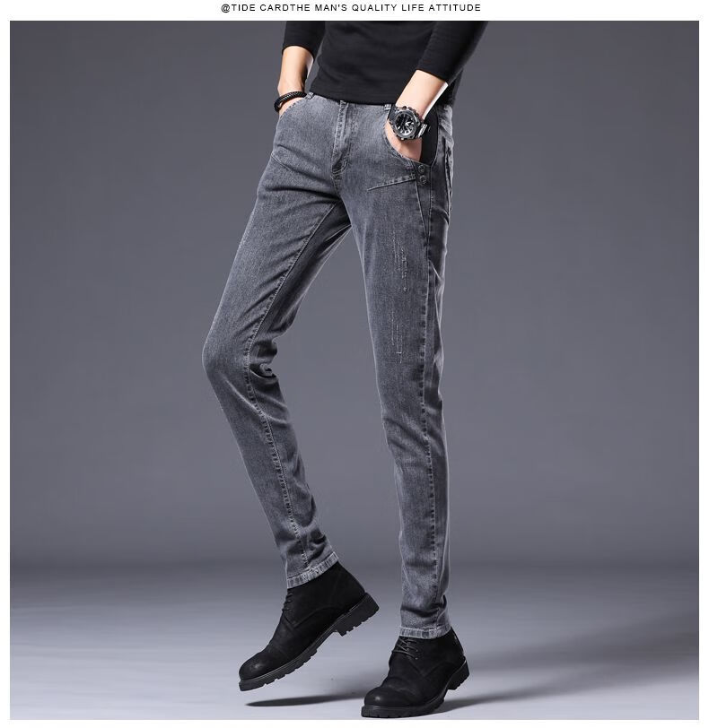 Woodpecker Jeans Men's Autumn and Winter New Slim Fit Stretch Small Leg Pants Men's Velvet Warm Casual Straight Long Pants Men 8913 Regular Style 32 (Recommended 125-150 Jin Jin equals 0.5 kg)