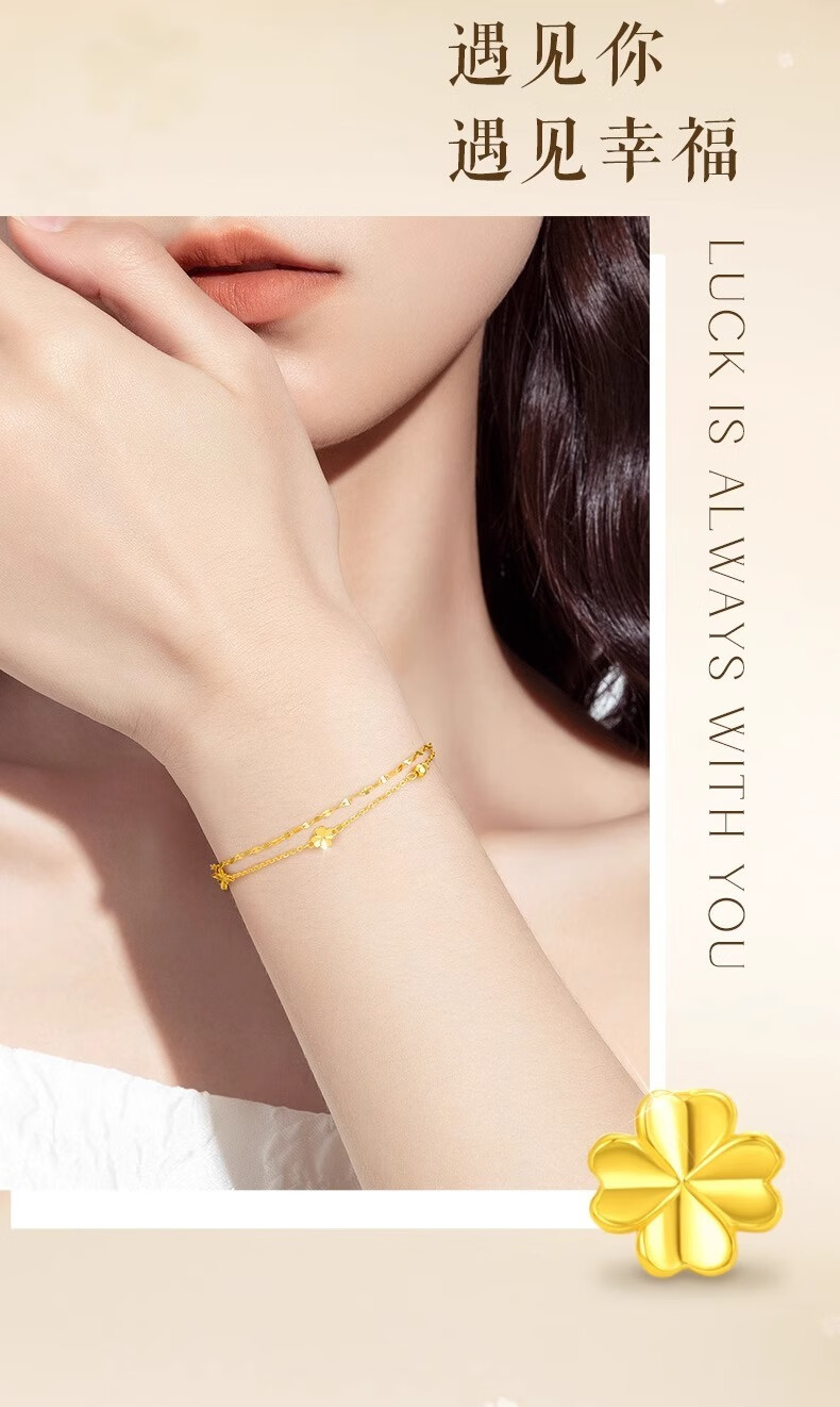 BXE Lucky Four-leaf Clover Gold Bracelet for Women Double-Layer 999 Pure Gold Transfer Beads Hand Accessories Light Luxury Holiday Gift Double-Layer Four-Leaf Clover Bracelet 0.07g