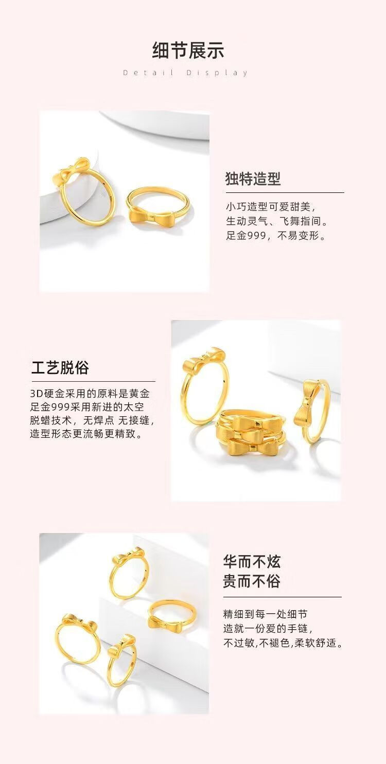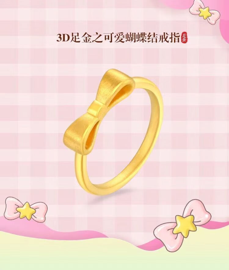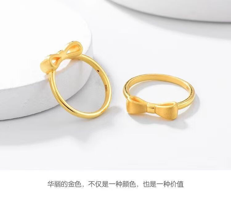 BXE pure gold 999 pure silver bow ring gold-coated silver plain ring princess ring live mouth adjustment wife seven gold-coated silver brushed bow ring 1.6g collect and receive certificate + receipt + gift box
