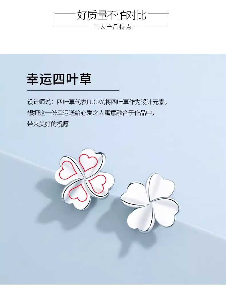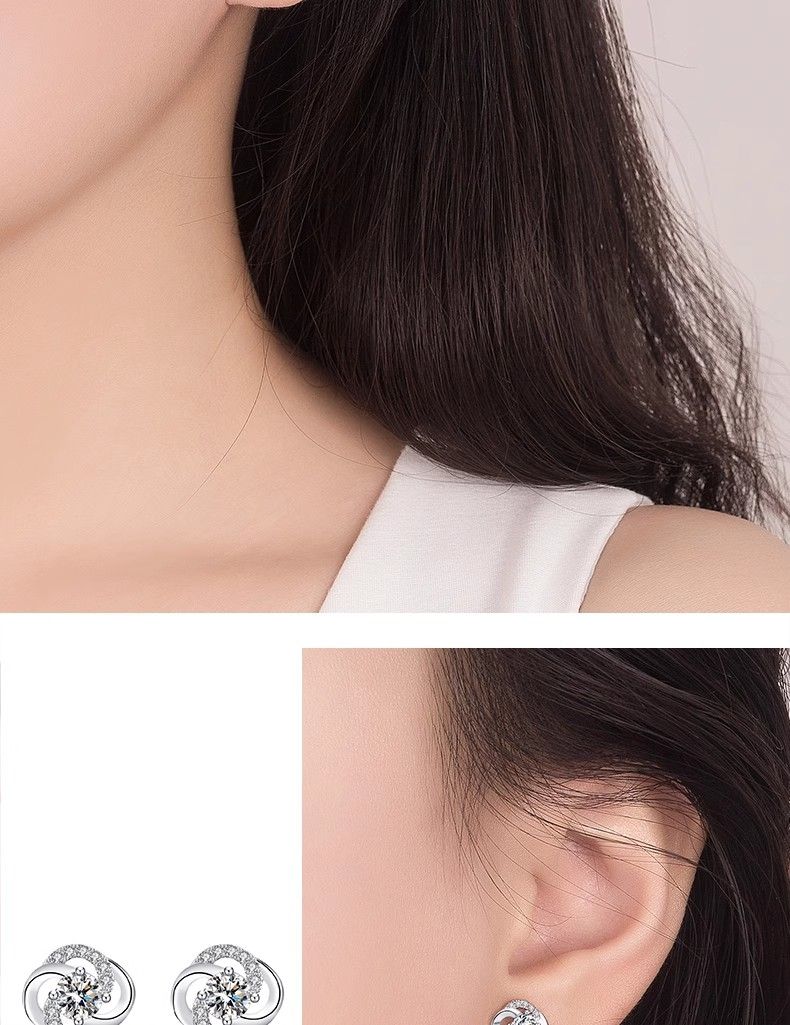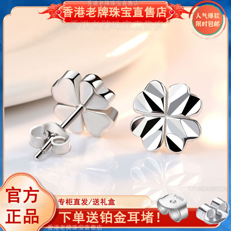 Genuine pt950 platinum earrings for women, classic four-leaf clover, moissanite, platinum earrings, Valentine’s Day gift for girlfriend, a pair of diamond-shaped four-leaf clover earrings + exquisite gift box
