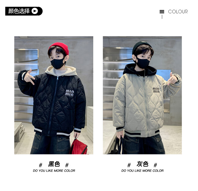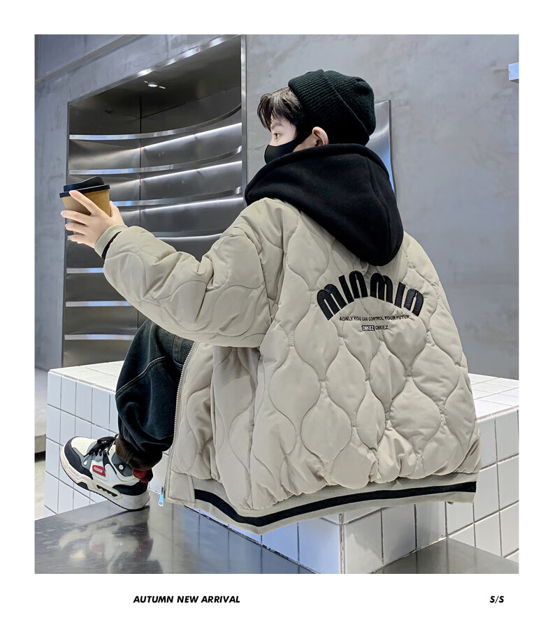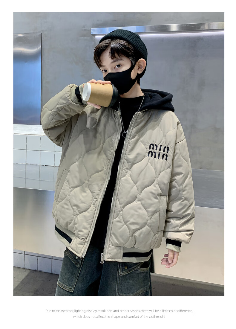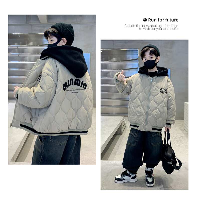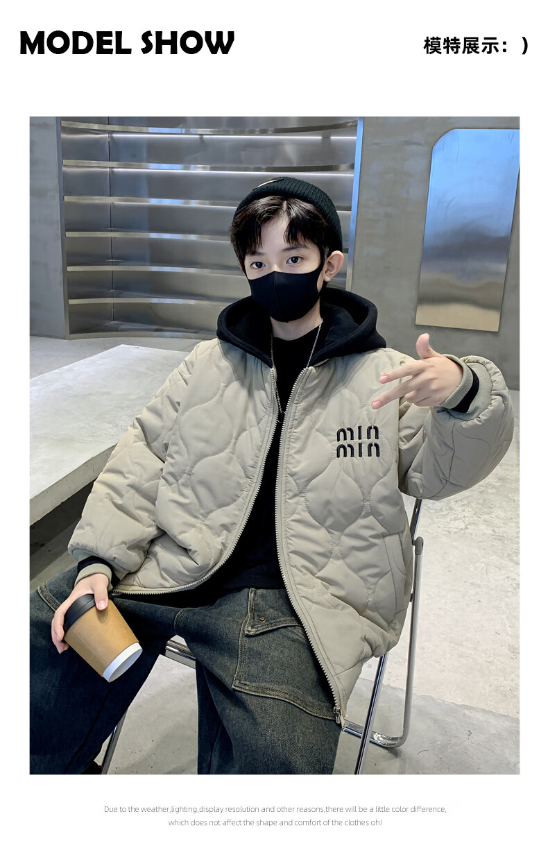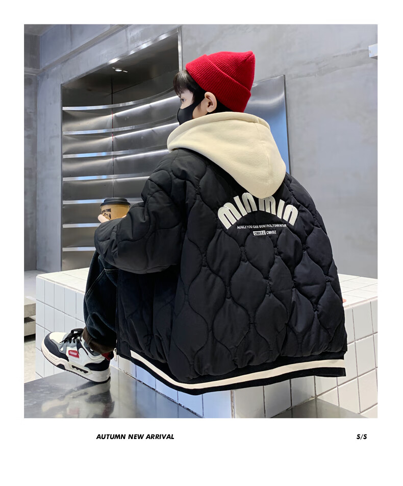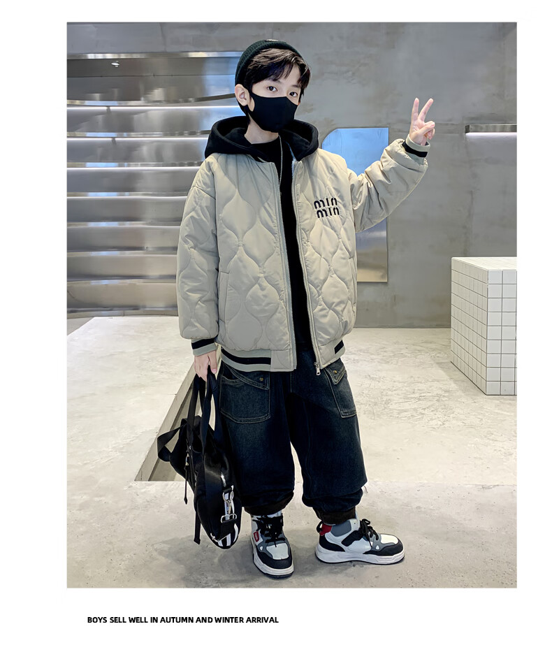 Monkey Brother Boys' Velvet Jacket 2024 New Medium and Large Boys' Thickened Baseball Jacket Hooded Children's Warm Internet Celebrity Jacket Black 150 cm