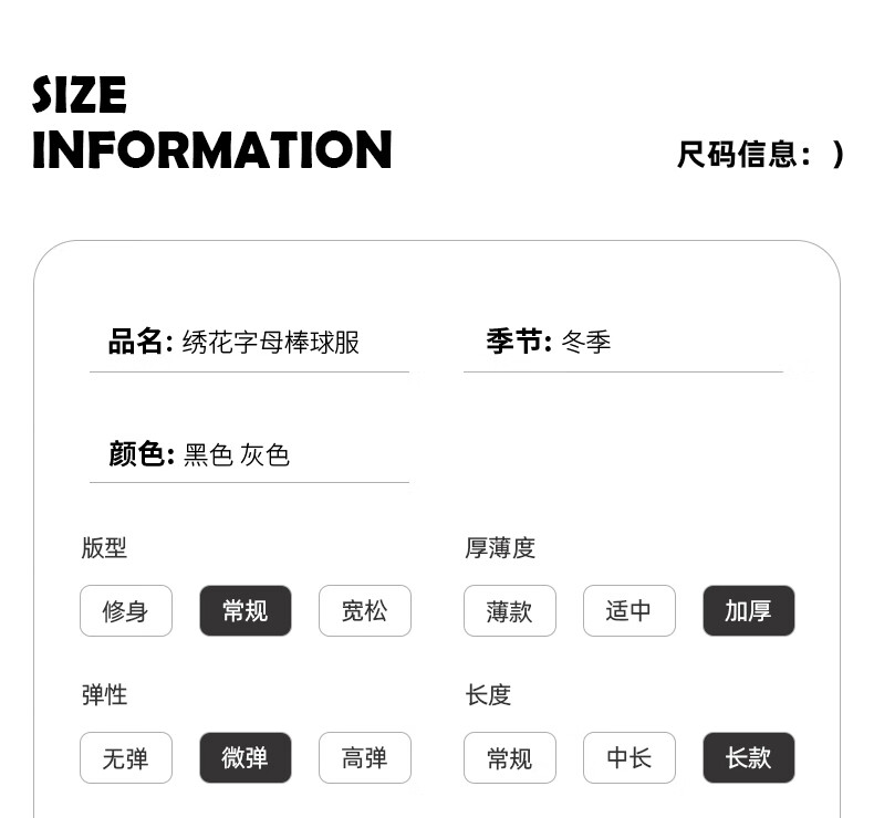 China (cm) 160-165/84-86 165-170 / 88-90 167-172 / 92-96 168-173 / 98-102 170-176 / 106-110