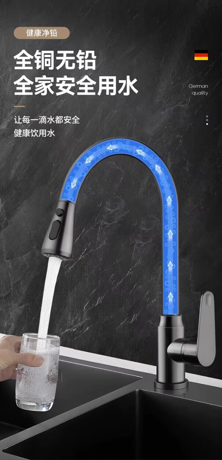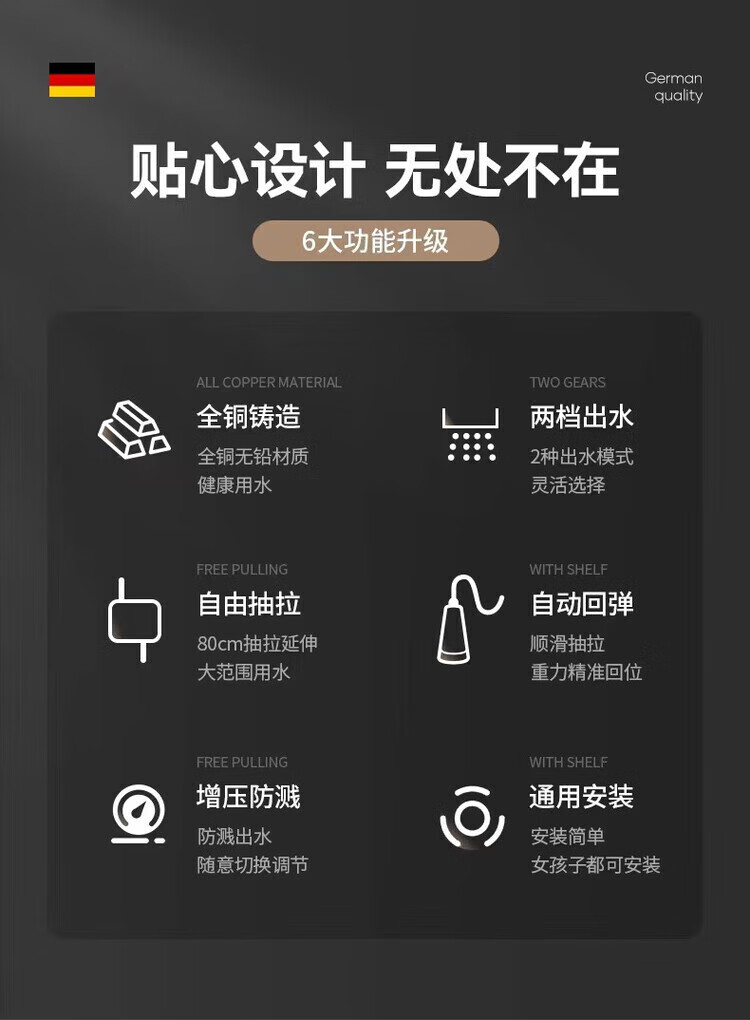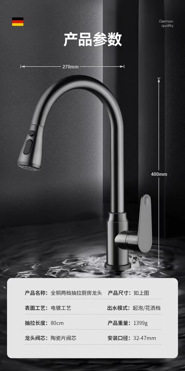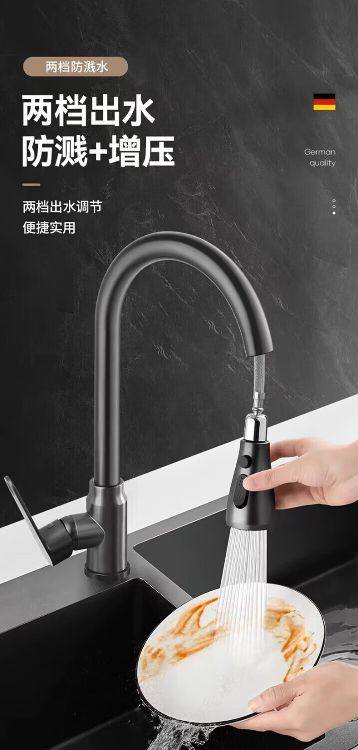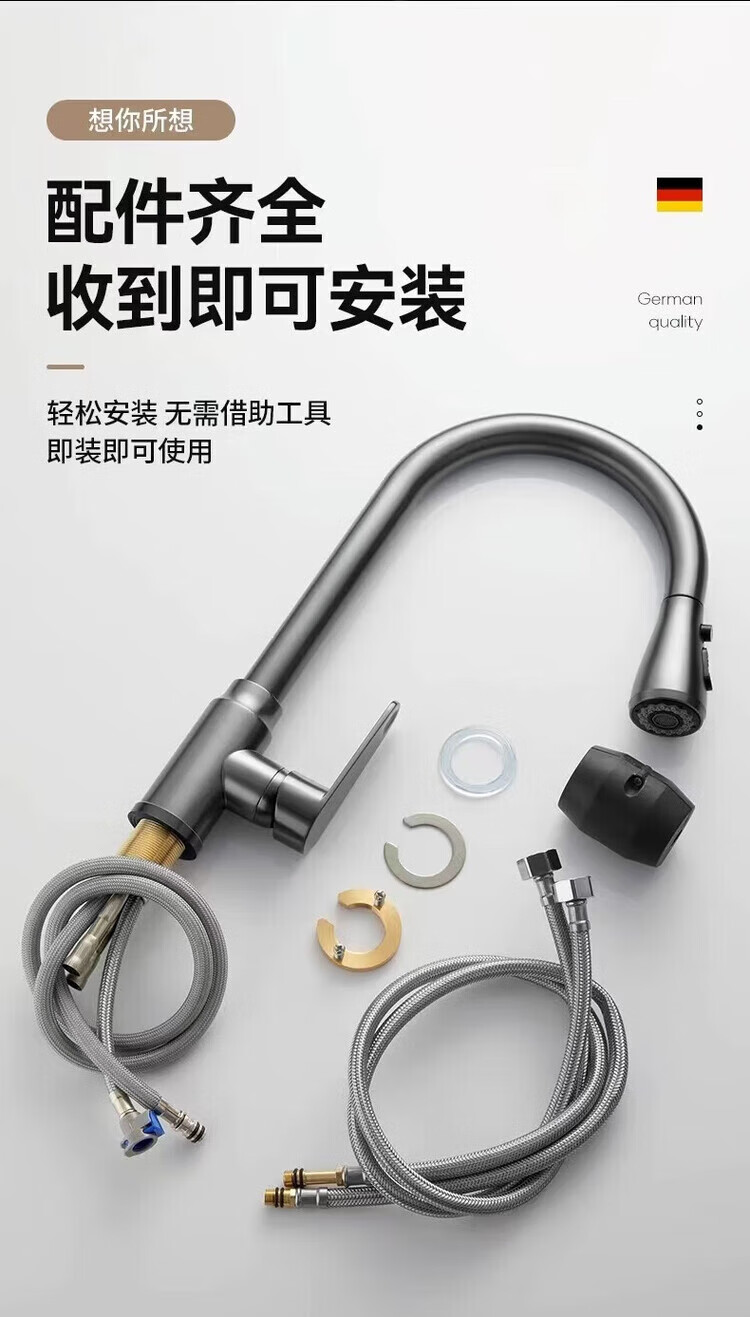 JOMOO all-copper anti-splash kitchen pull-out three-speed faucet hot and cold vegetable basin sink wash basin multi-functional household electroplated all-copper (universal rotating mouth) extra large water outlet