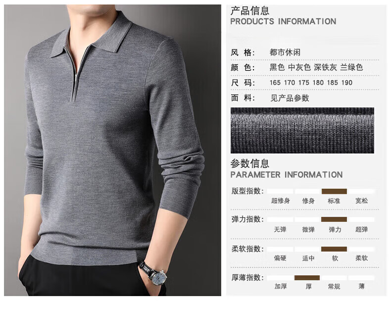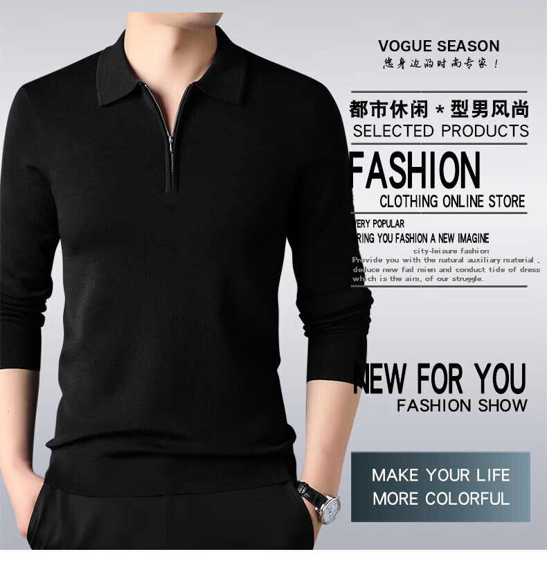 DVW luxury high-end brand cardigan men's worsted thick sweater autumn and winter solid color half-zip lapel casual sweater black gift box M 170 reference weight 120-135Jin Jin equals 0.5 kg