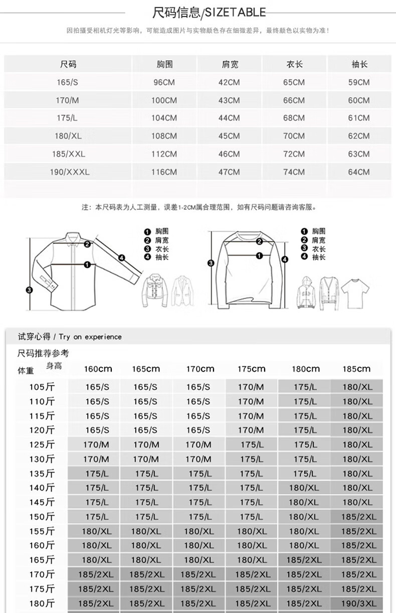 China (cm) 165 / 88-90 170 / 96-98 175 / 108-110 180 / 118-122 185 / 126-130
