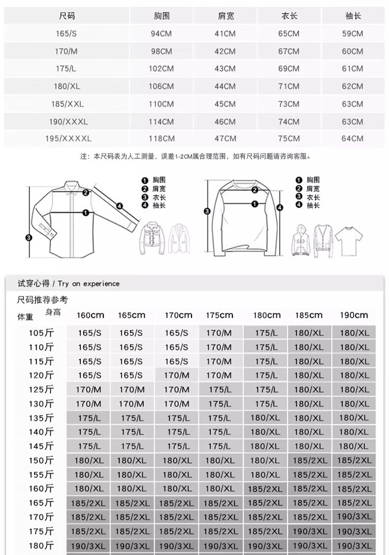 China (cm) 165 / 88-90 170 / 96-98 175 / 108-110 180 / 118-122 185 / 126-130