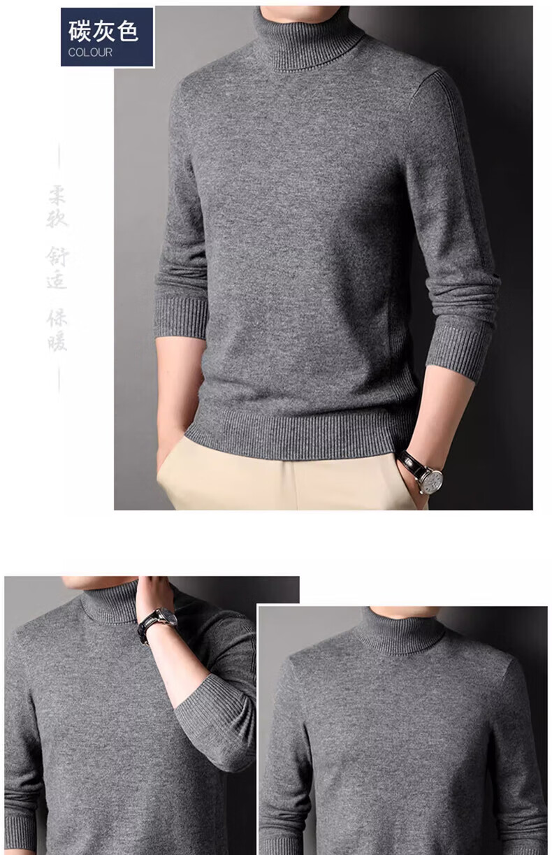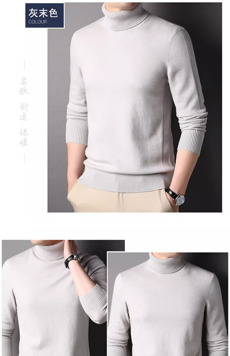 DVW luxury high-end brand wool sweater men's worsted pure wool autumn and winter thickened solid color turnable turtleneck sweater gray powder 100% pure wool L 175 reference weight 135-150Jin Jin equals 0.5 kg