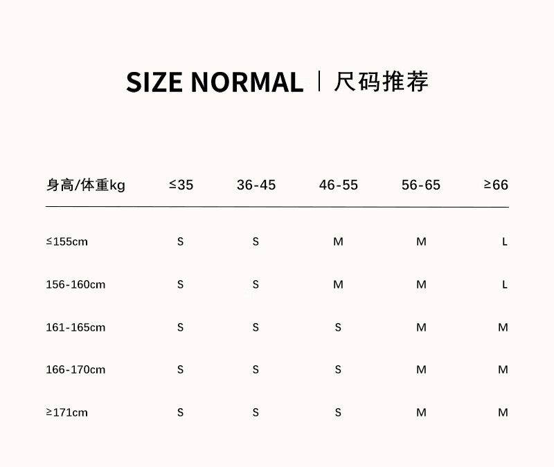 China (cm) 160-165/84-86 165-170 / 88-90 167-172 / 92-96 168-173 / 98-102 170-176 / 106-110