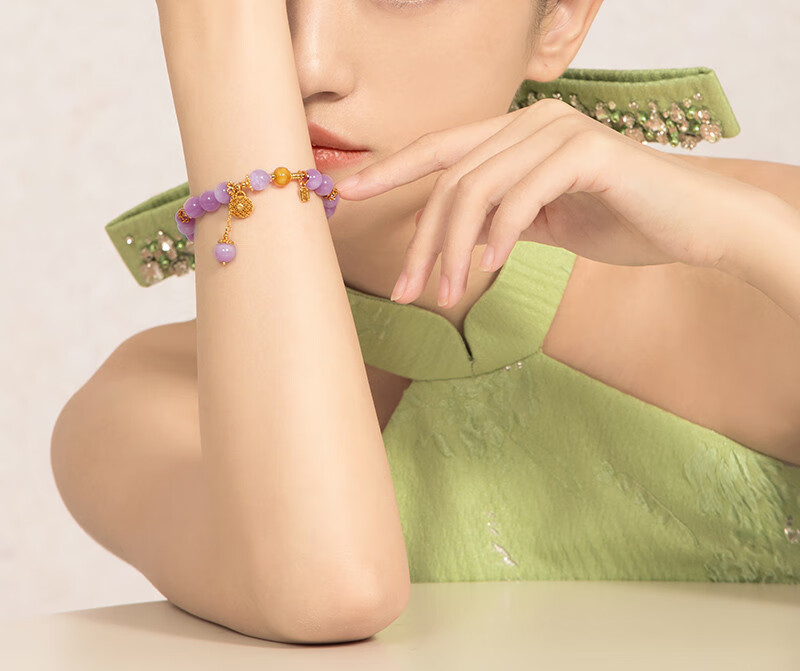 Miling LEFTGO Natural Brazilian Purple Kunzite Bracelet Women's S925 Silver Plated 18K Gold Russian Beeswax 8mm Bracelet S 13.5cm-15cm