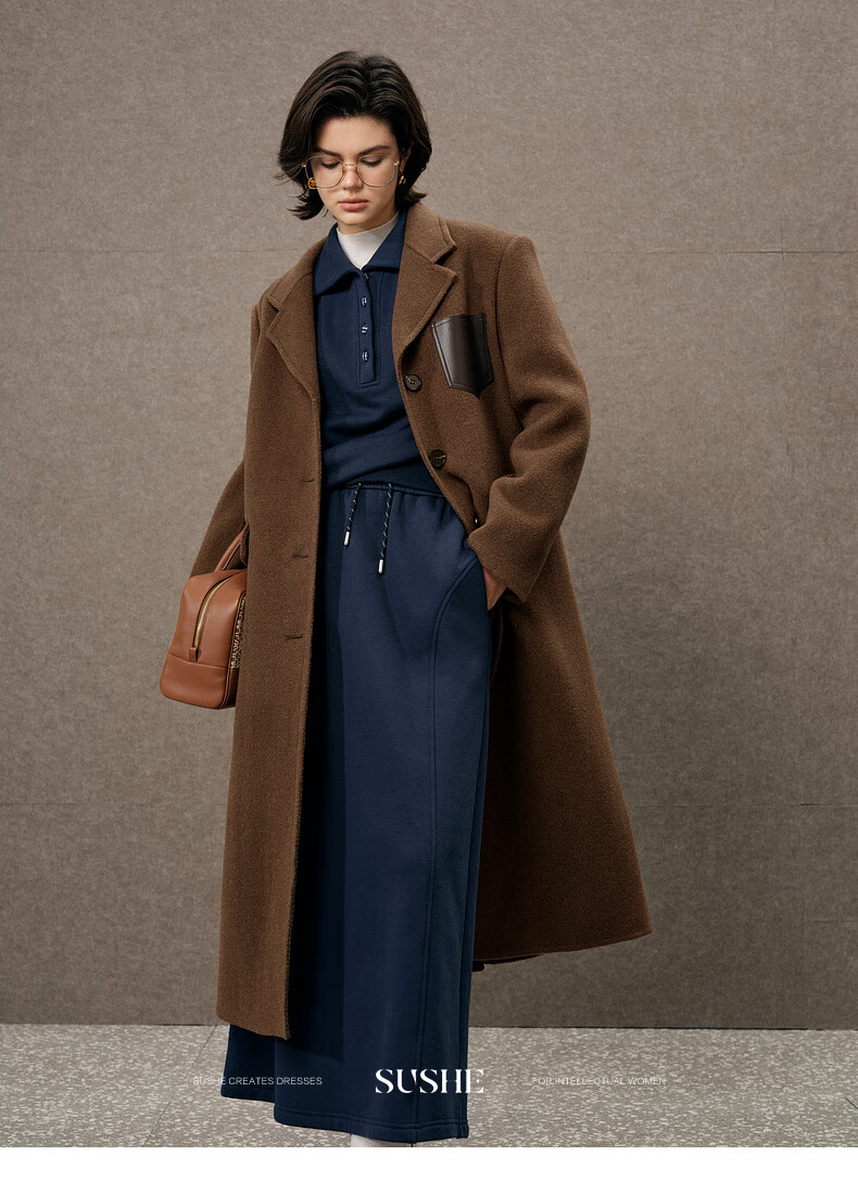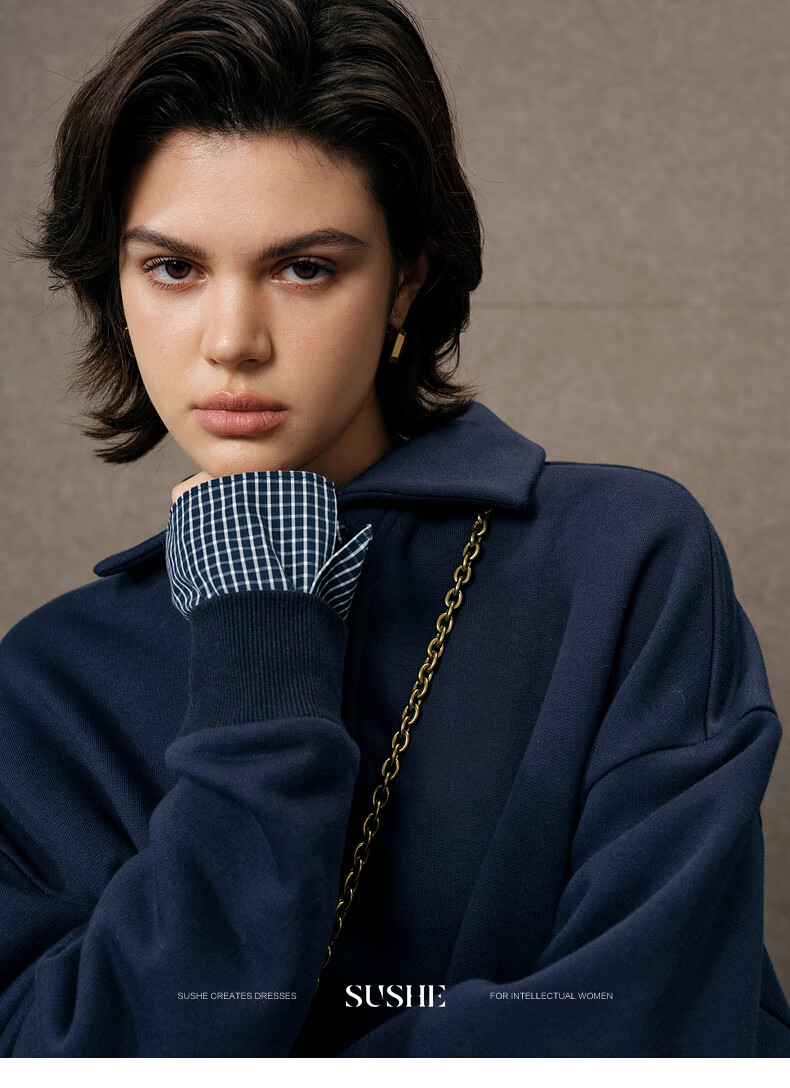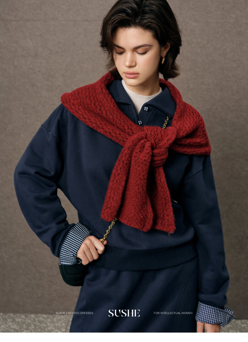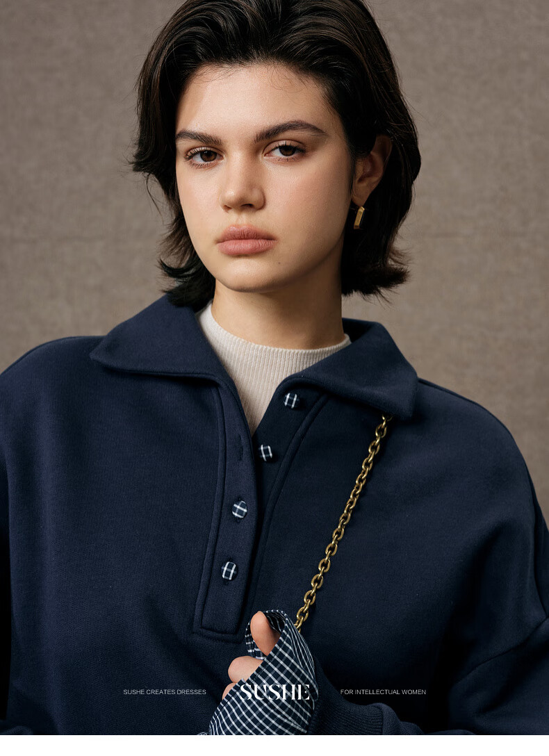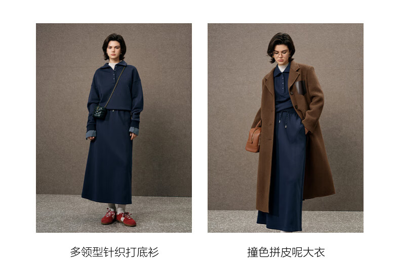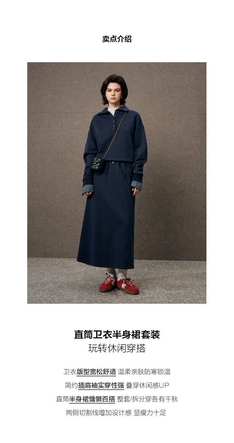 SUSHE Walden Intellectual Style Blue Polo Collar Top Elastic Straight Skirt Set Cyanyu Blue-Skirt S