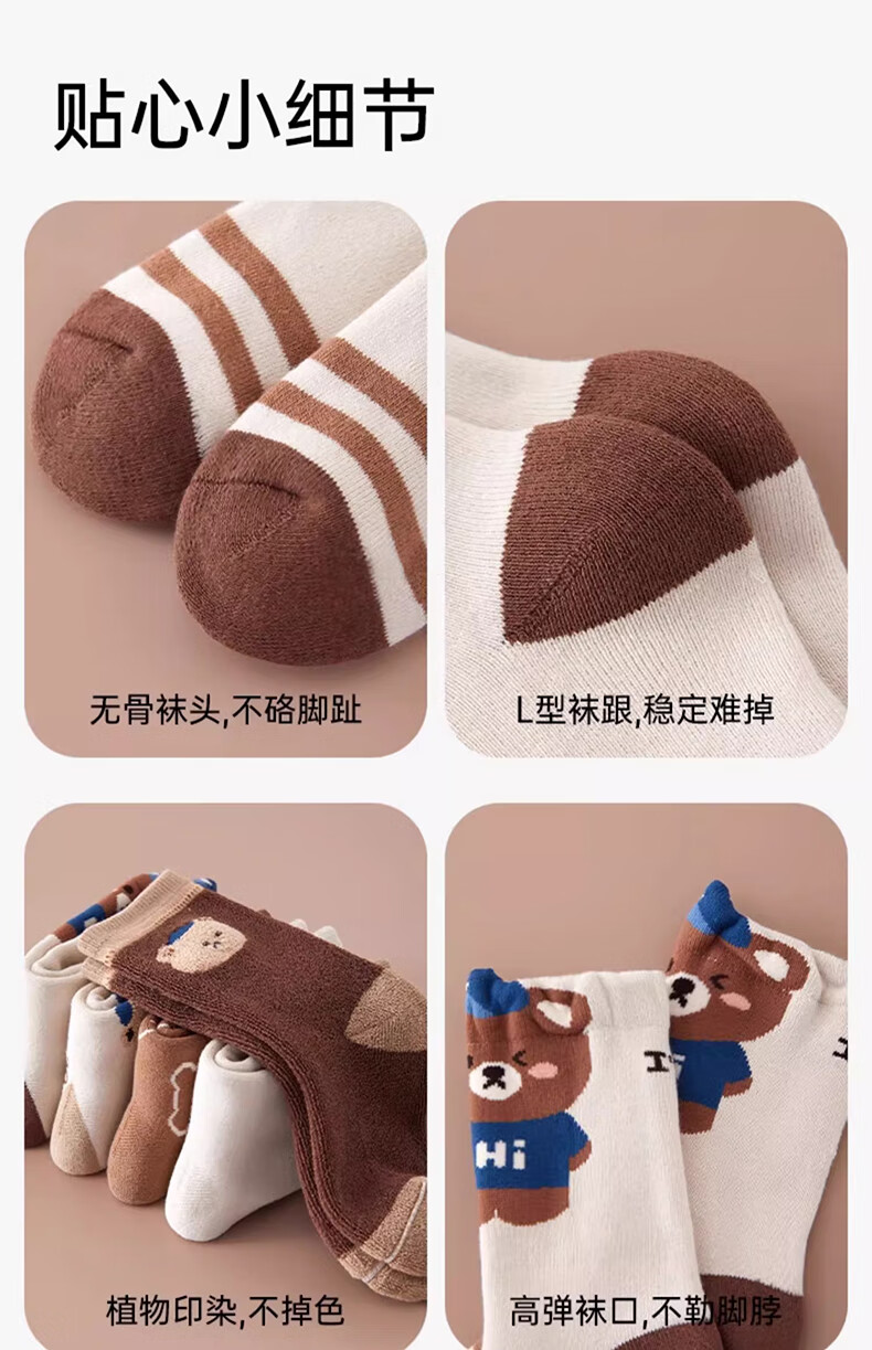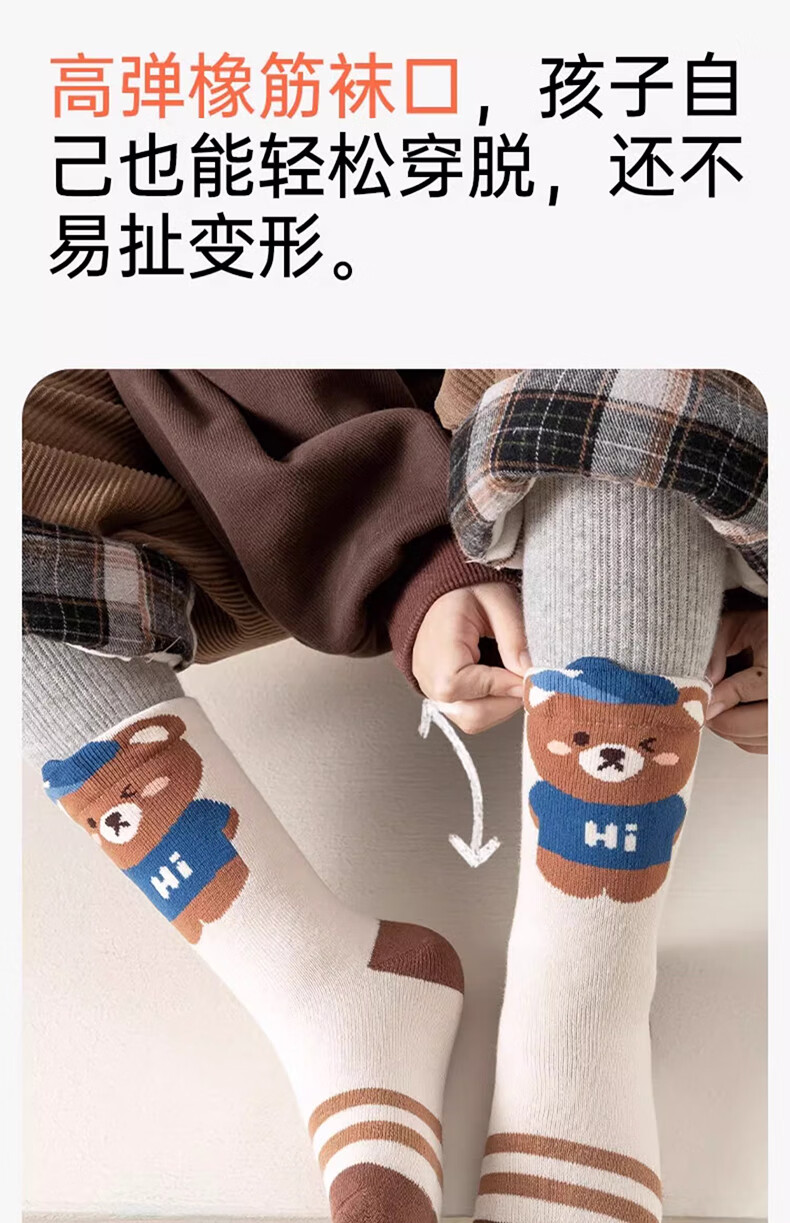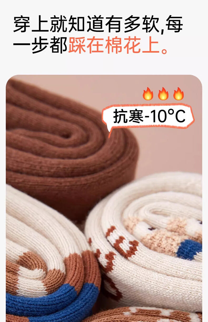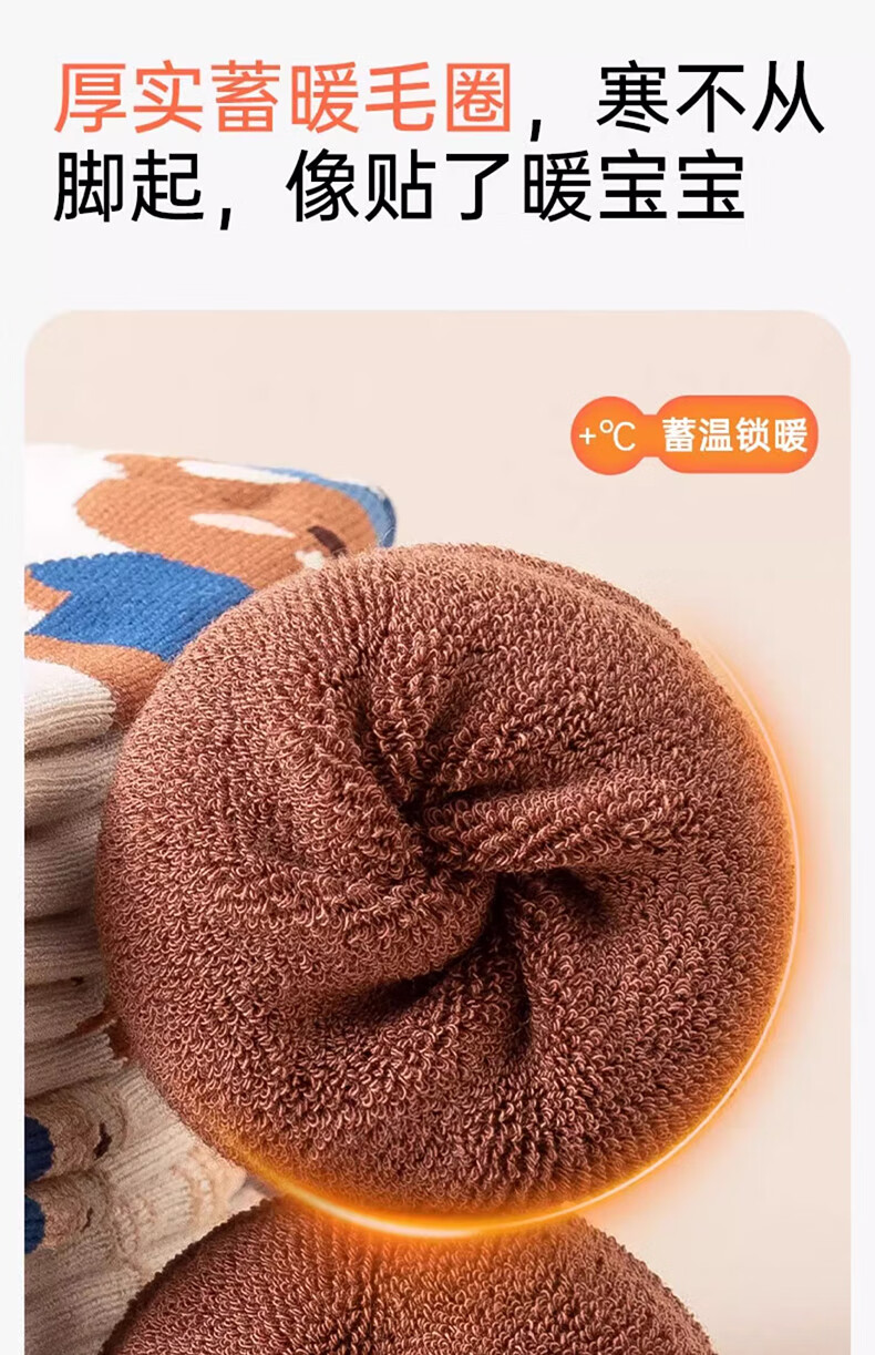 Cotton children's socks winter pure cotton boys plus velvet loop socks mid-calf socks baby autumn and winter thickened warm cotton socks H015-cute bear velvet thickened 5 pairs 1-3 years old -foot length 11-13CM shoe size 16-19