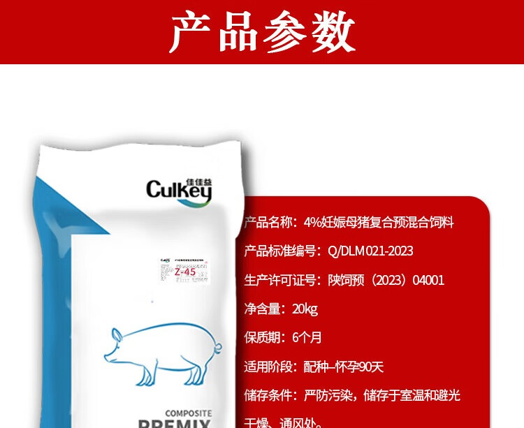 Jiajiayi 4% pregnant sow feed, special feed for sows, high vitamin premix for sows with multiple births, 4% pregnant sow premix, 1 bag, 20 kg