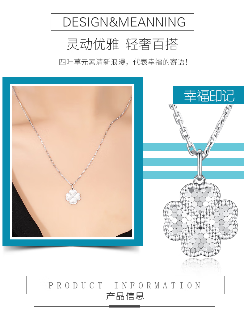Yuanshengfu new PT950 fashionable honeycomb four-leaf clover platinum pendant genuine romantic platinum necklace gift 2.71g