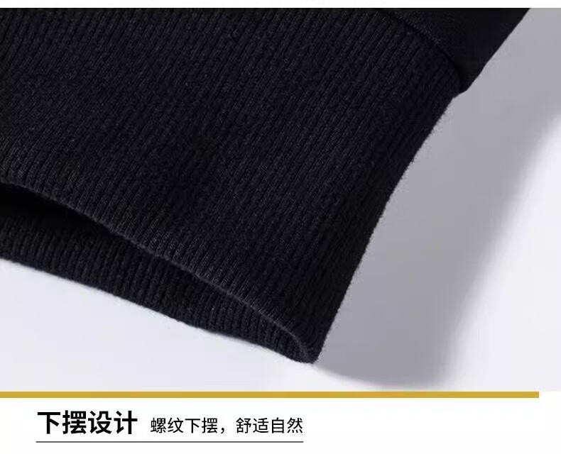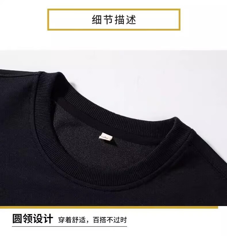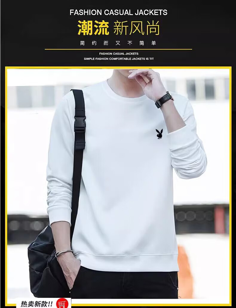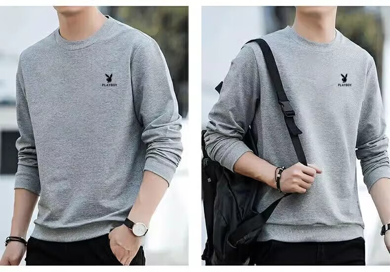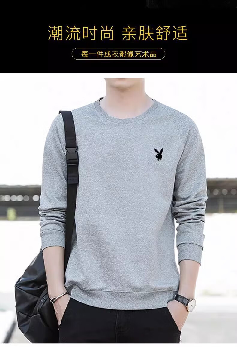Playboy (PLAYBOY) men's sweatshirt long-sleeved tops plus velvet bottoming shirt men's spring and autumn new simple round neck pure cotton loose large size sweatshirt black regular style XL (recommended 115-125Jin Jin equals 0.5 kg)