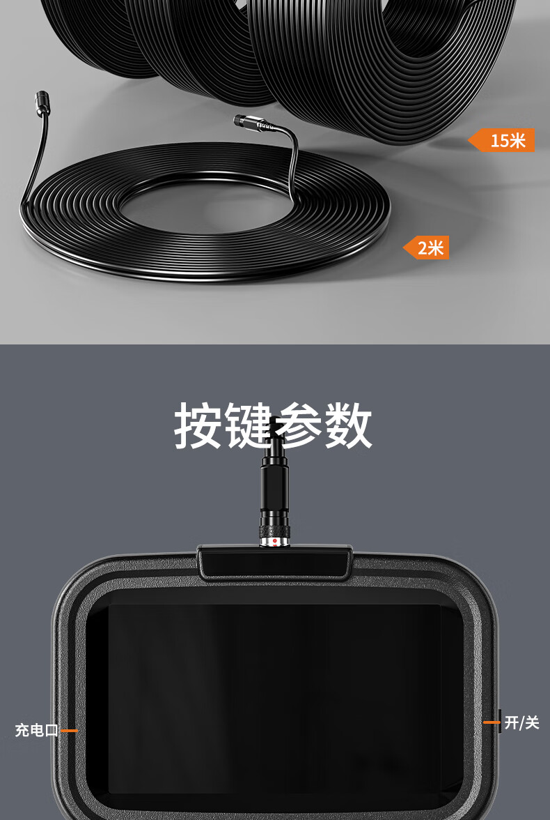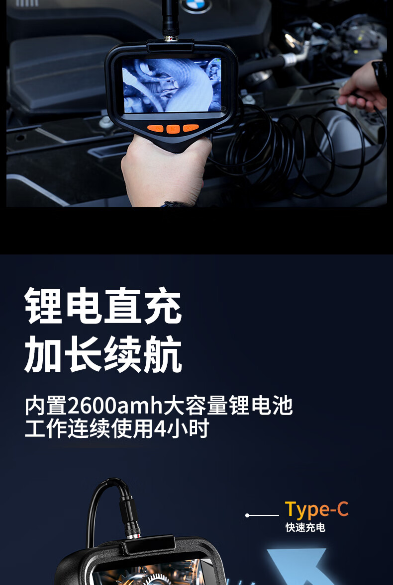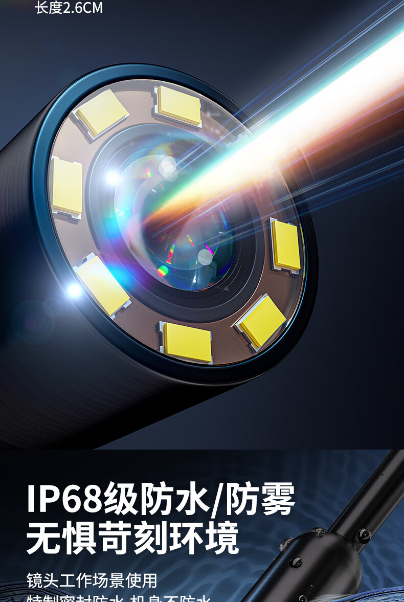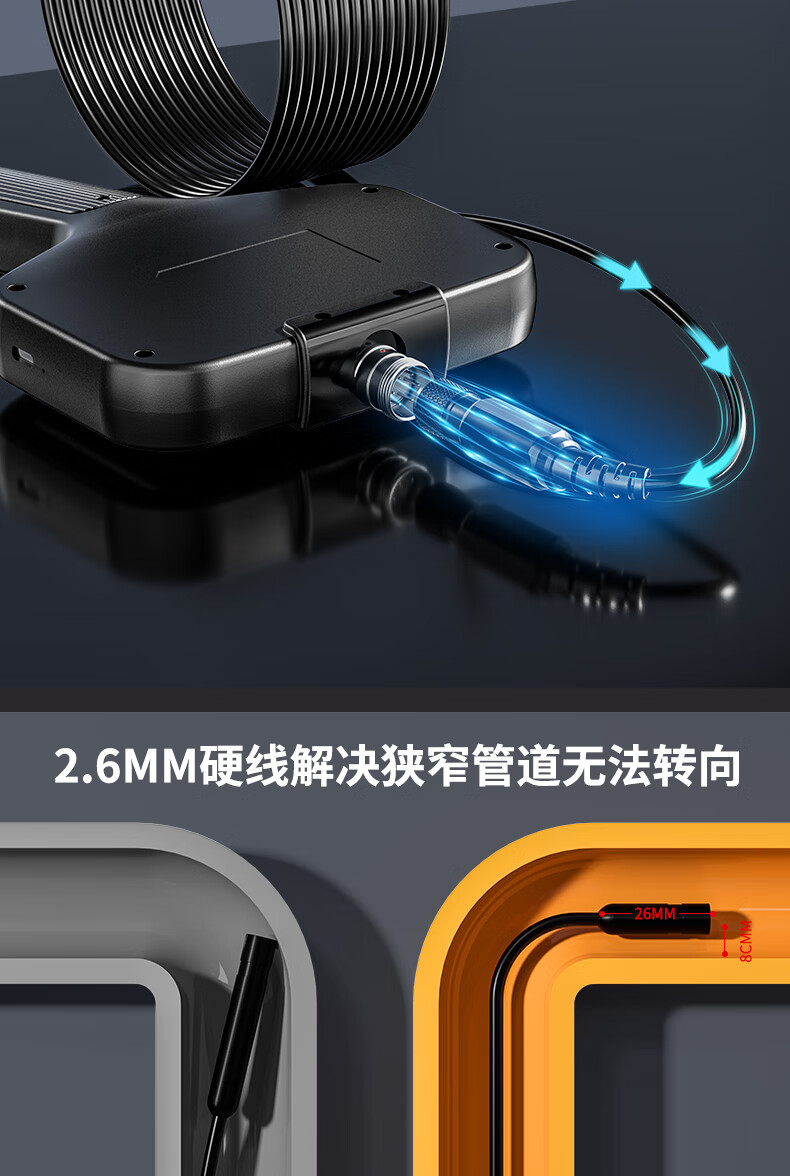 Zhuo Chuangfu Industrial Endoscope Sewer Pipe Detector Car Repair Detector Industrial Grade HD Camera 8MM Dual Lens 50 Meter Hard Wire + 4.3-inch Screen