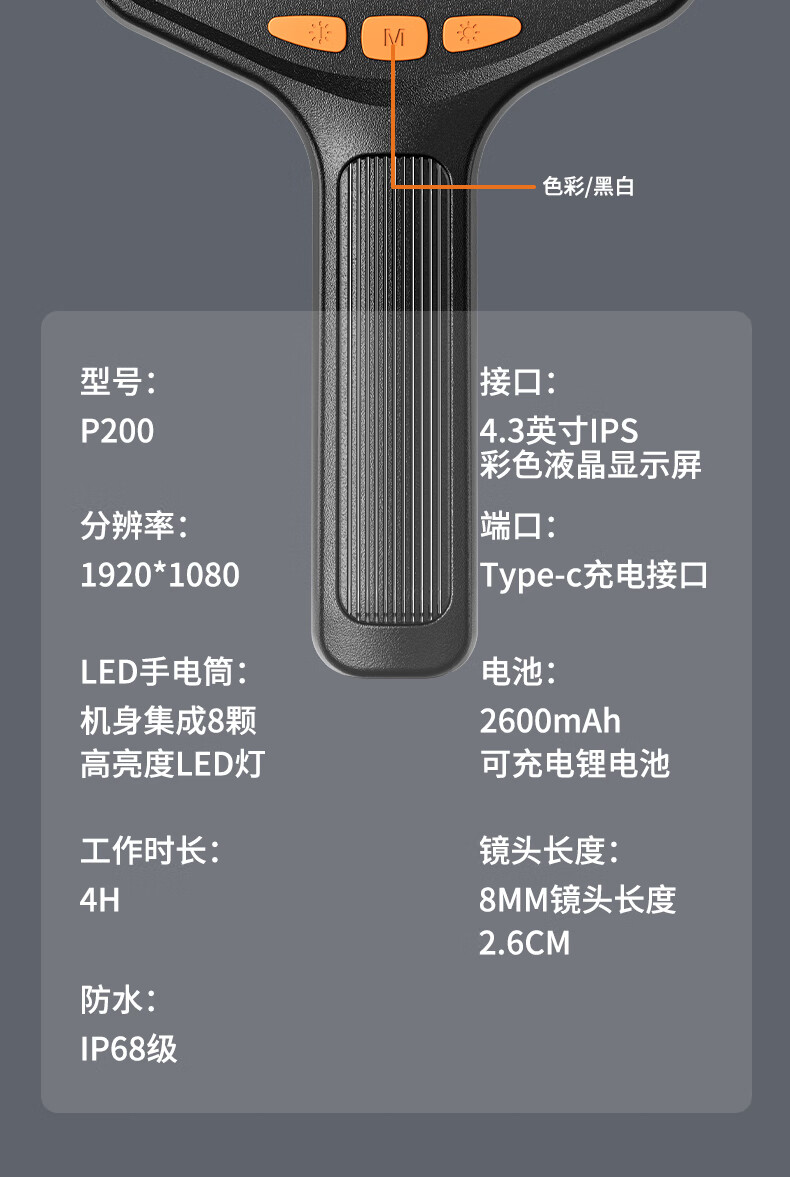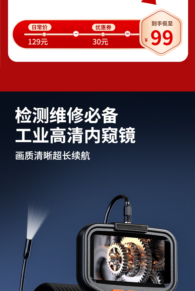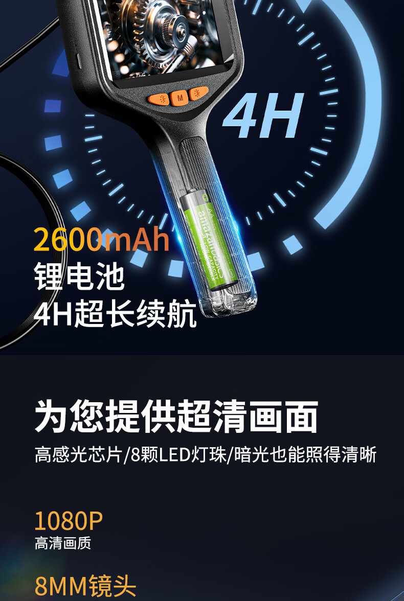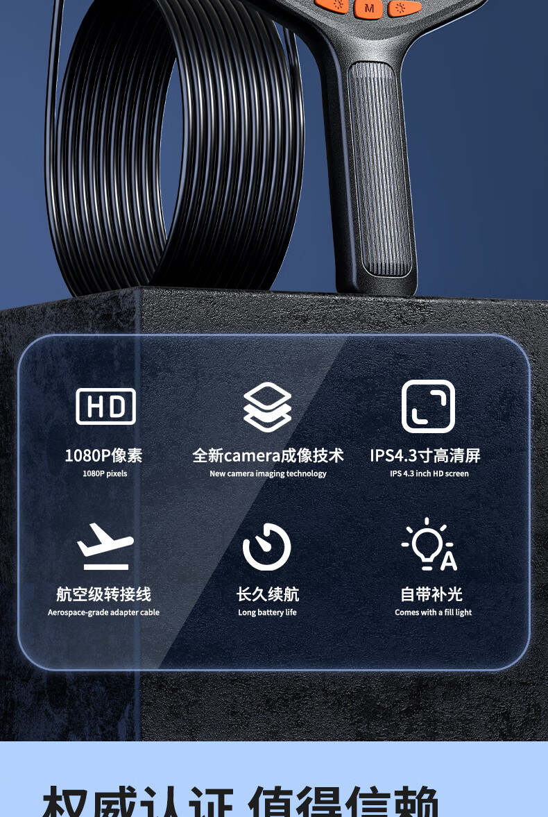 Zhuo Chuangfu Industrial Endoscope Sewer Pipe Detector Car Repair Detector Industrial Grade HD Camera 8MM Dual Lens 50 Meter Hard Wire + 4.3-inch Screen