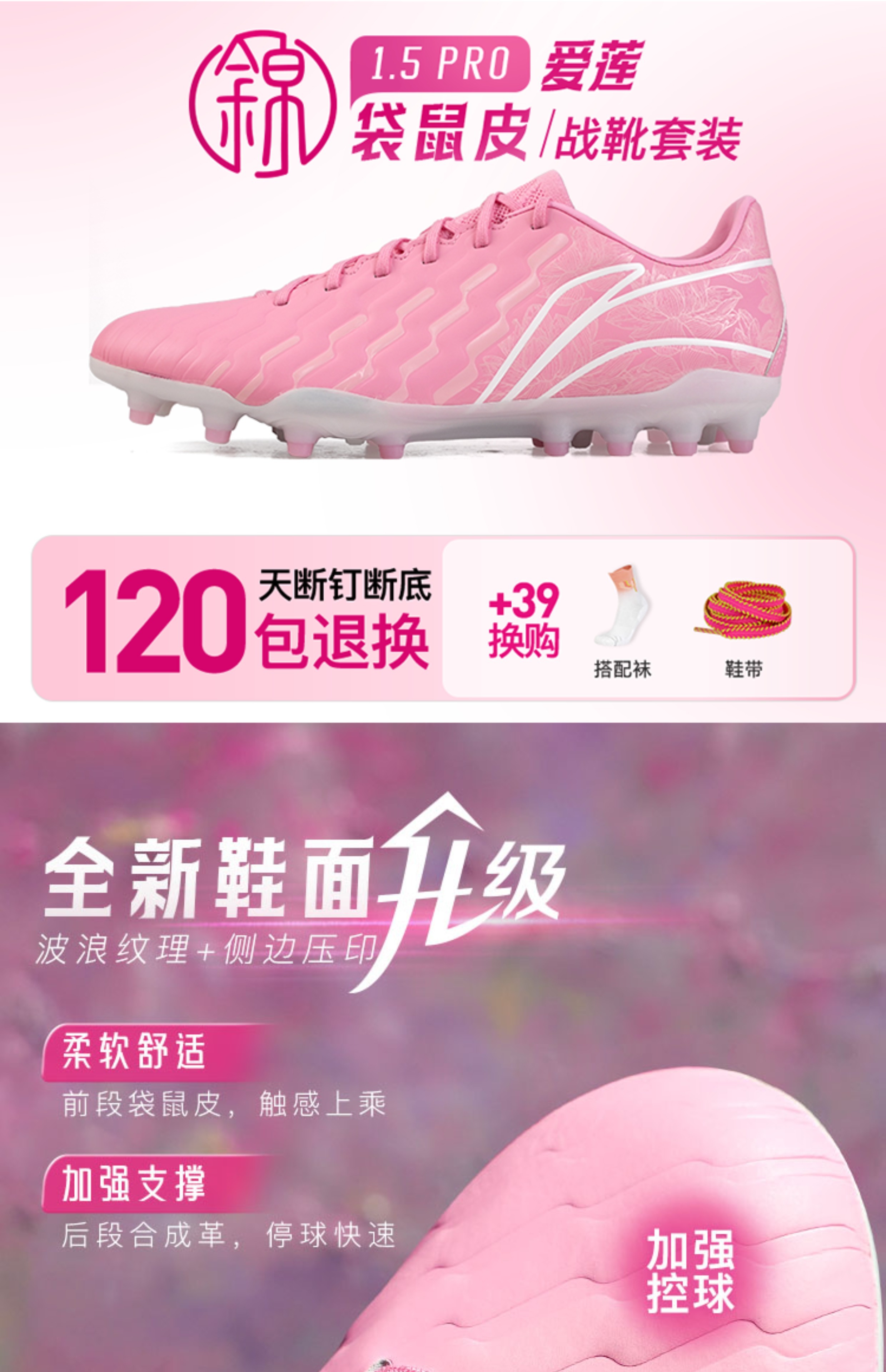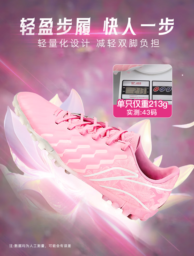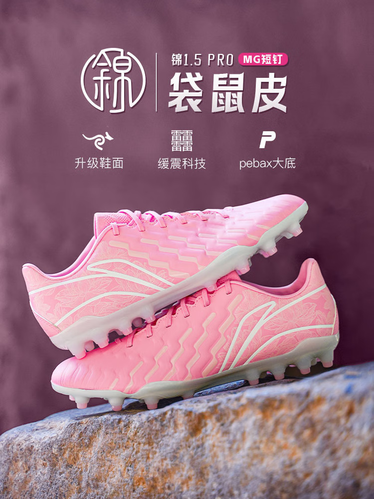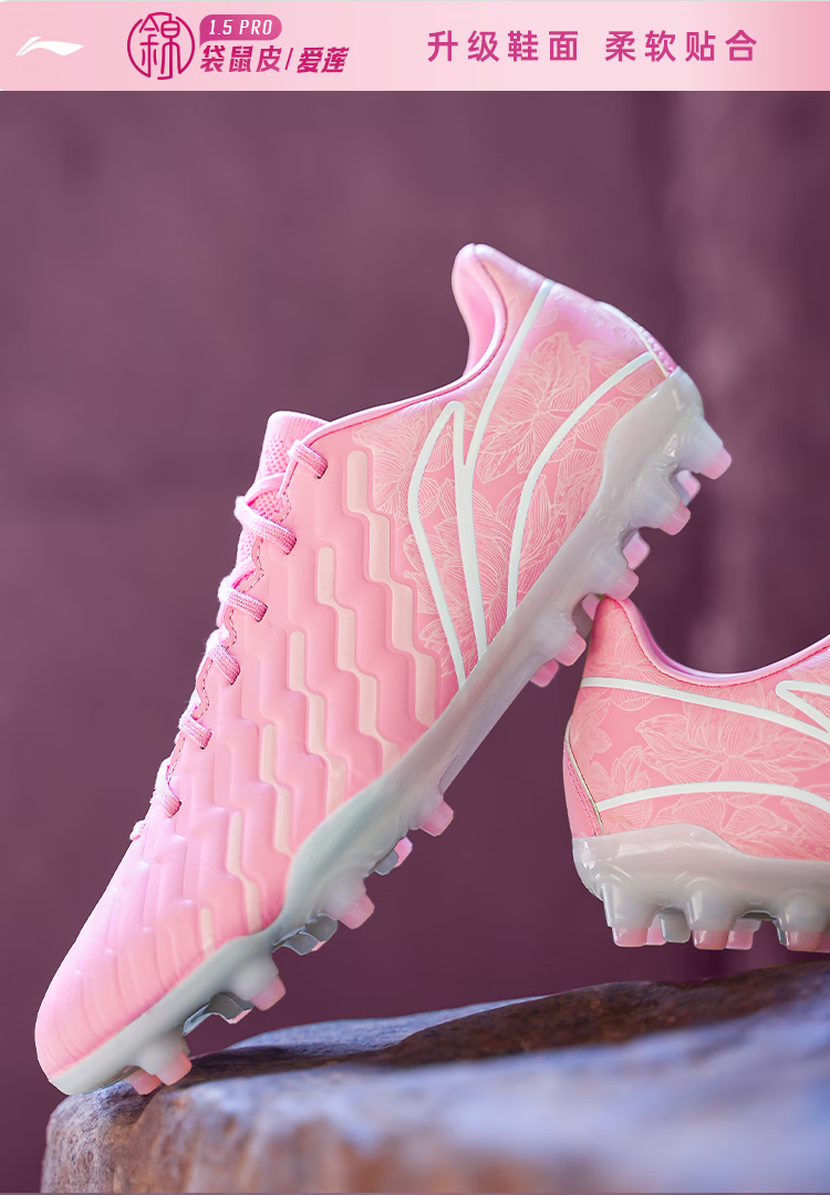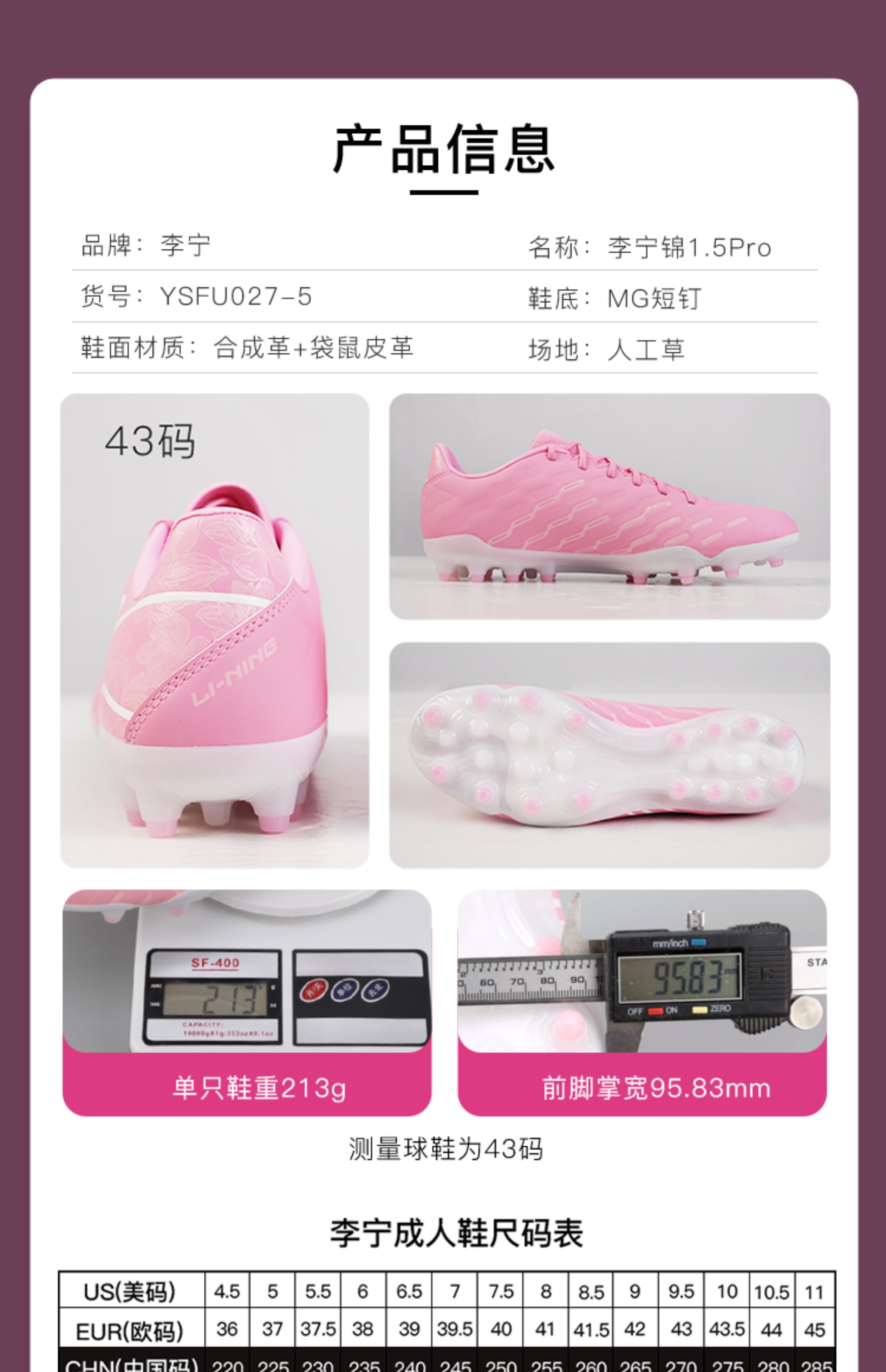 Li Ning (LI-NING) Li Ning Jin series 1.5 sub-top TF broken nails/MG short nail kangaroo leather adult football training shoes for men, pink color sub-top kangaroo leather YSTU0432 TF broken nails 42 265MM
