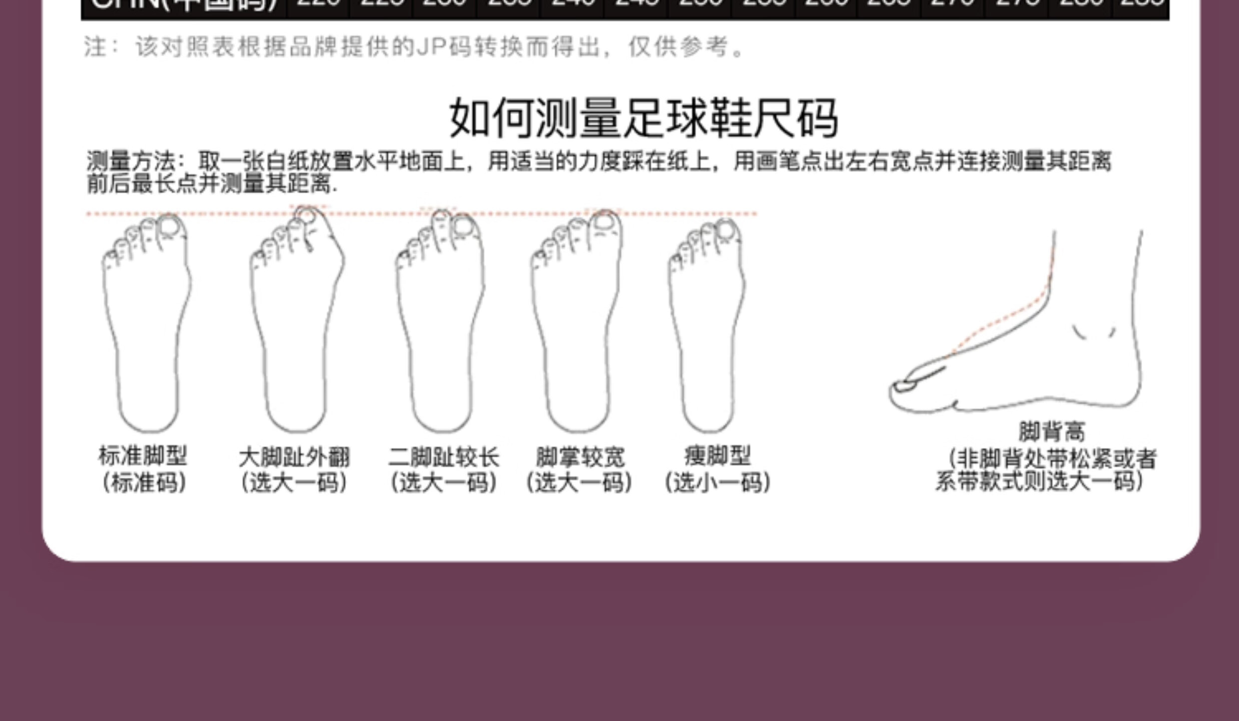 China (cm) 36 - 37 38 - 39 40 - 42 43 - 44 45 - 47