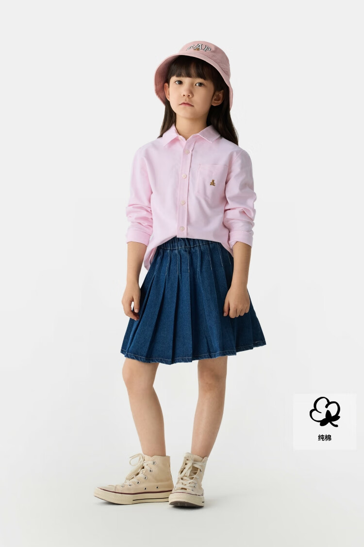 Gapu same style for both big and small children, boys and girls spring pure cotton long-sleeved shirt children's wear 675835 white 120 cm (6-7 years old) Asian size
