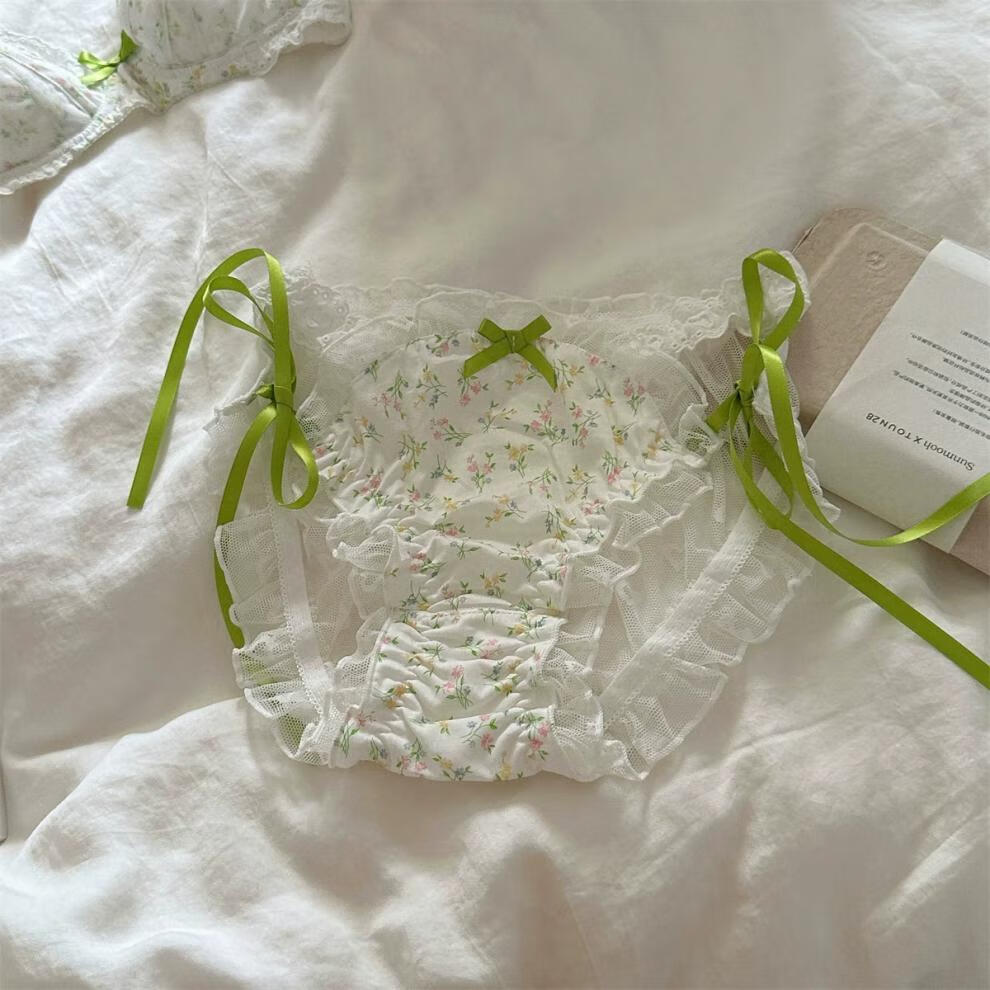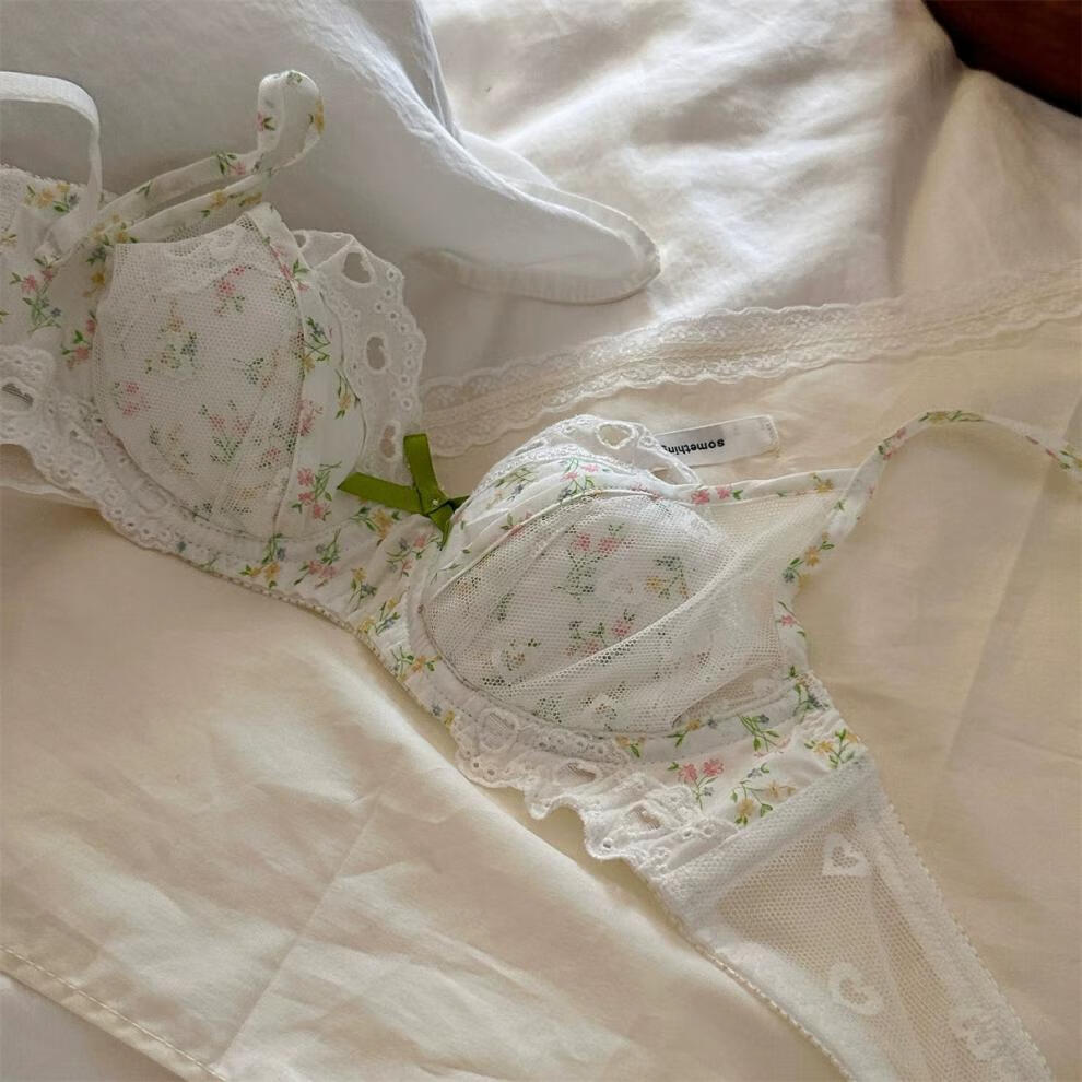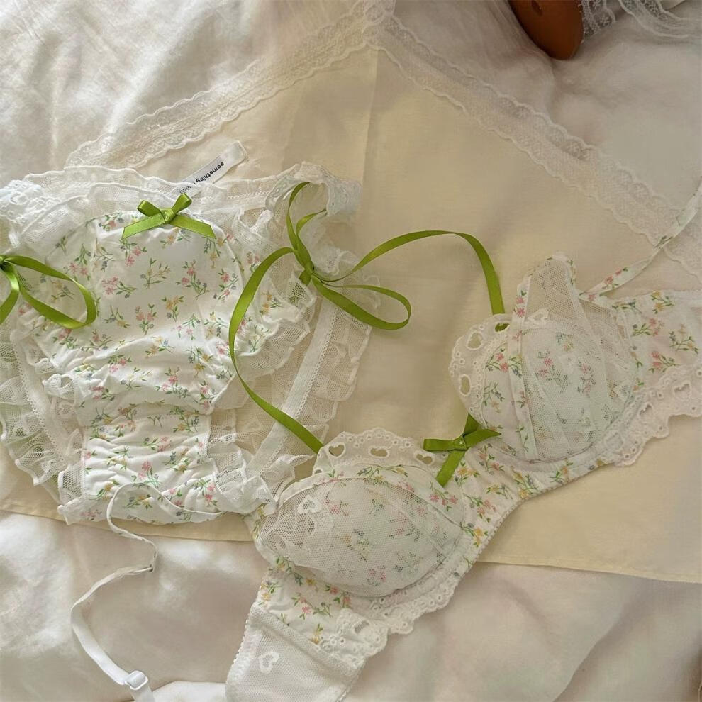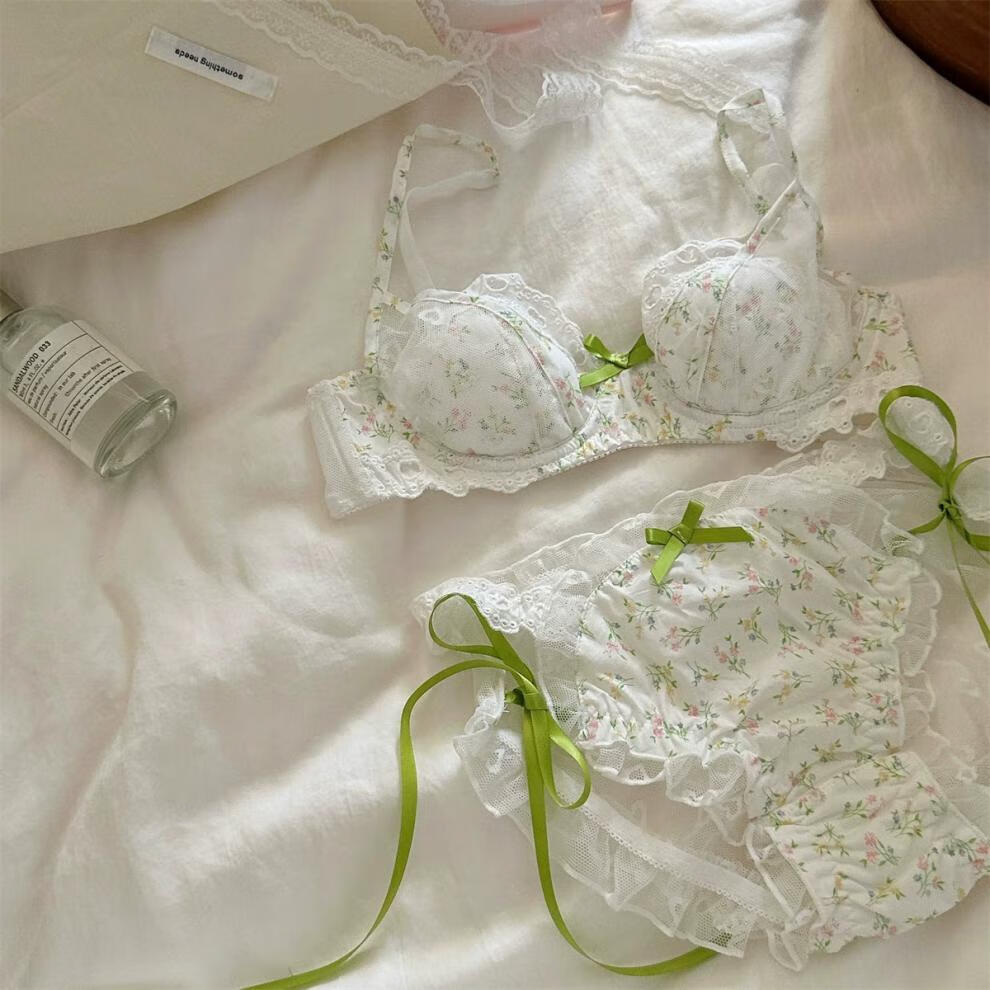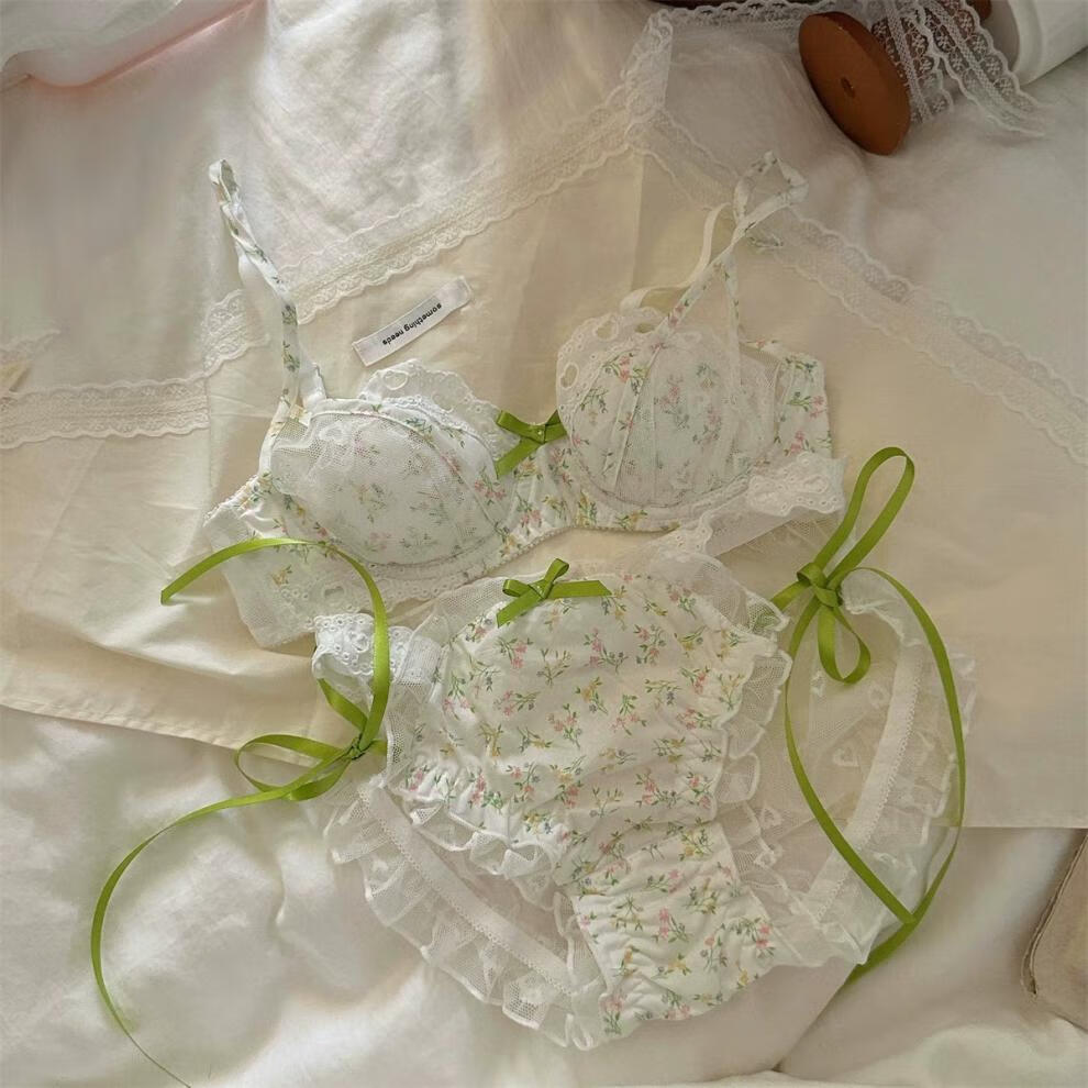 Qiaobeiyi confidential delivery floral French romantic girl lace underwear student pure lust sexy date bra green floral + underwear set confidential delivery S=32/70ABC